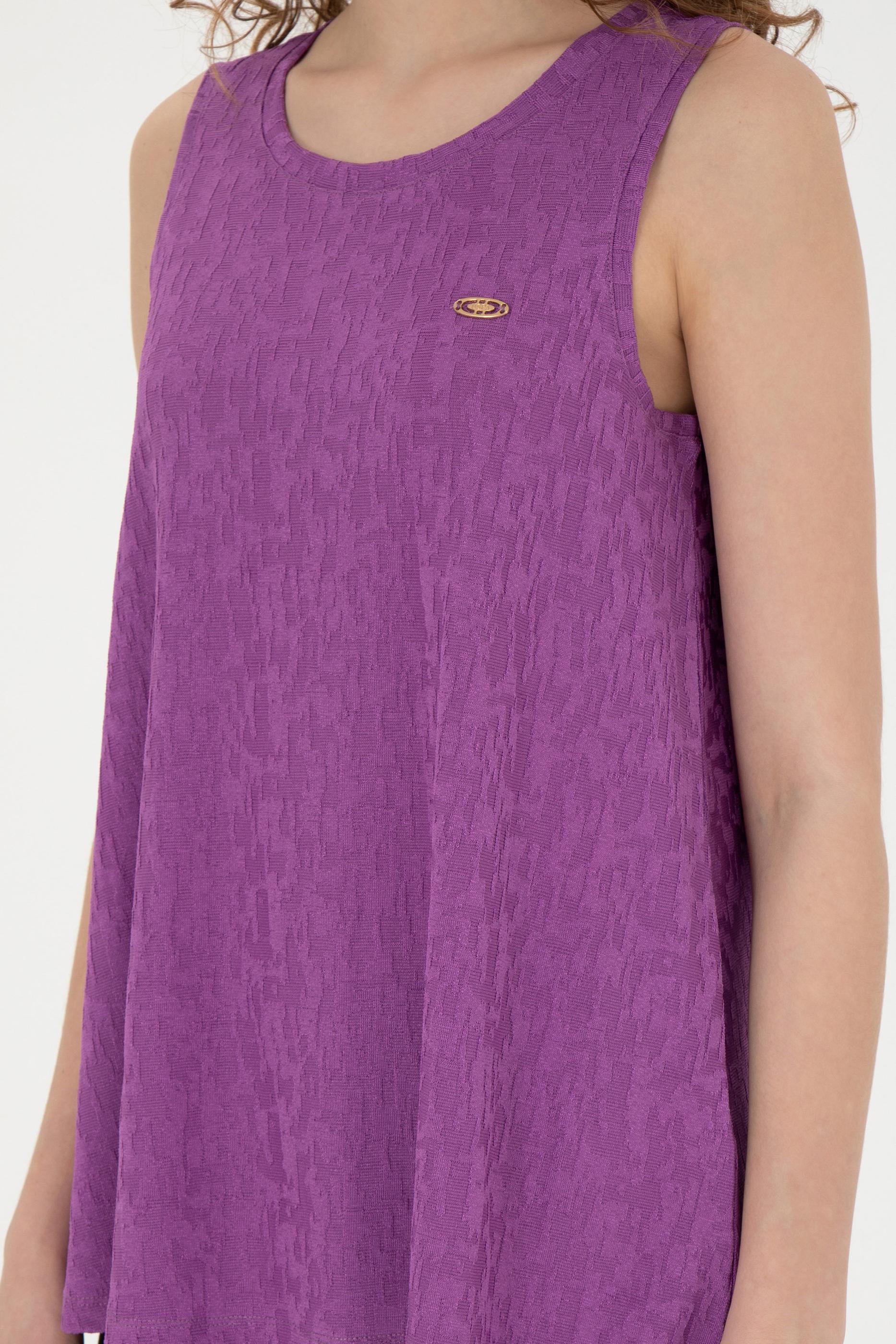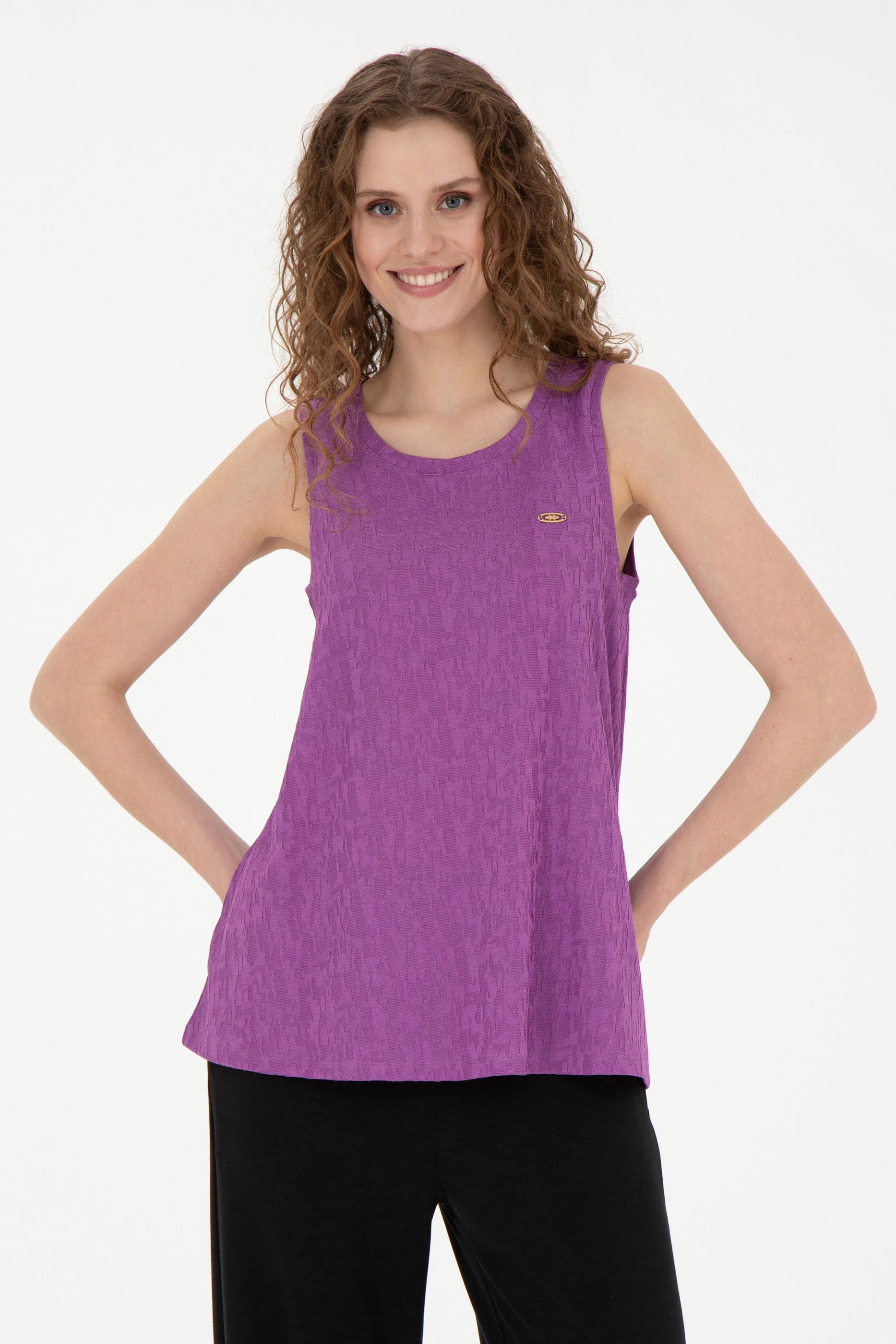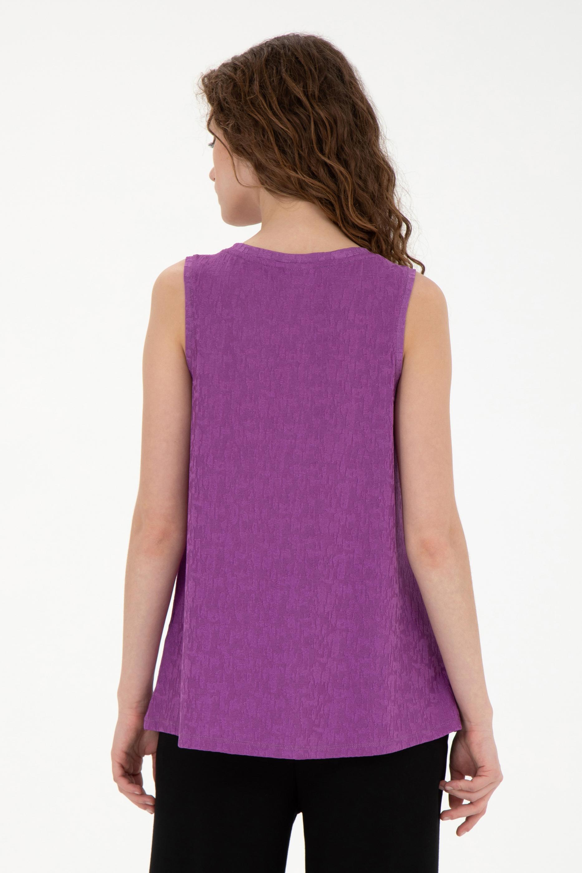 Kadın Mor Bisiklet Yaka Kolsuz Tişört