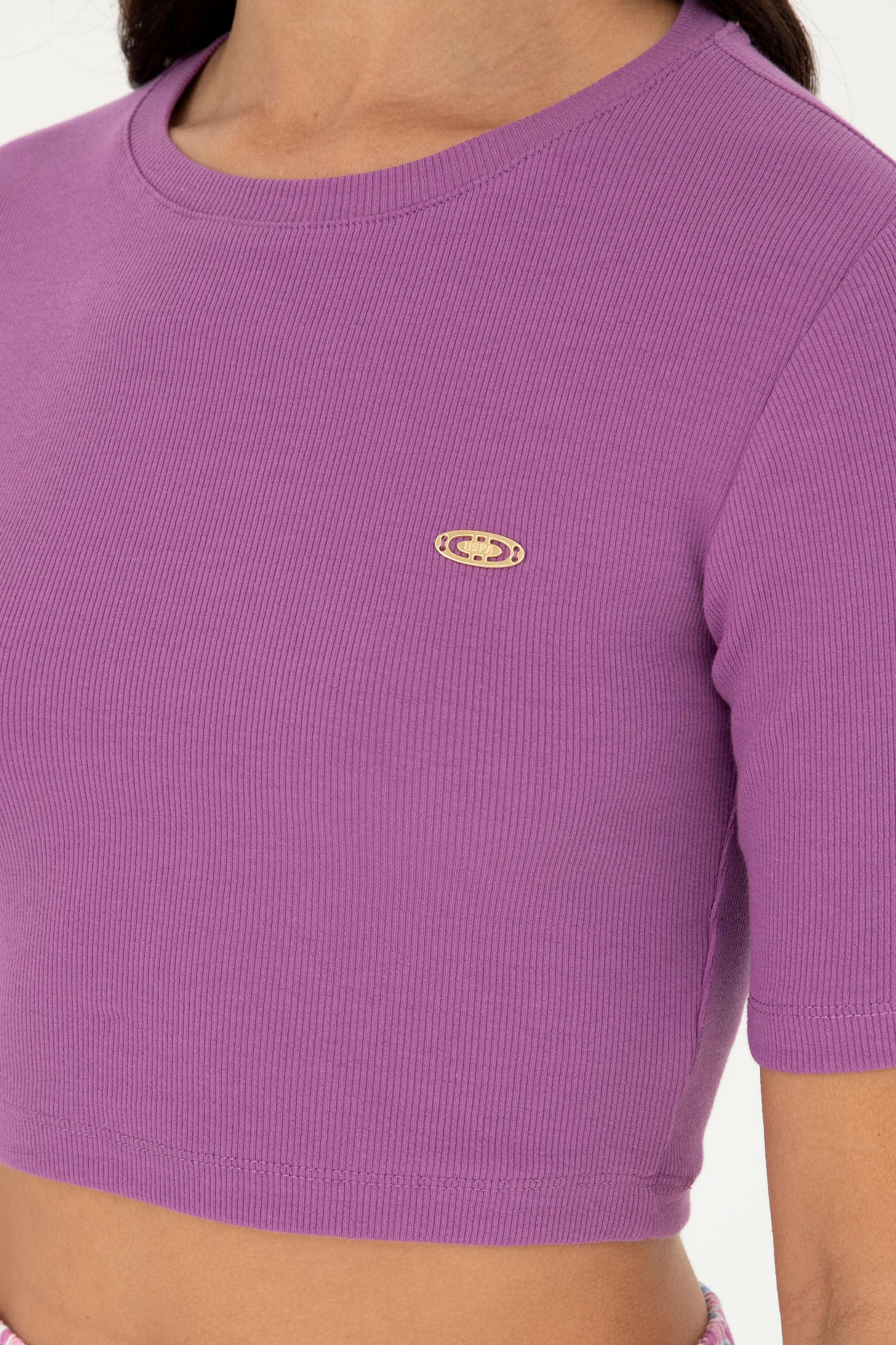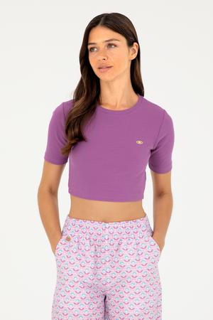"name": "Kadın Mor Bisiklet Yaka Crop Tişört",