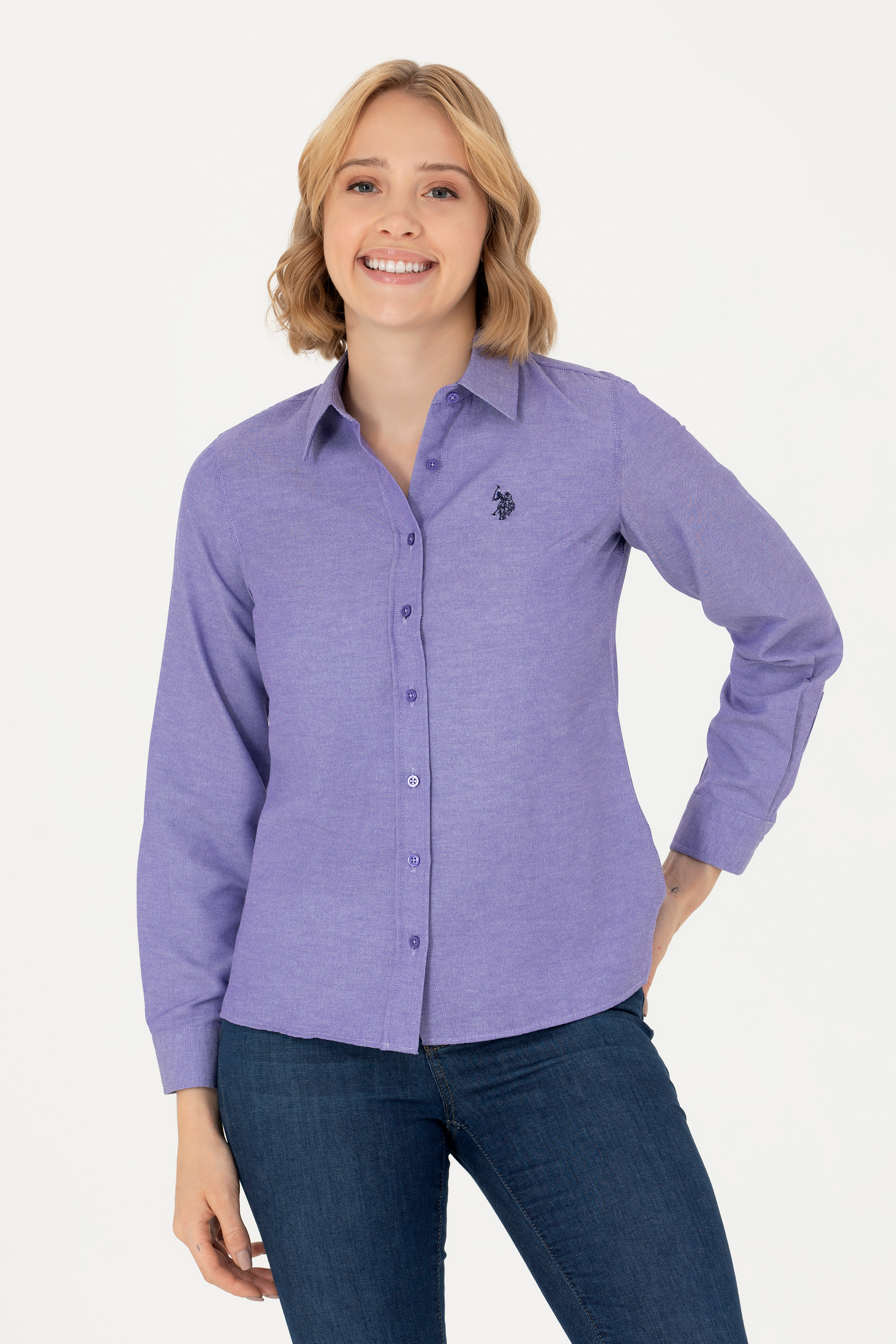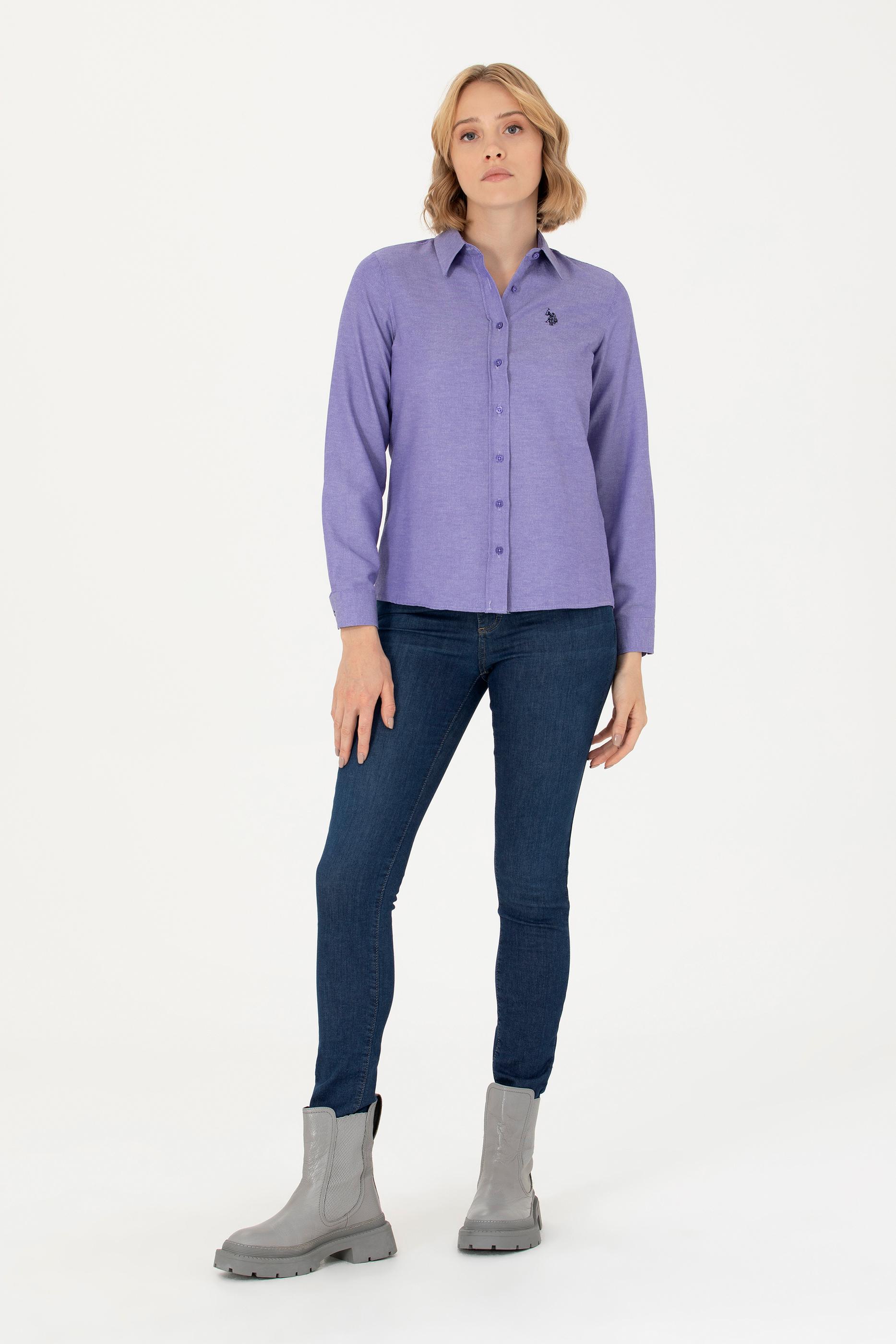 - Kadın Mor Uzun Kollu Basic Gömlek