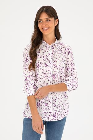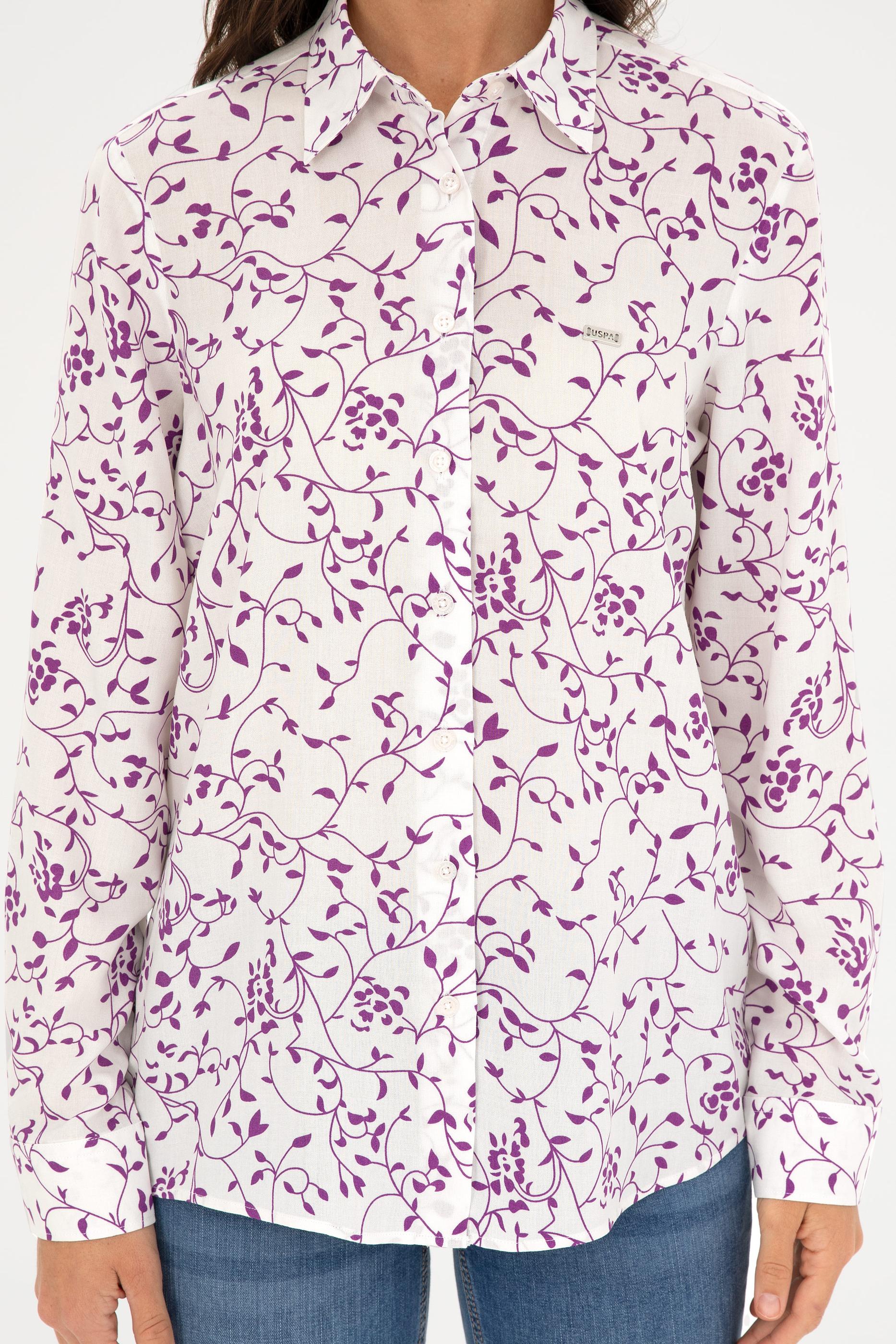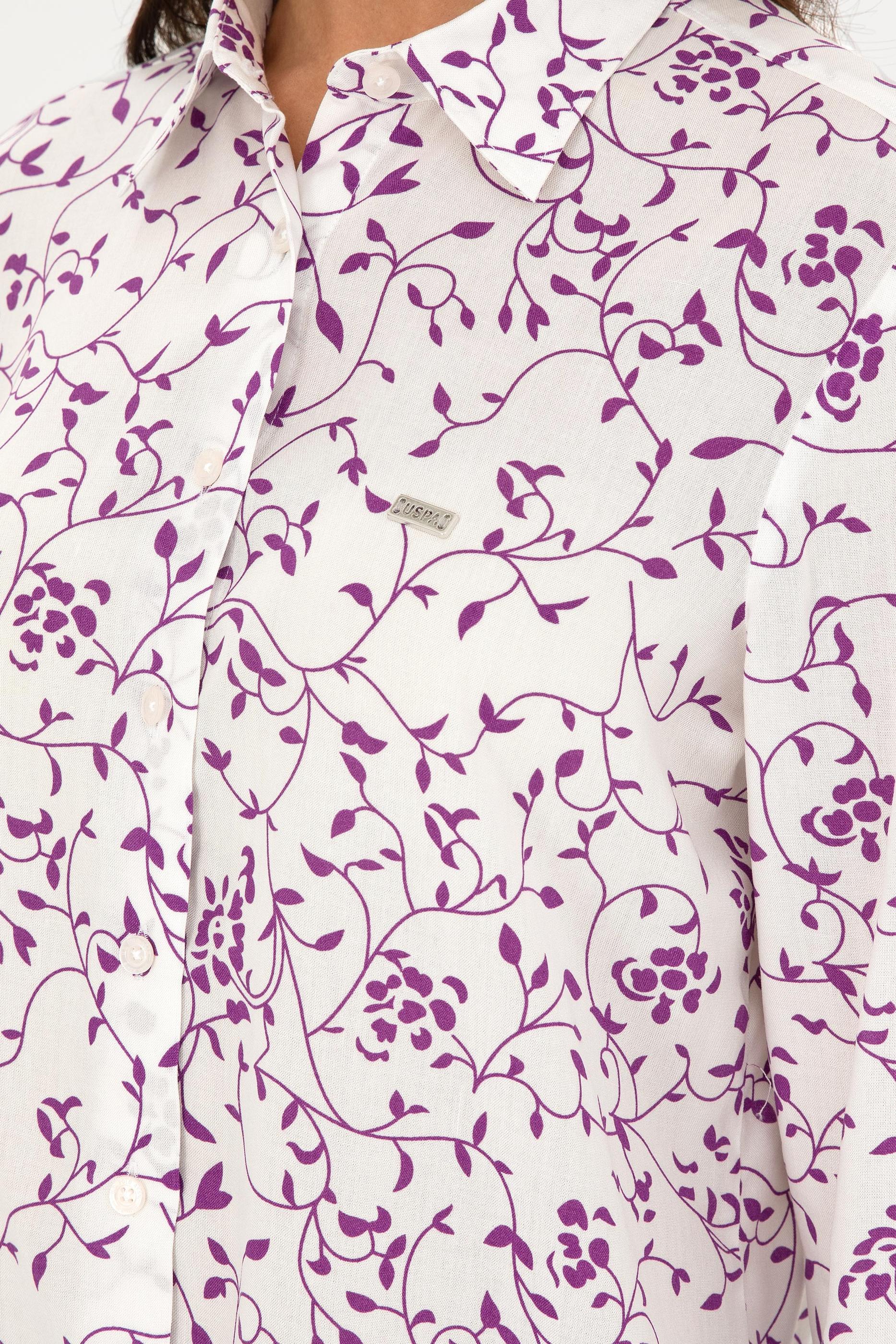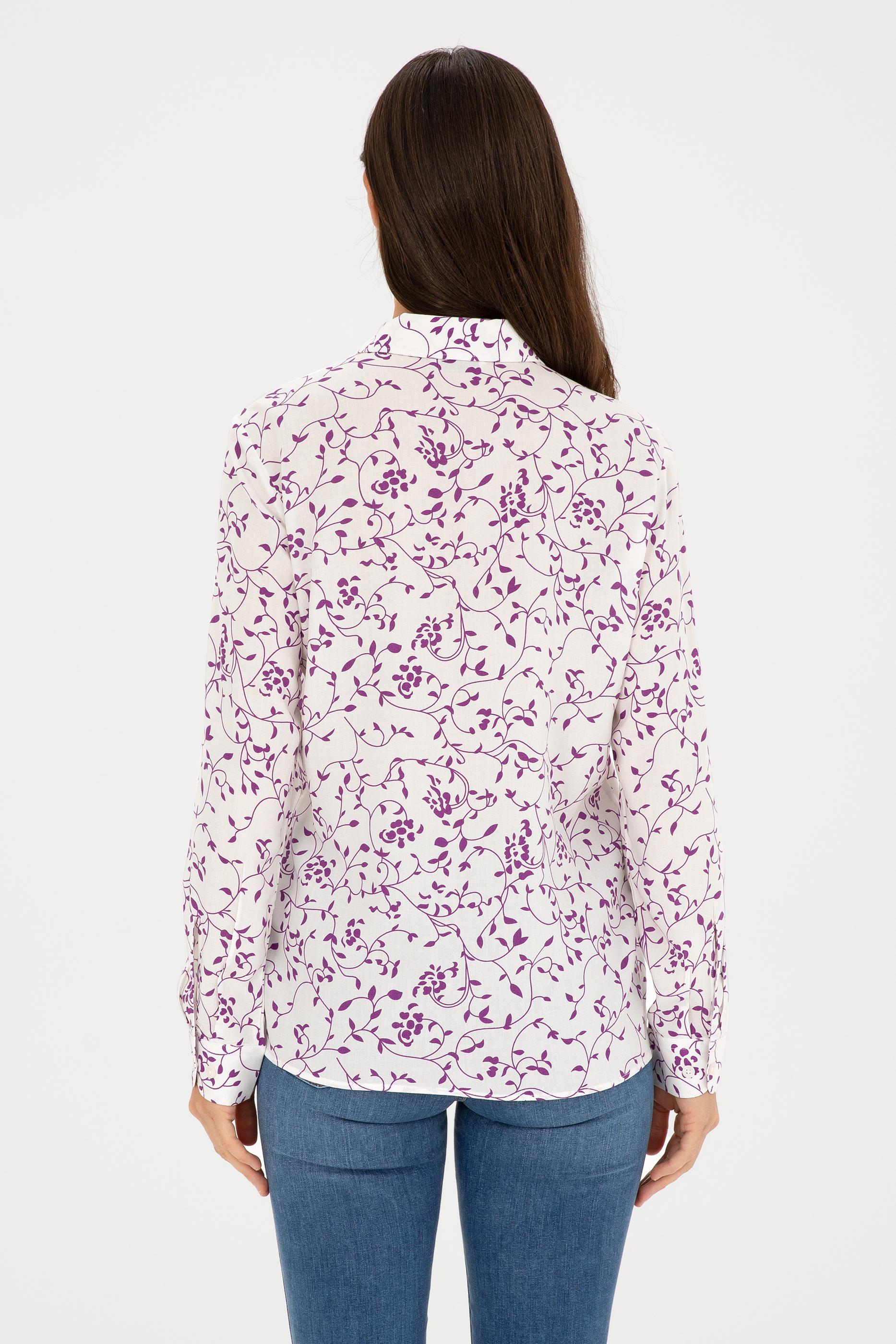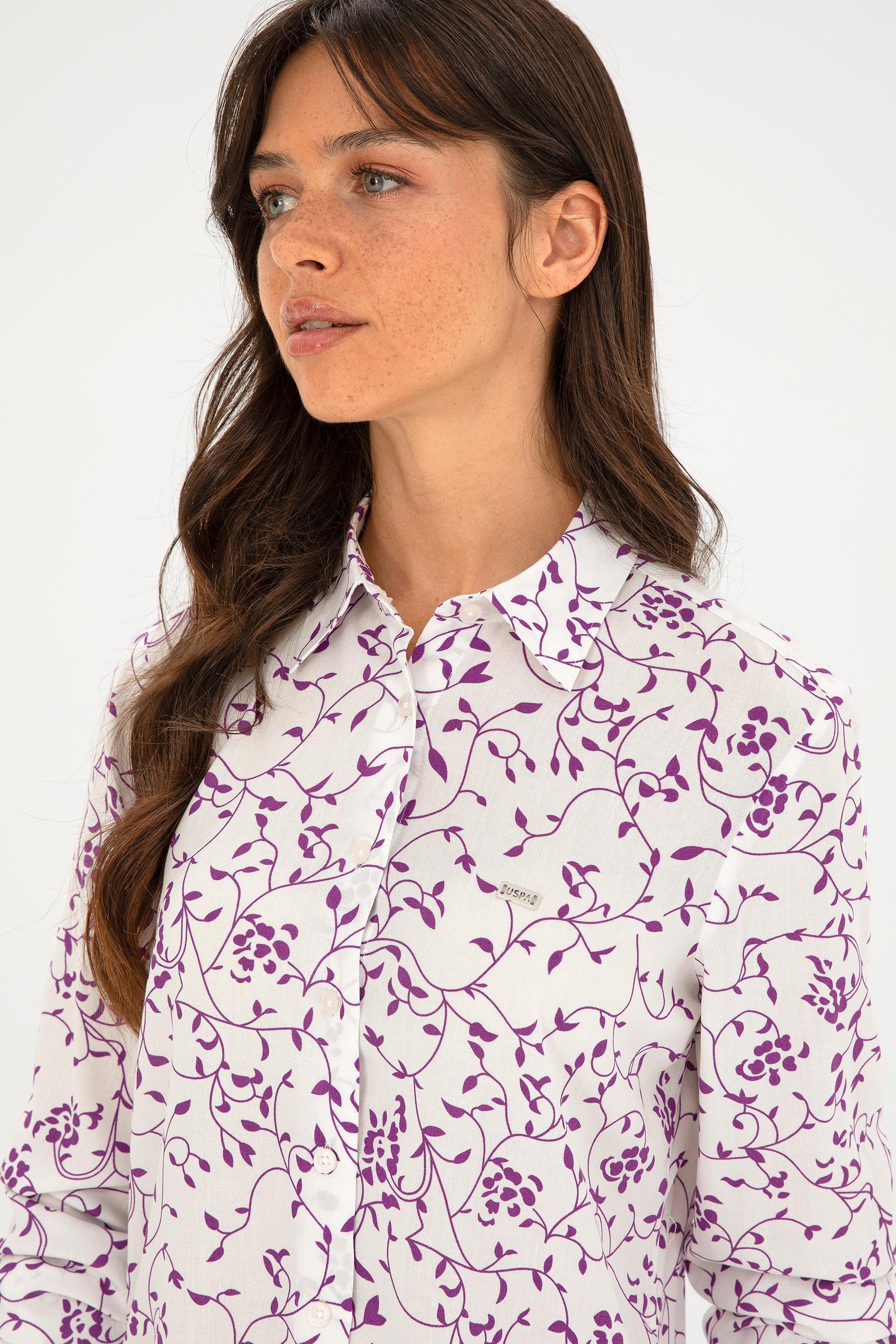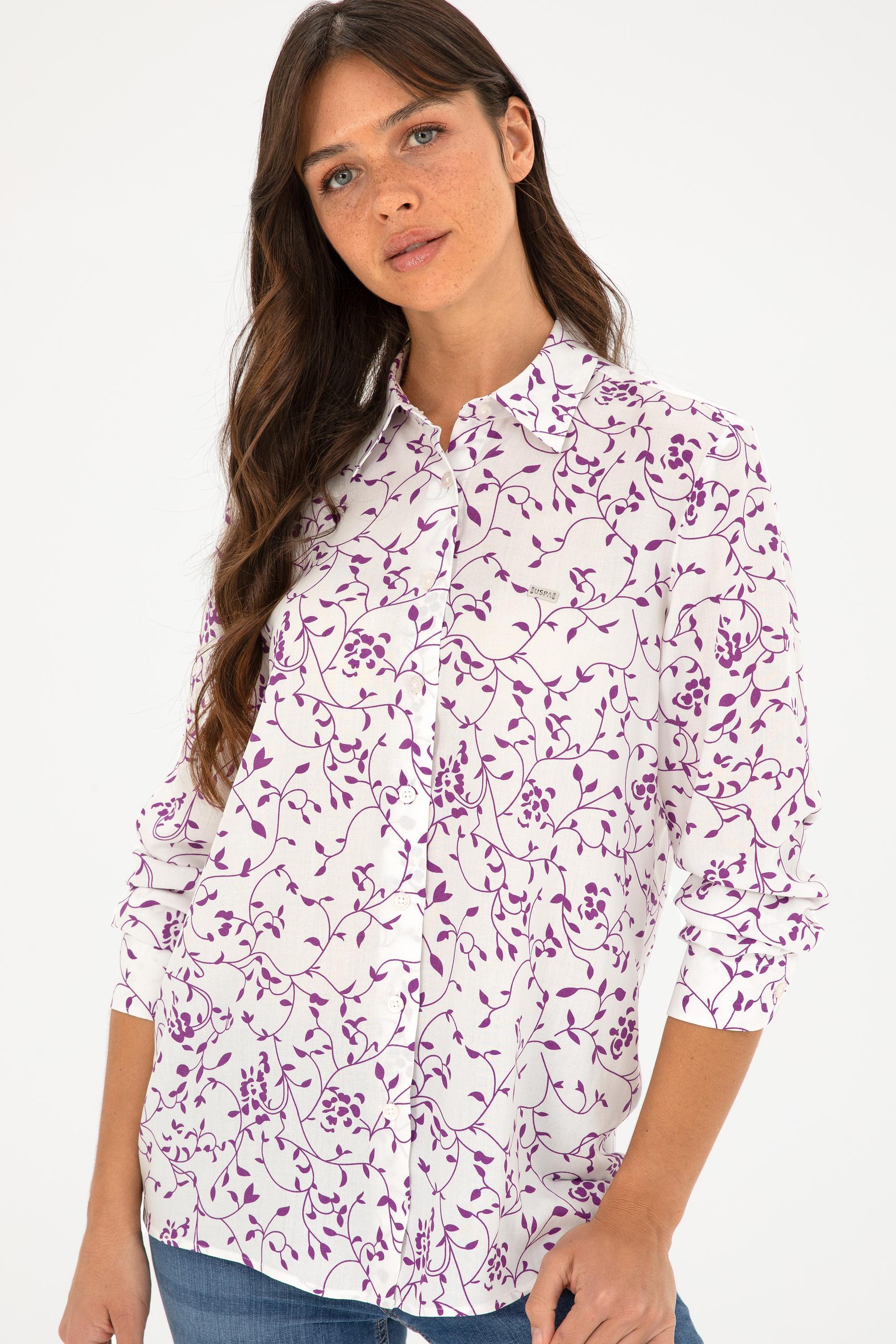 Doğanın yeniden canlandığı bu mevsimde, çiçeklerin enerjisiyle bezenmiş bu gömlek, günlerinize tazelik katacak. Doğal dokusuyla cildinizi şımartır iken, zarif görünüşünüzle de her ortamda dikkatleri üzerinize çekeceksiniz. Baharın enerjisi ve çiçeklerin coşkusu mor çiçek desenli gömlekle stilinize yansıyacak.
