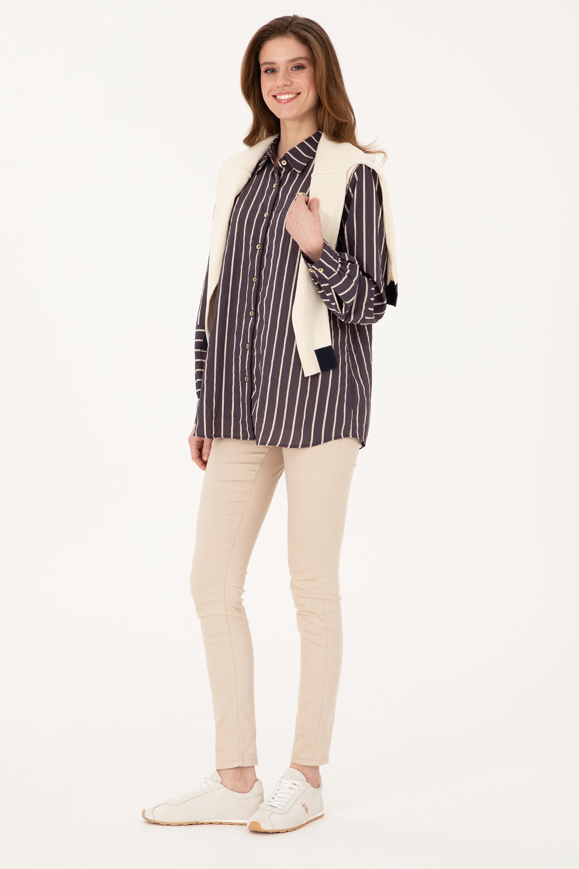 Kadın Mürdüm Uzun Kollu Gömlek