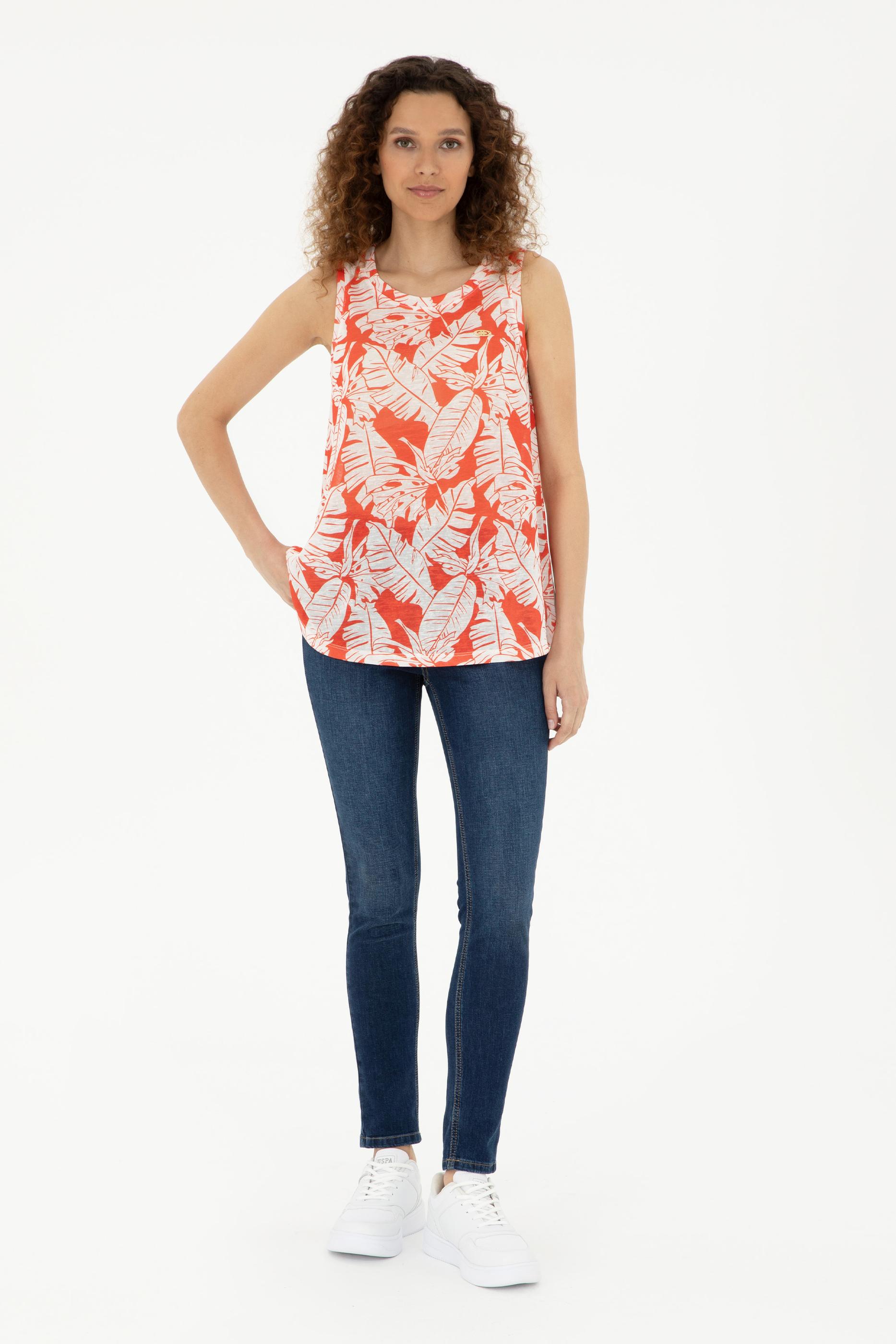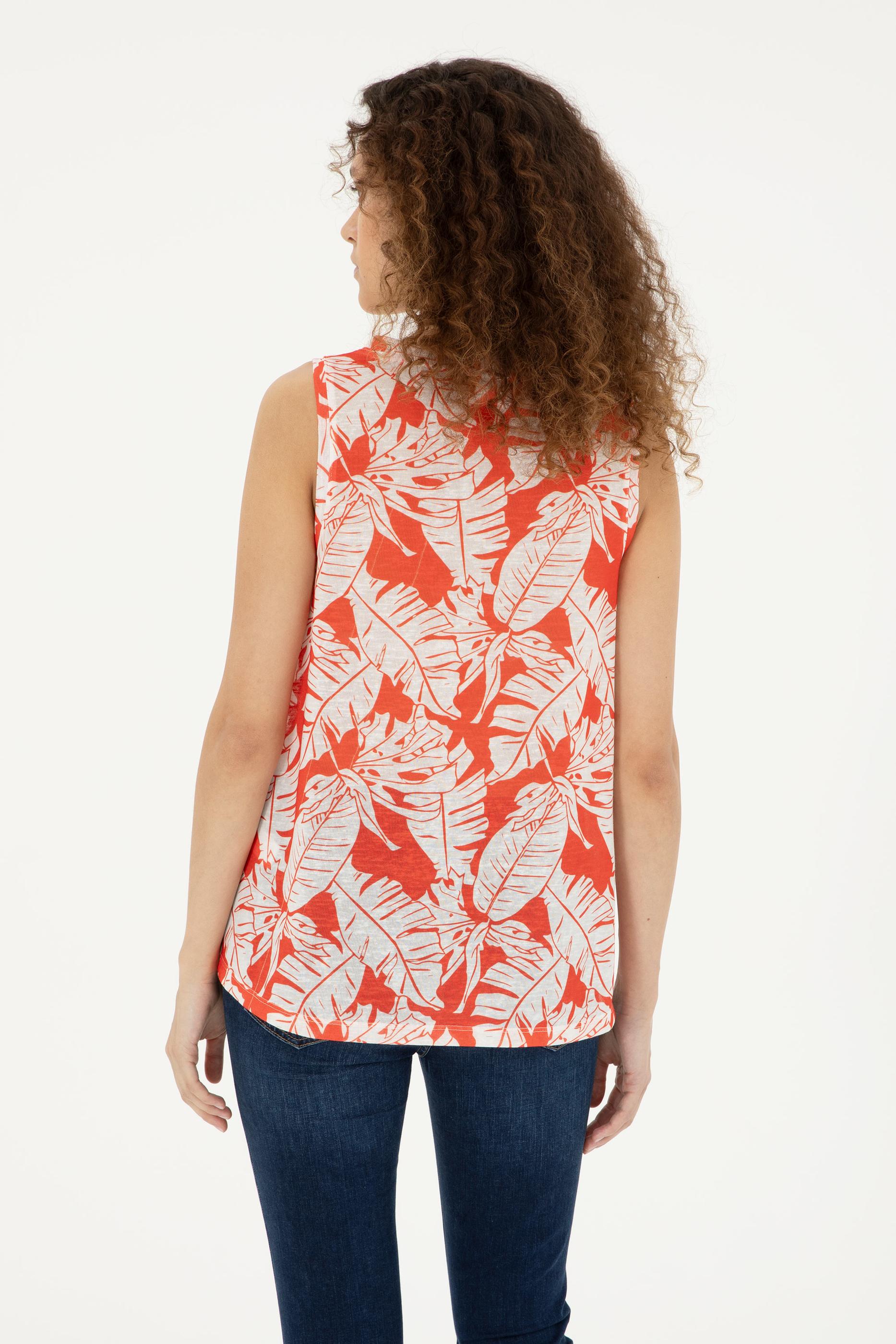 Kadın Nar Çiçeği Kolsuz Bisiklet Yaka Tişört
