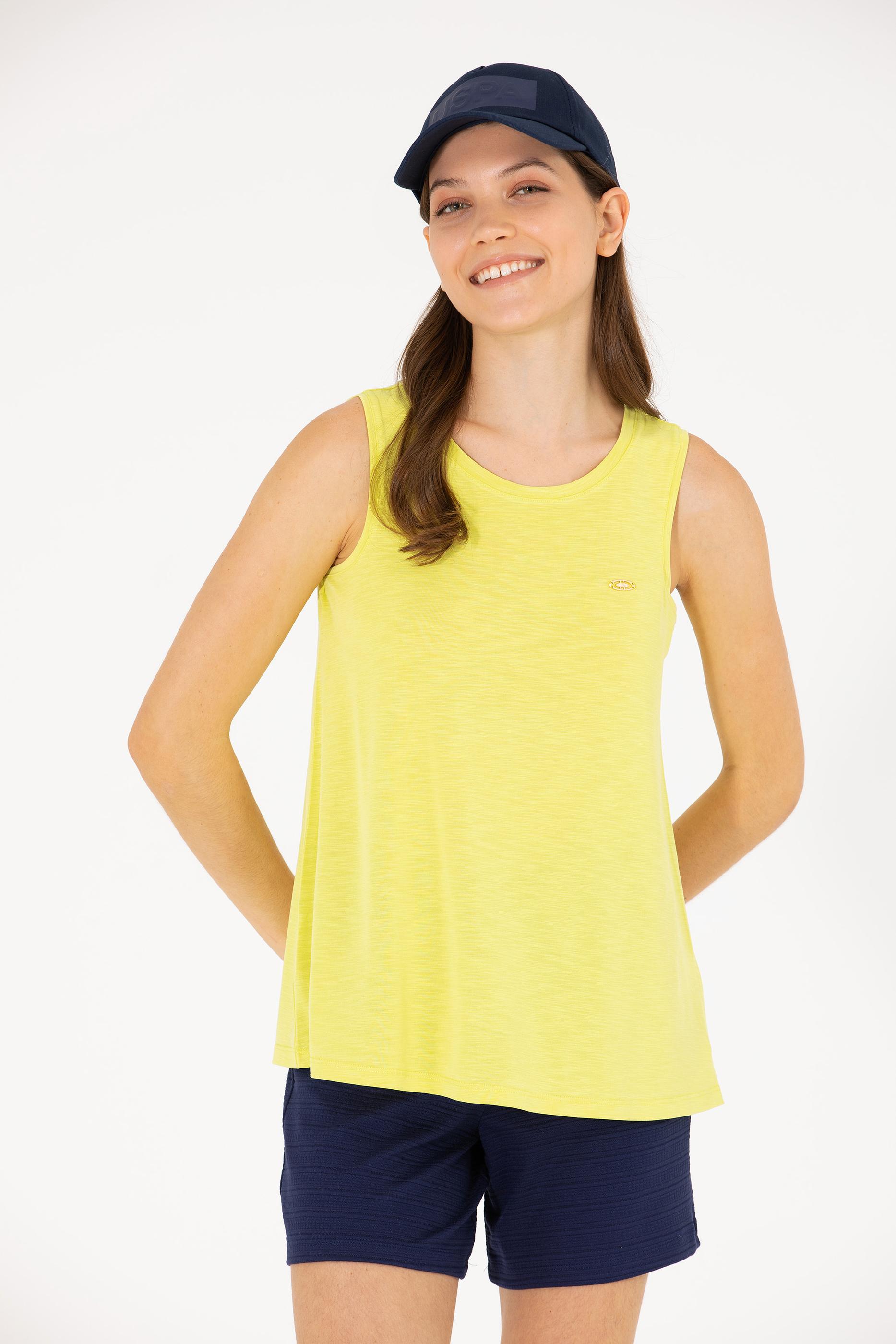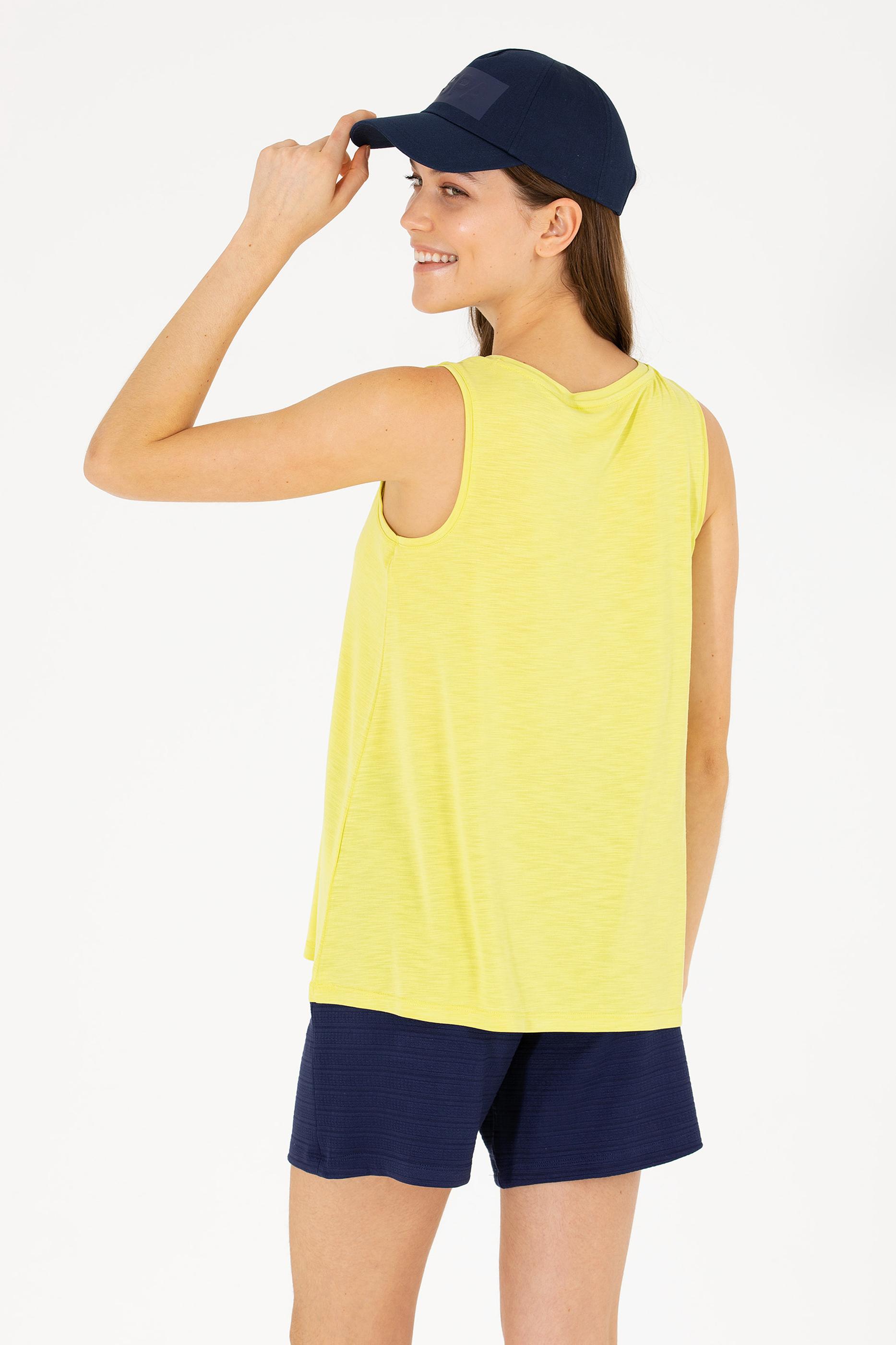 Kadın Neon Sarı Bisiklet Yaka Kolsuz Tişört