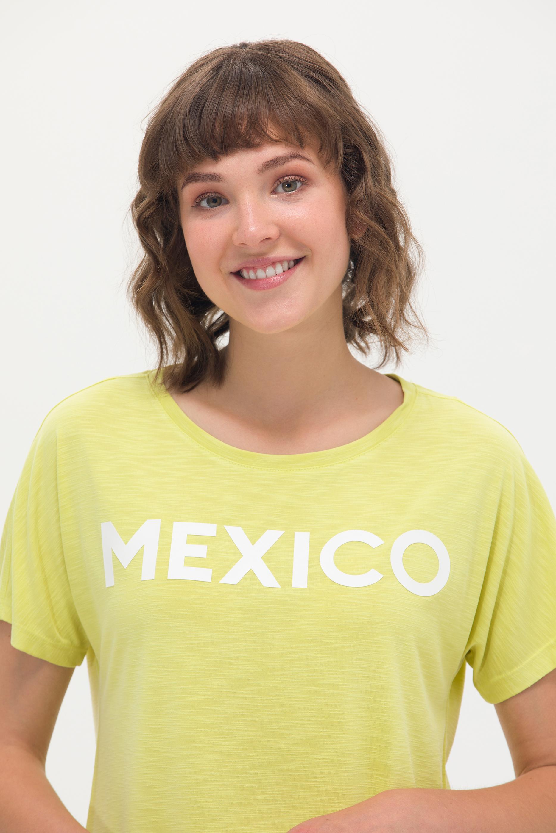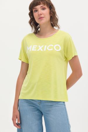Kadın Neon Sarı Bisiklet Yaka Tişört