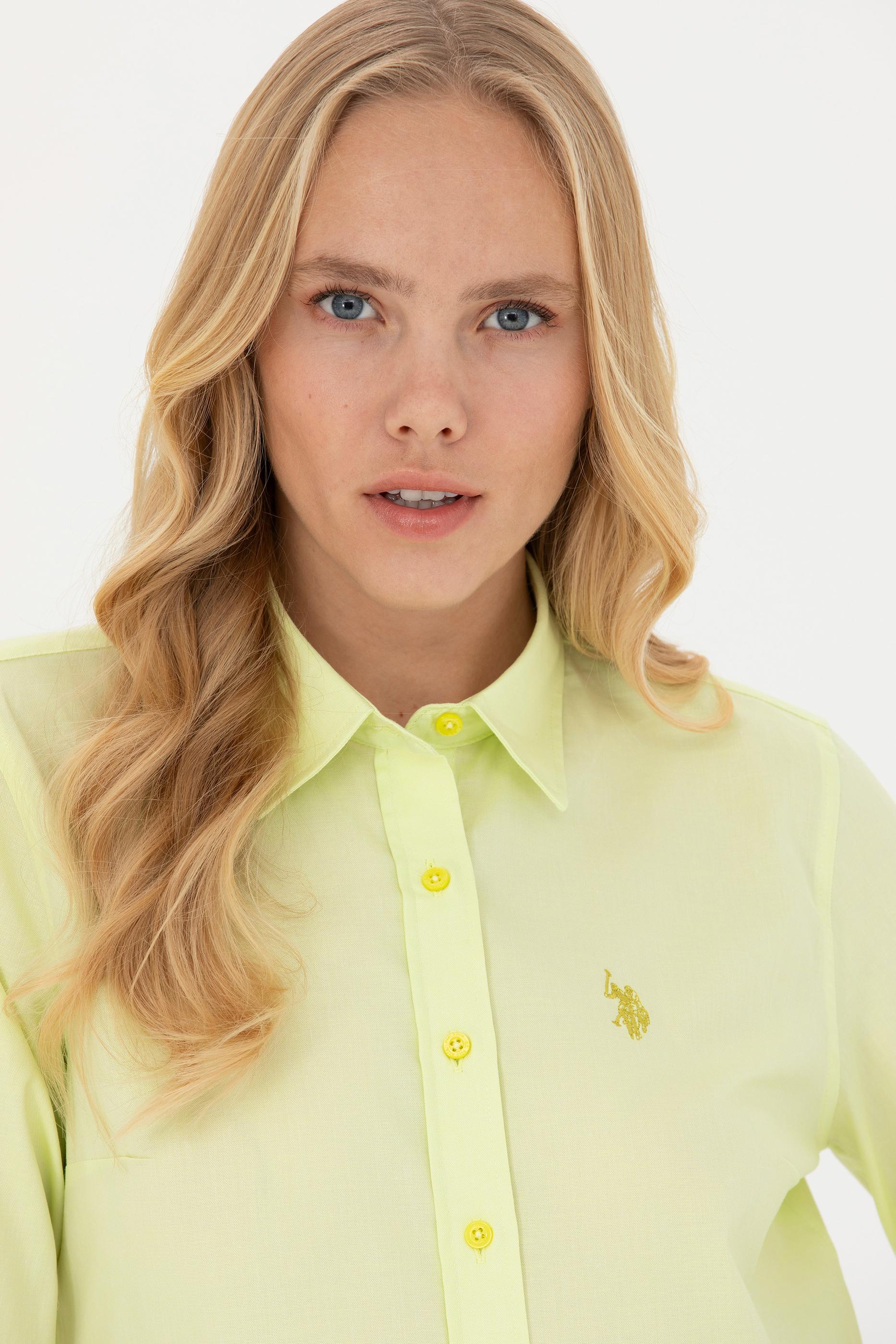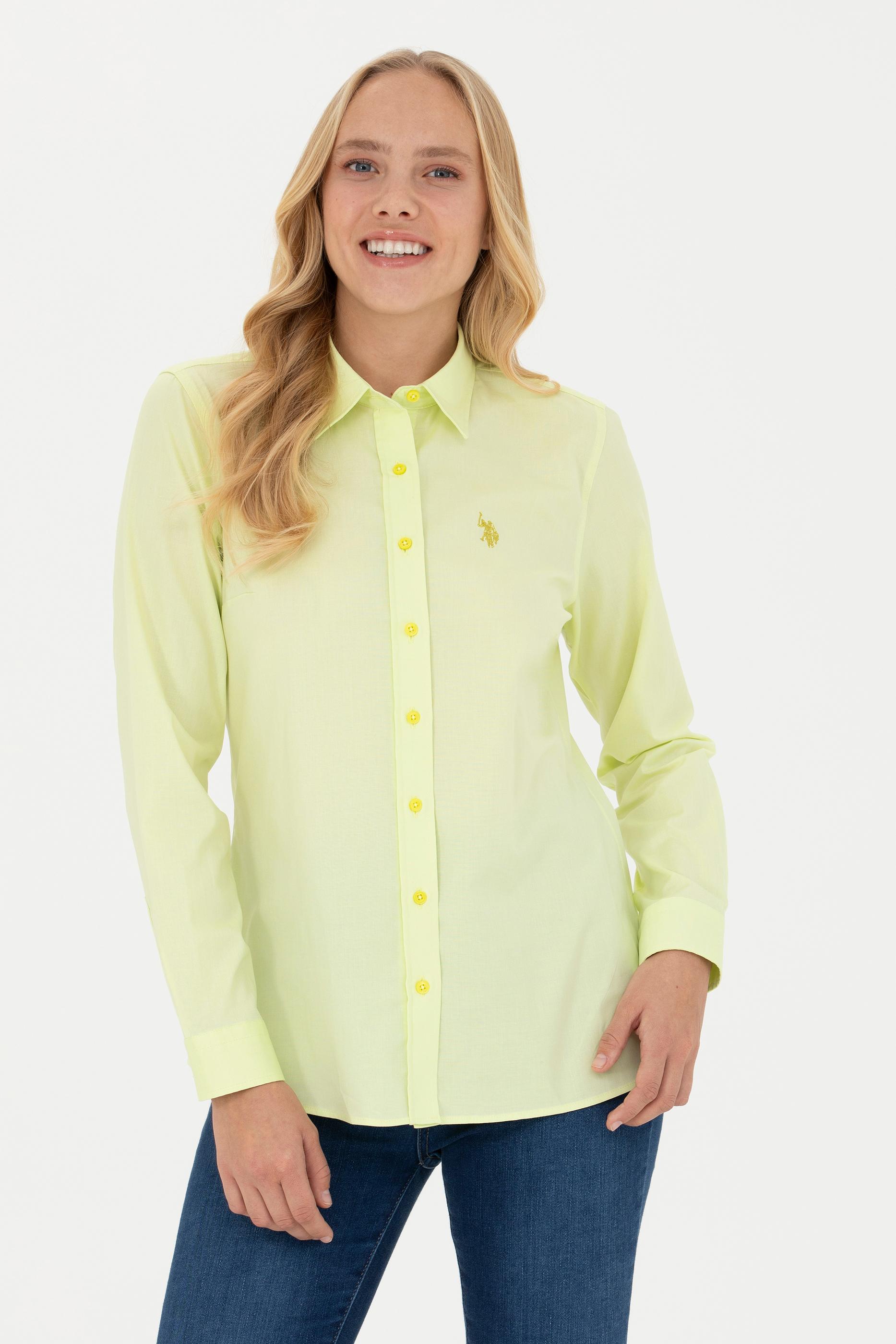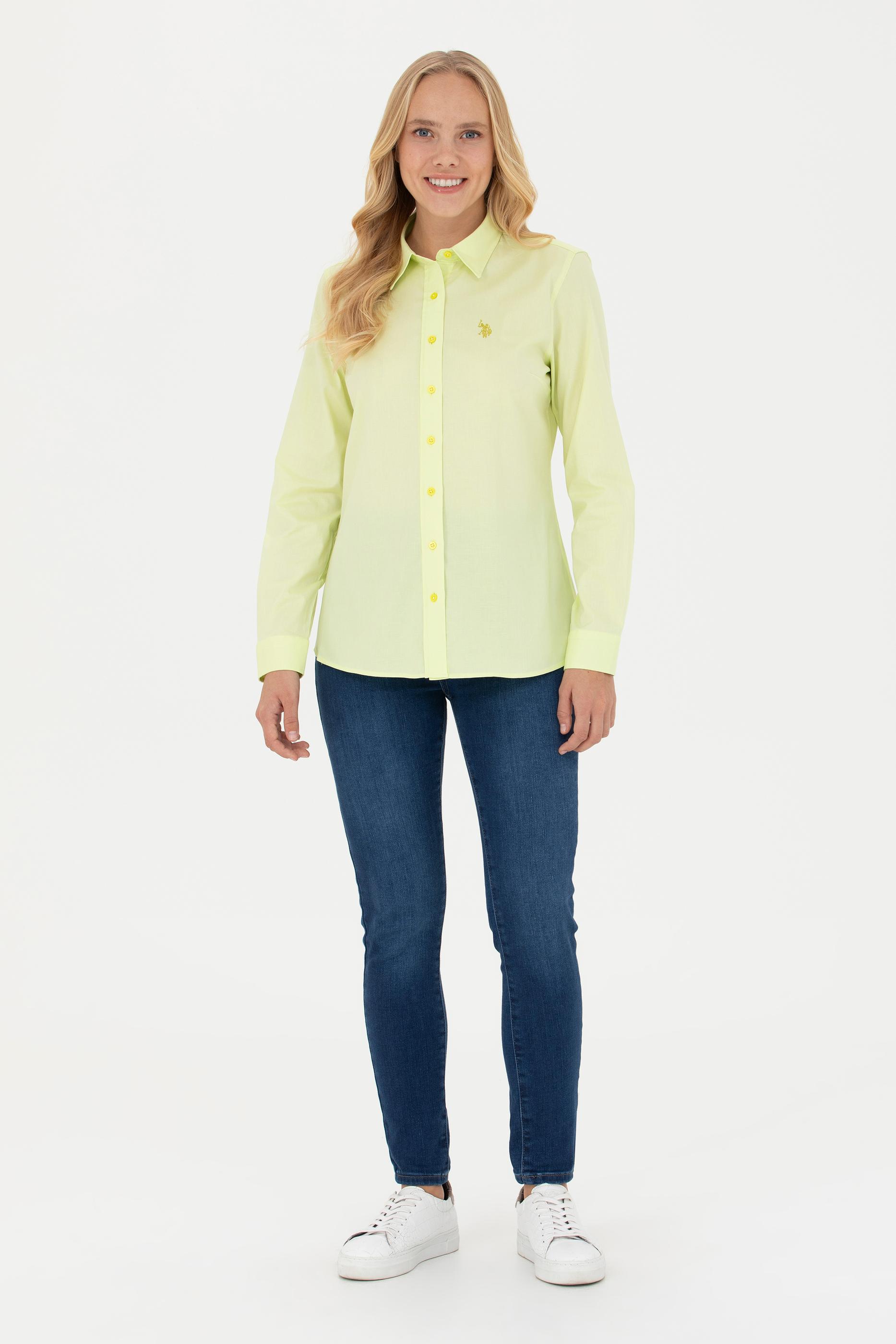 - Kadın Neon Sarı Uzun Kollu Basic Gömlek