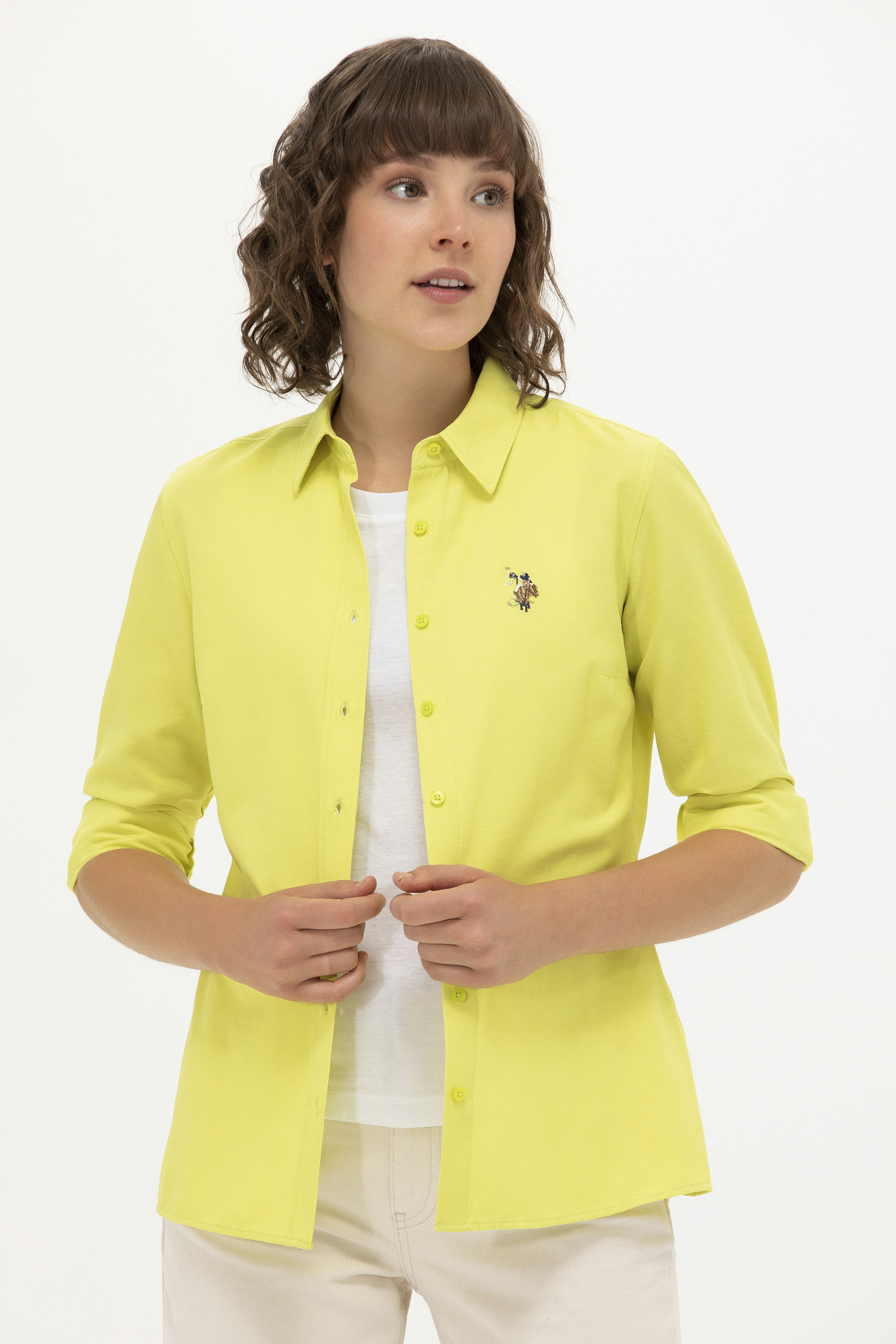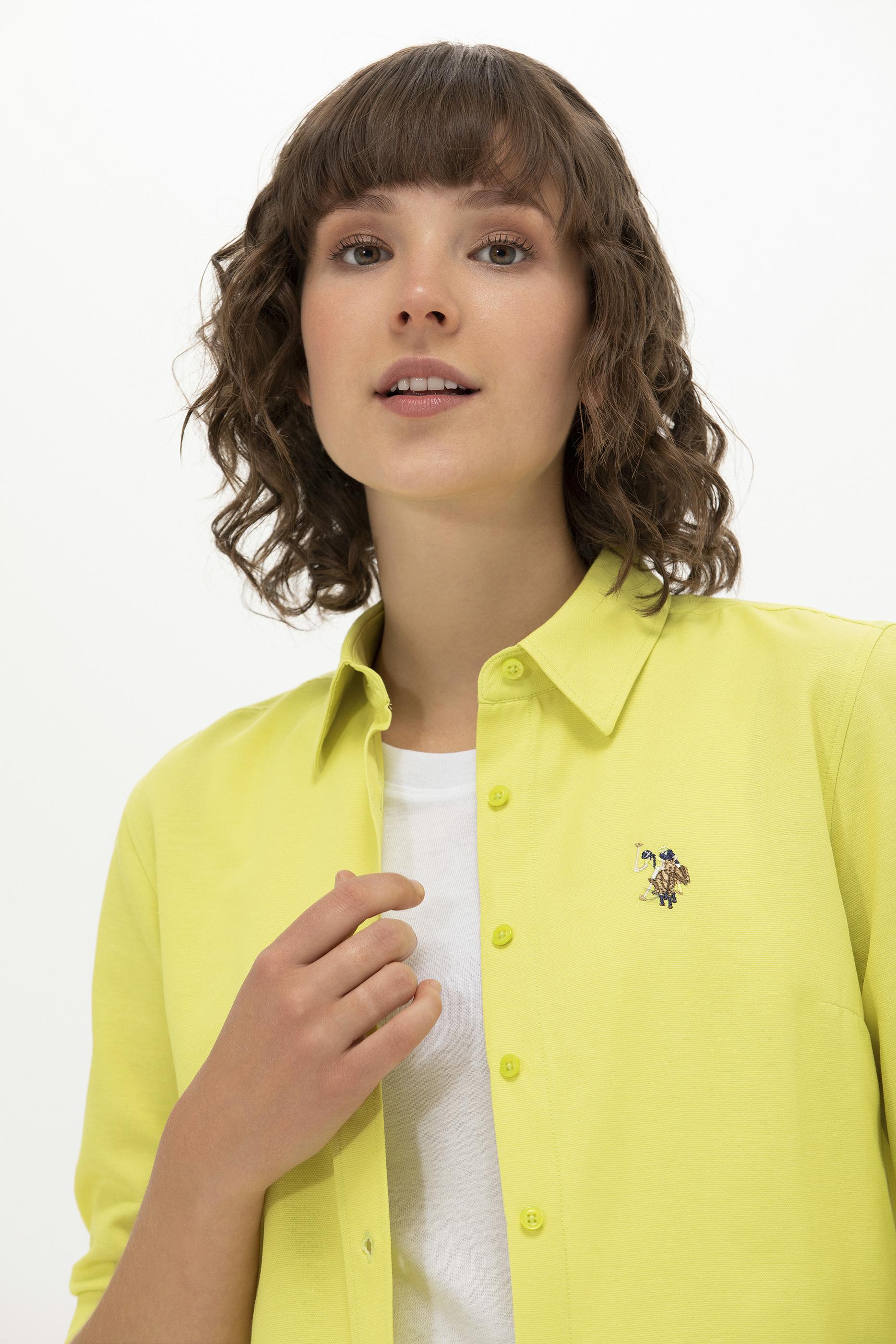 Kadın Neon Sarı Uzun Kollu Basic Gömlek