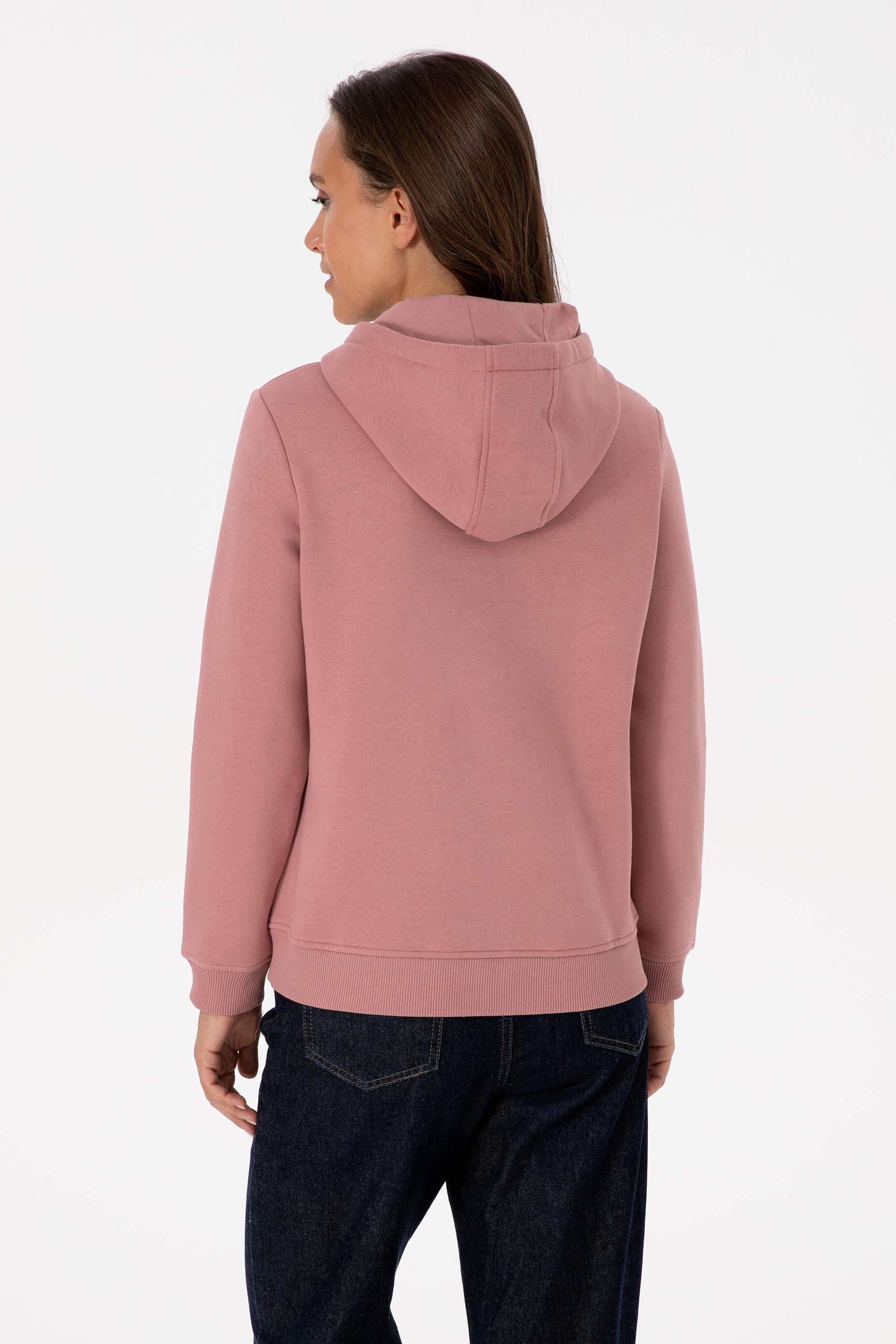 Kadın Gül Kurusu Kapüşonlu Basic Sweatshirt