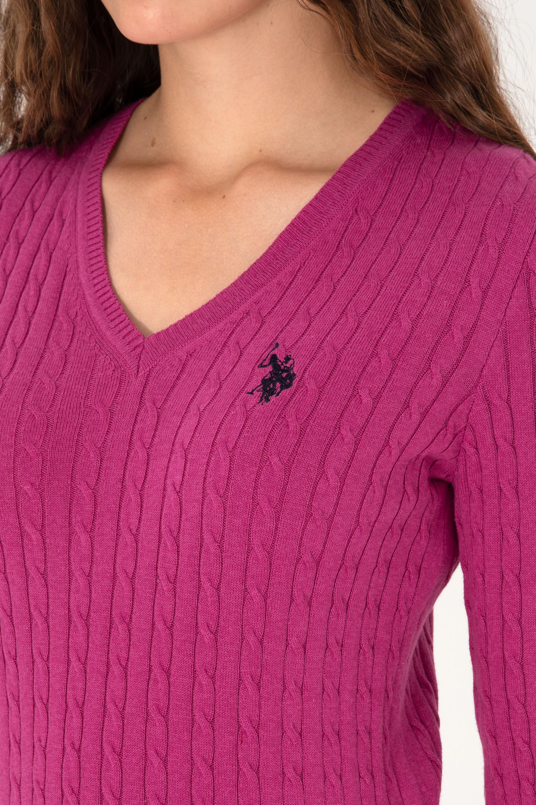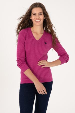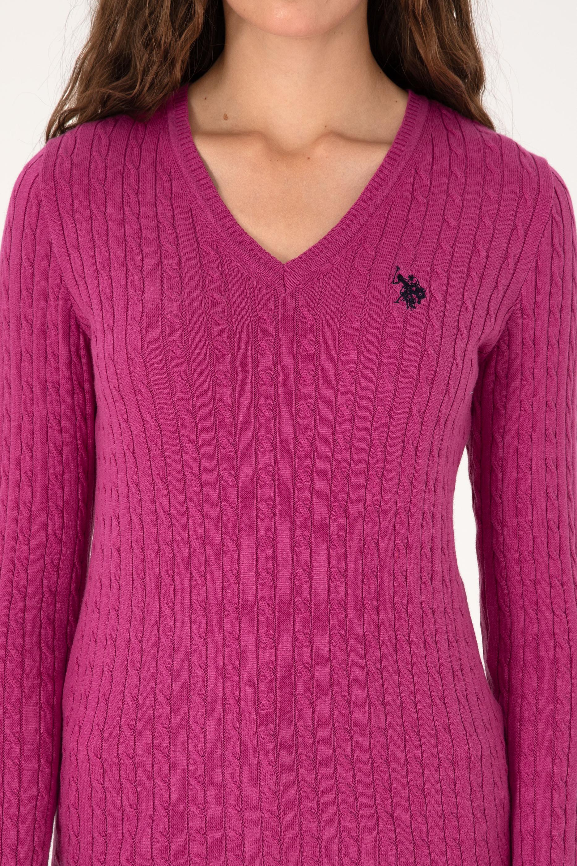 Kadın Pembe V Yaka Basic Kazak - 50313625060