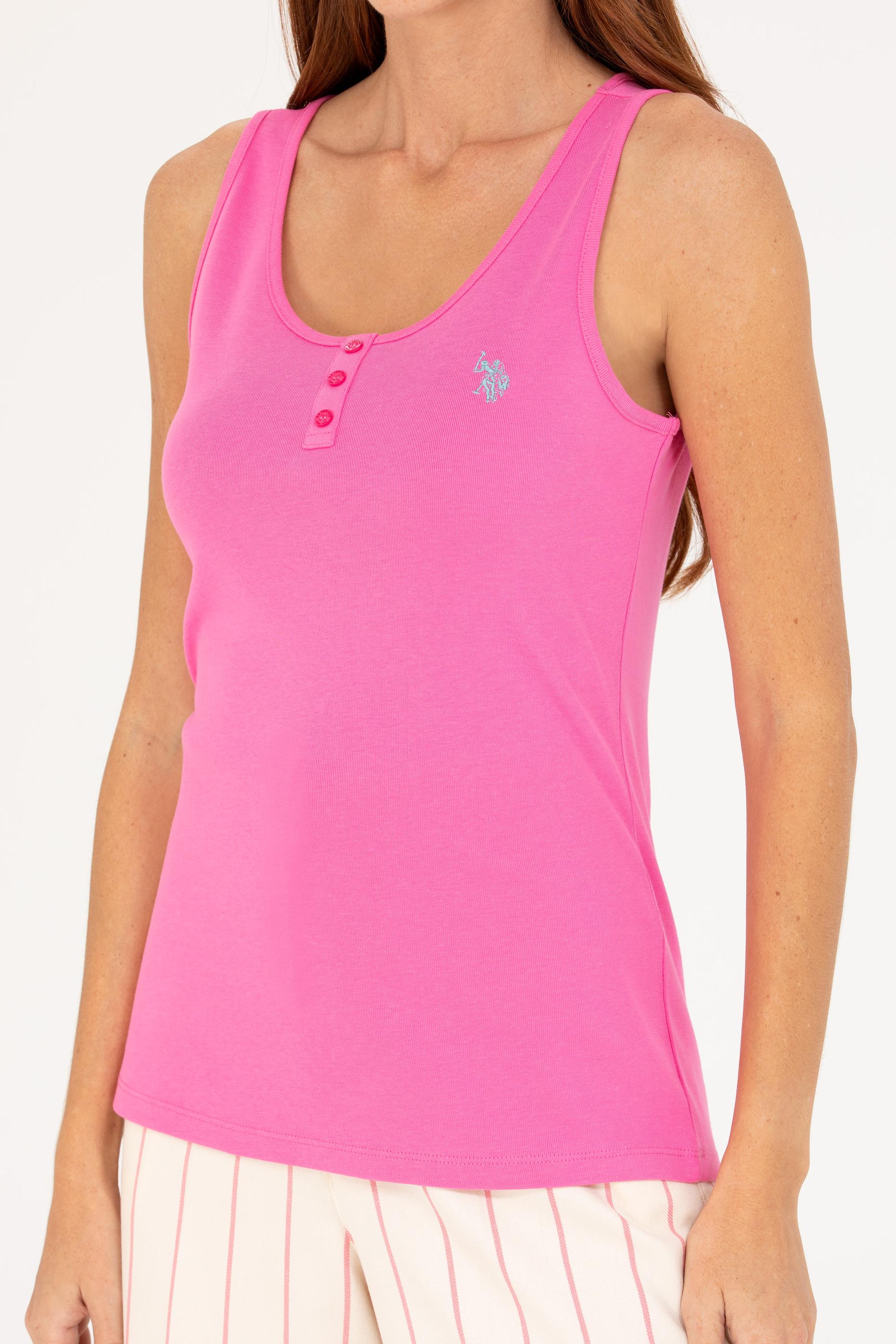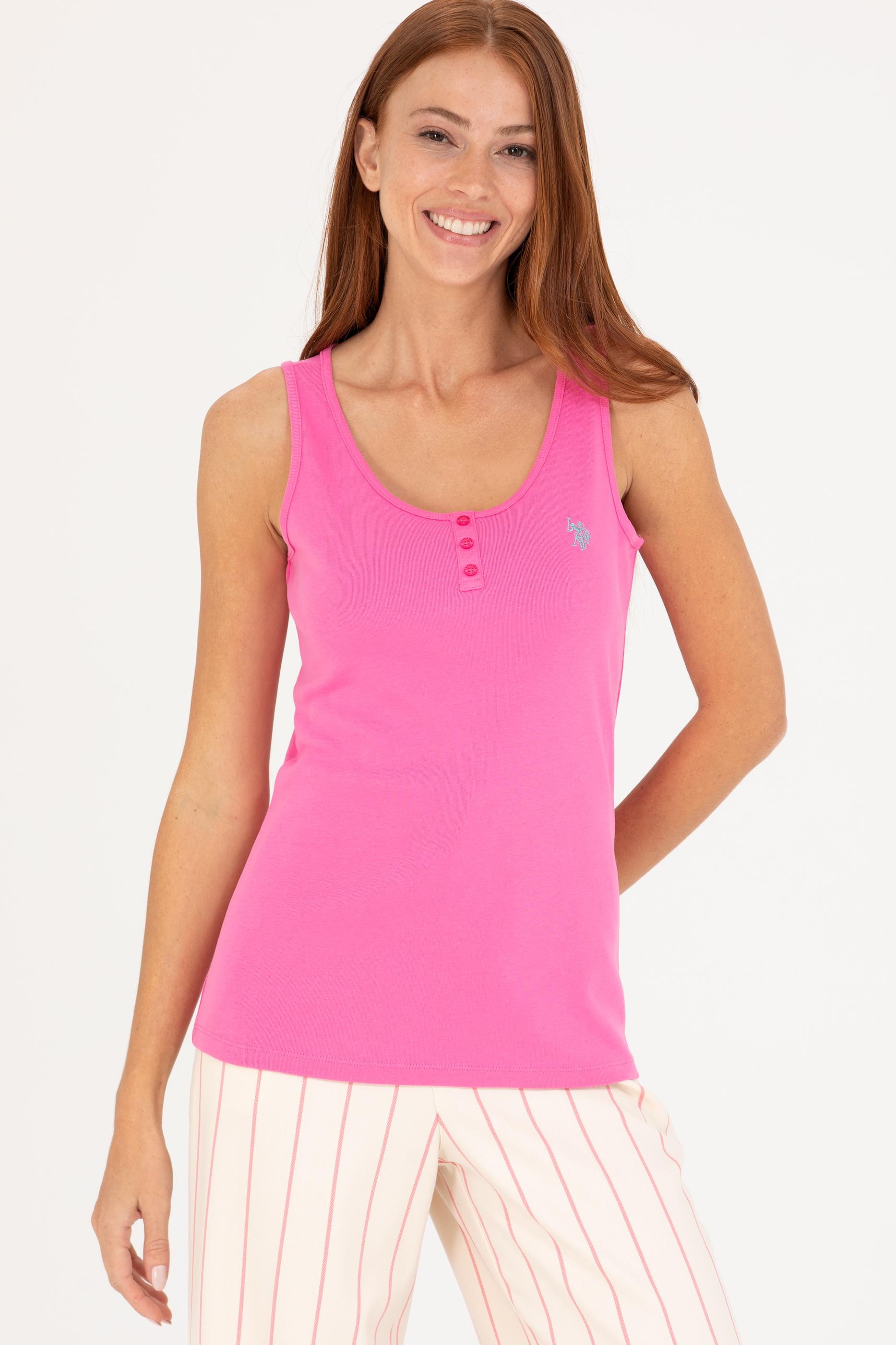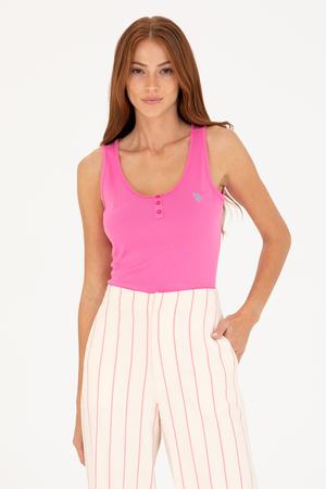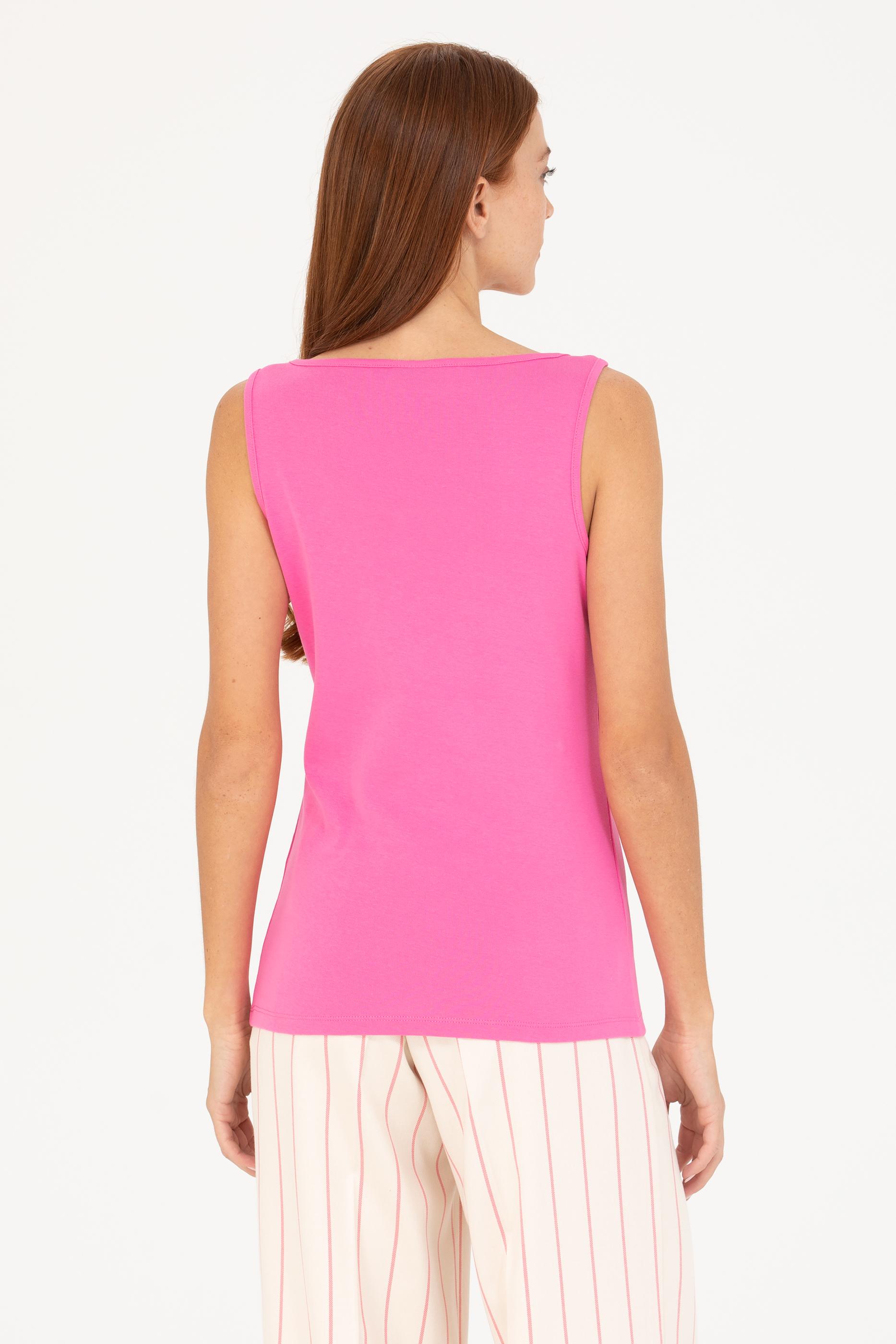 Kadın Pembe Bisiklet Yaka Kolsuz Basic Tişört