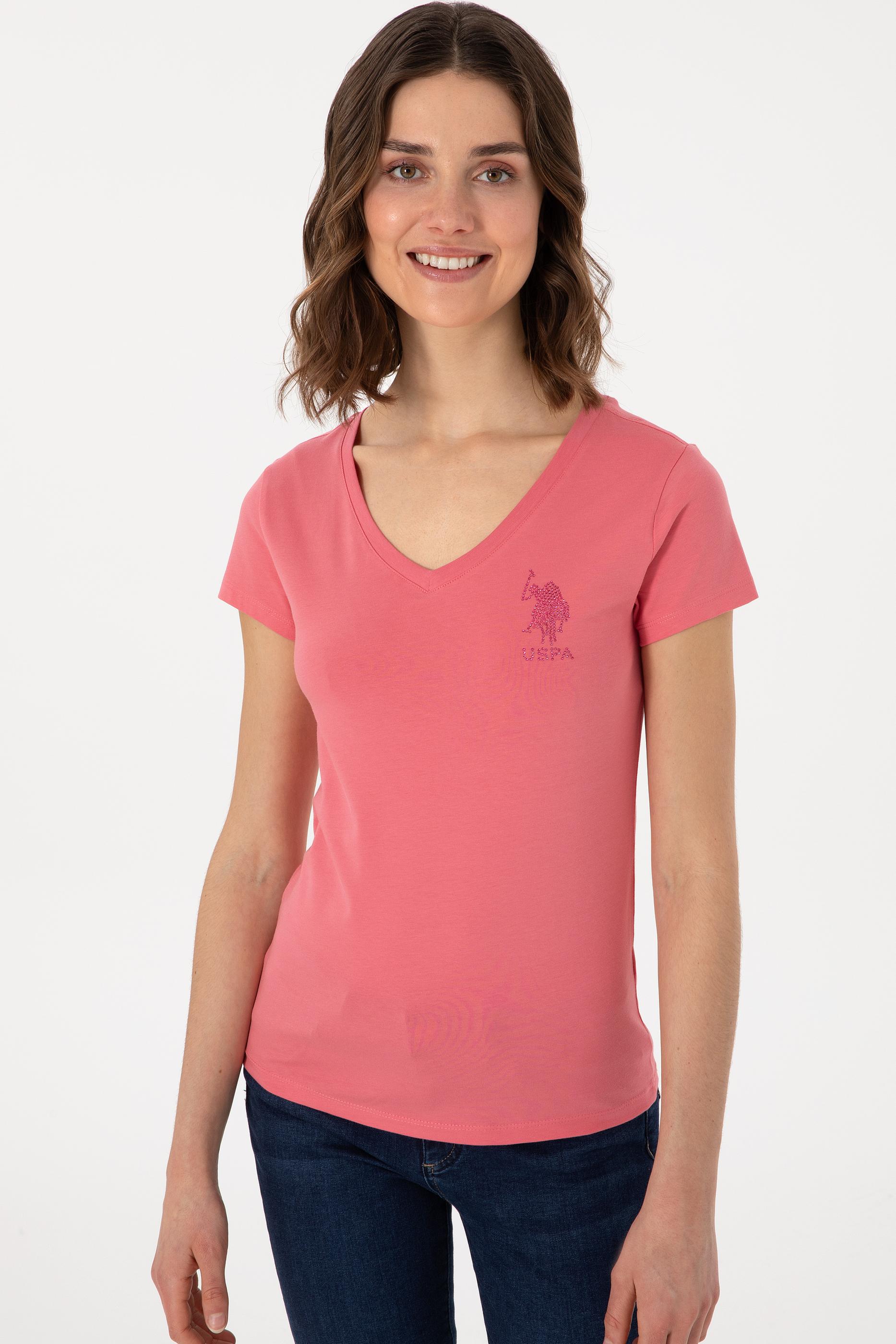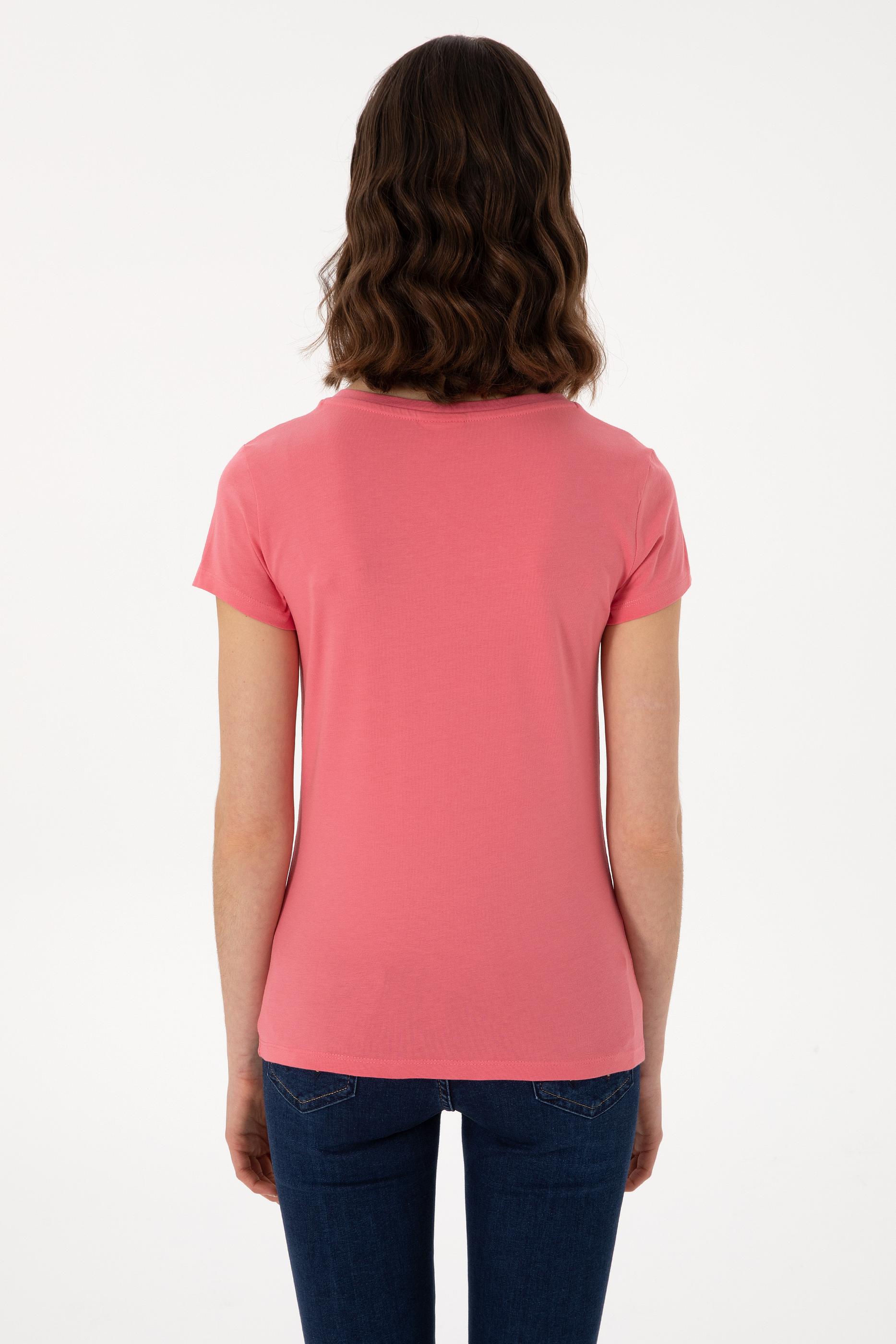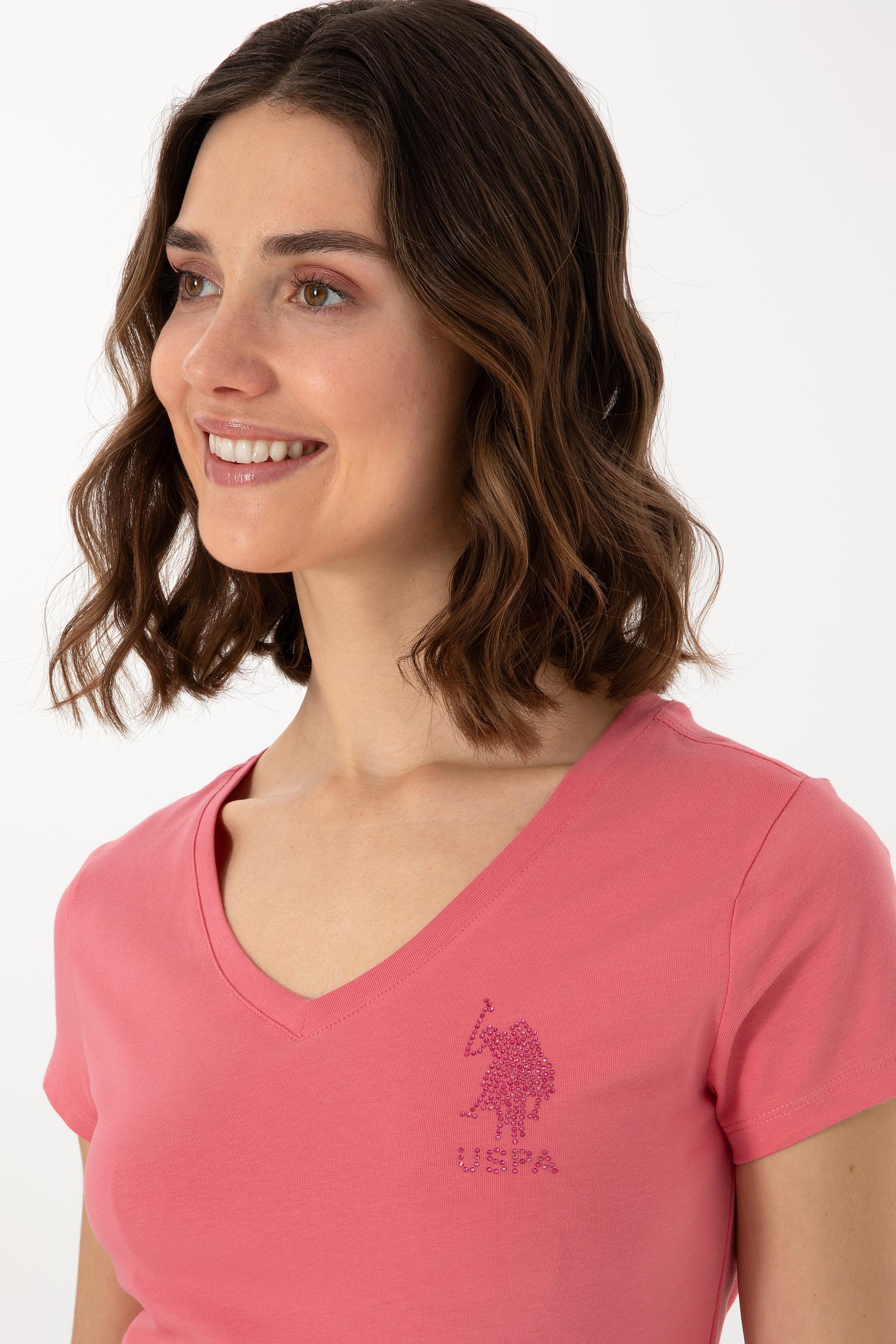 Kadın Koyu Pembe V Yaka Basic Tişört