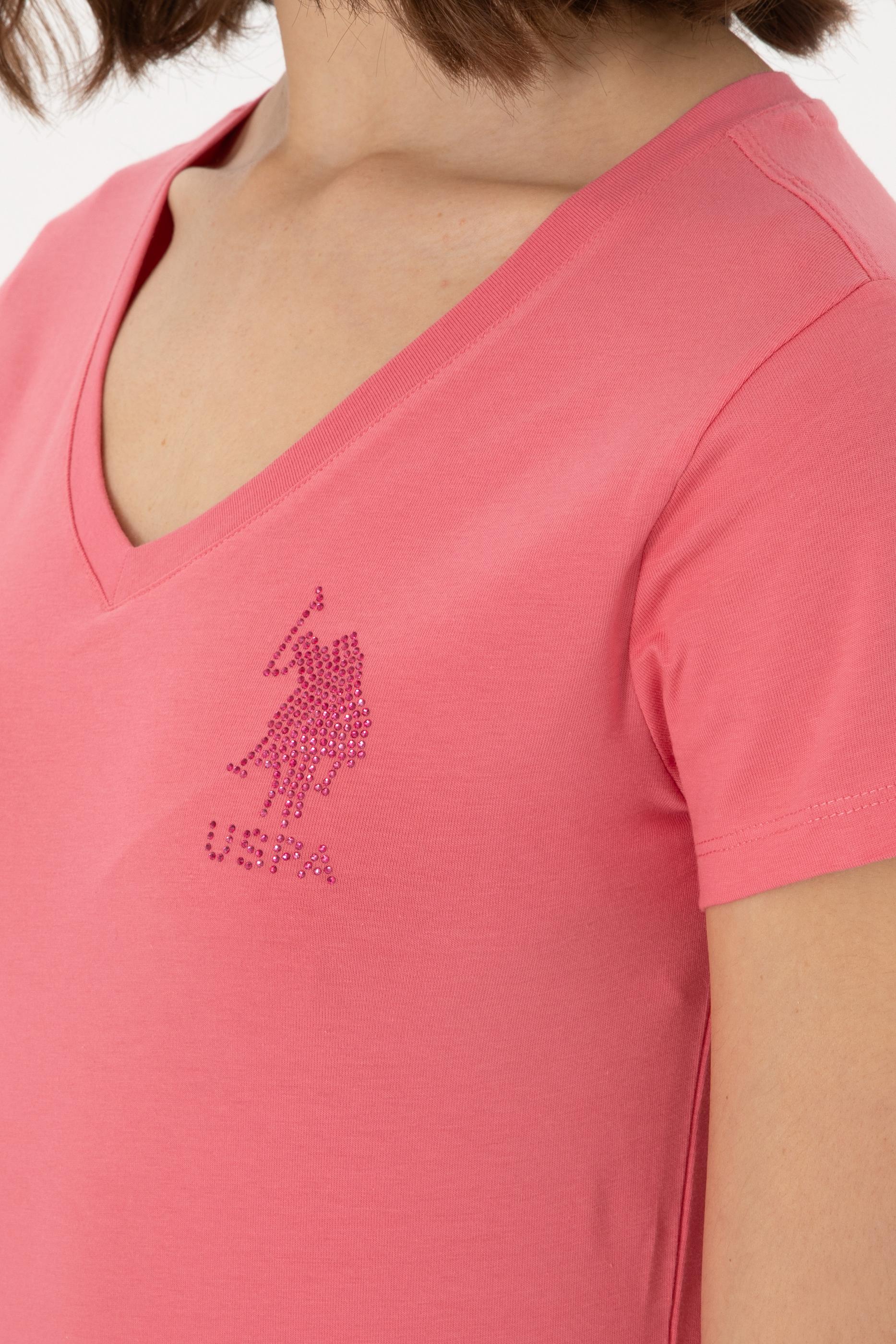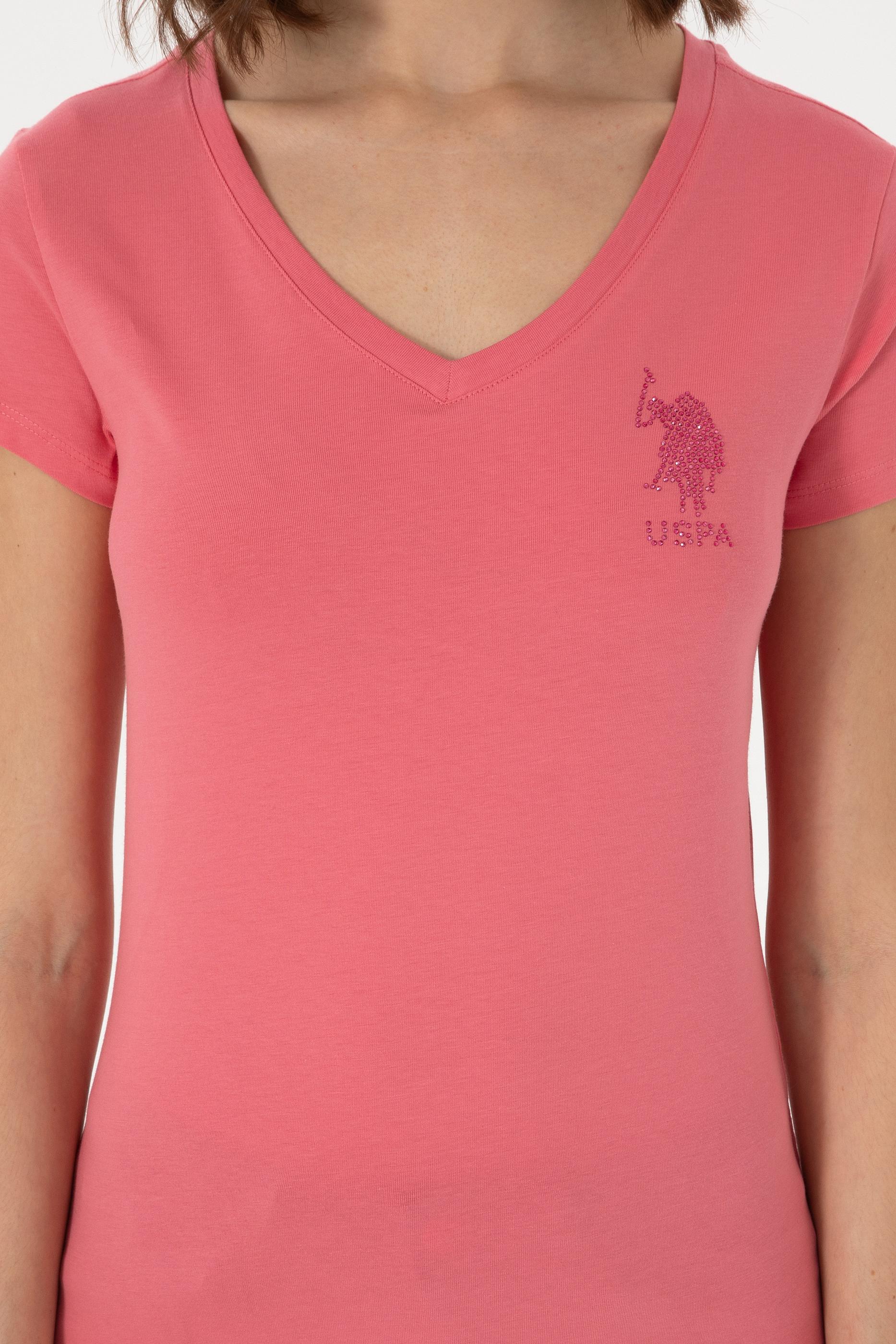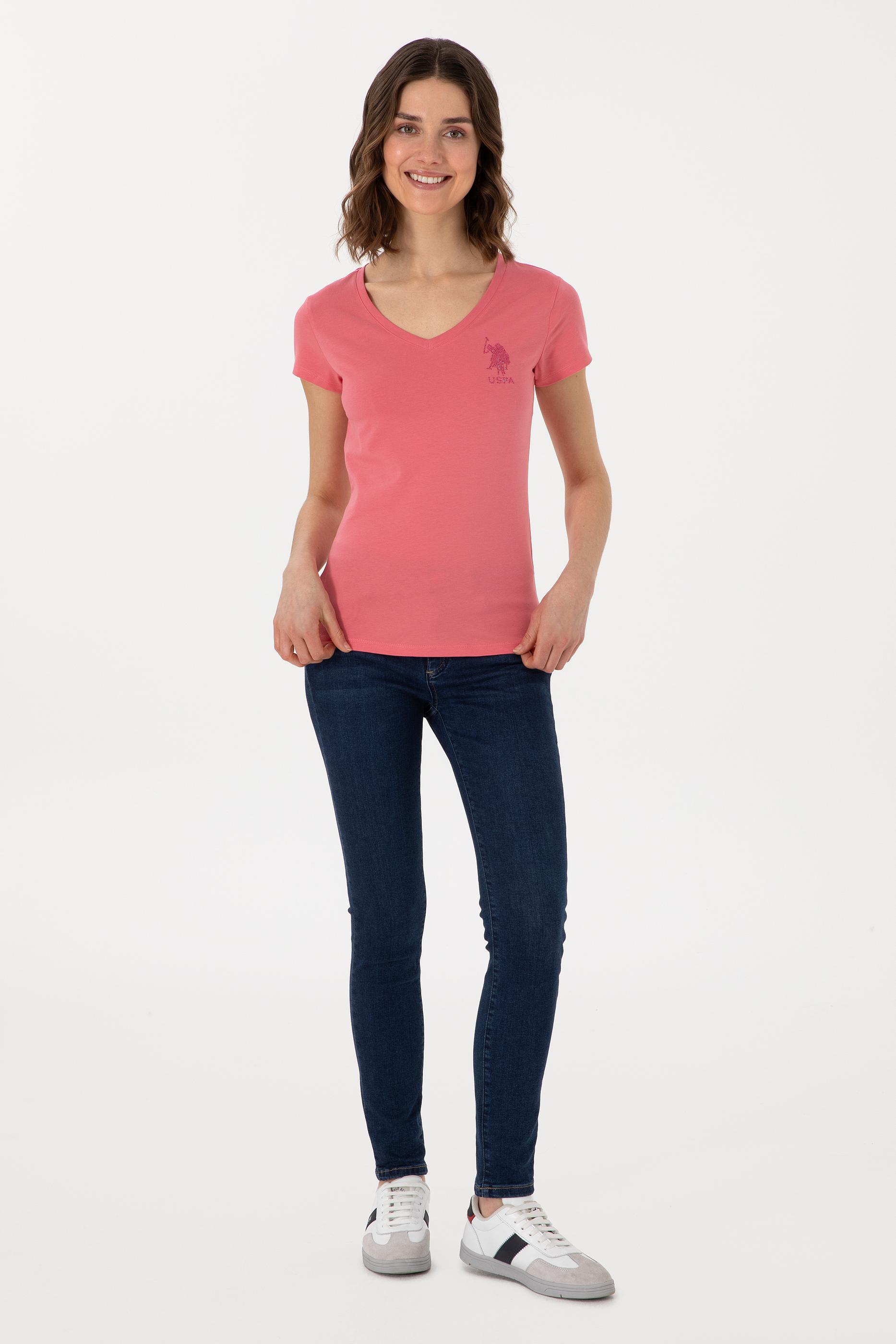 Kadın Koyu Pembe V Yaka Basic Tişört