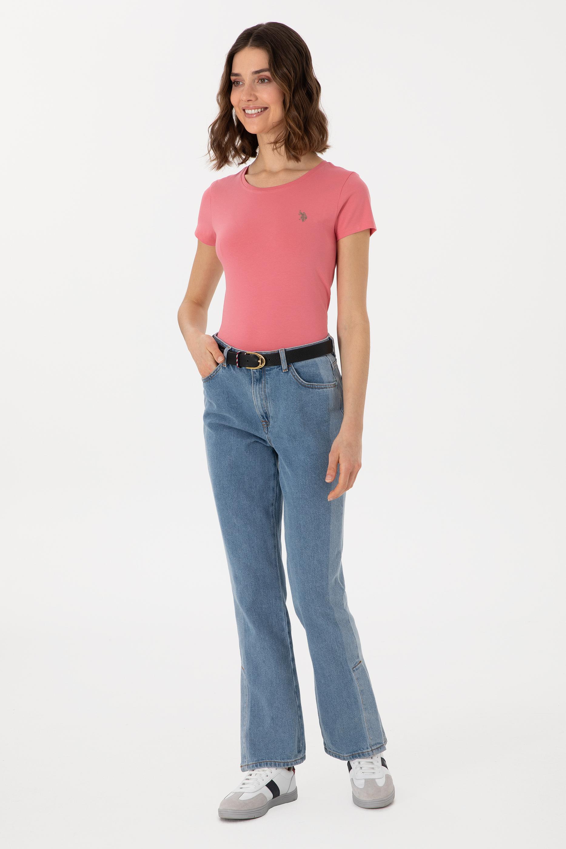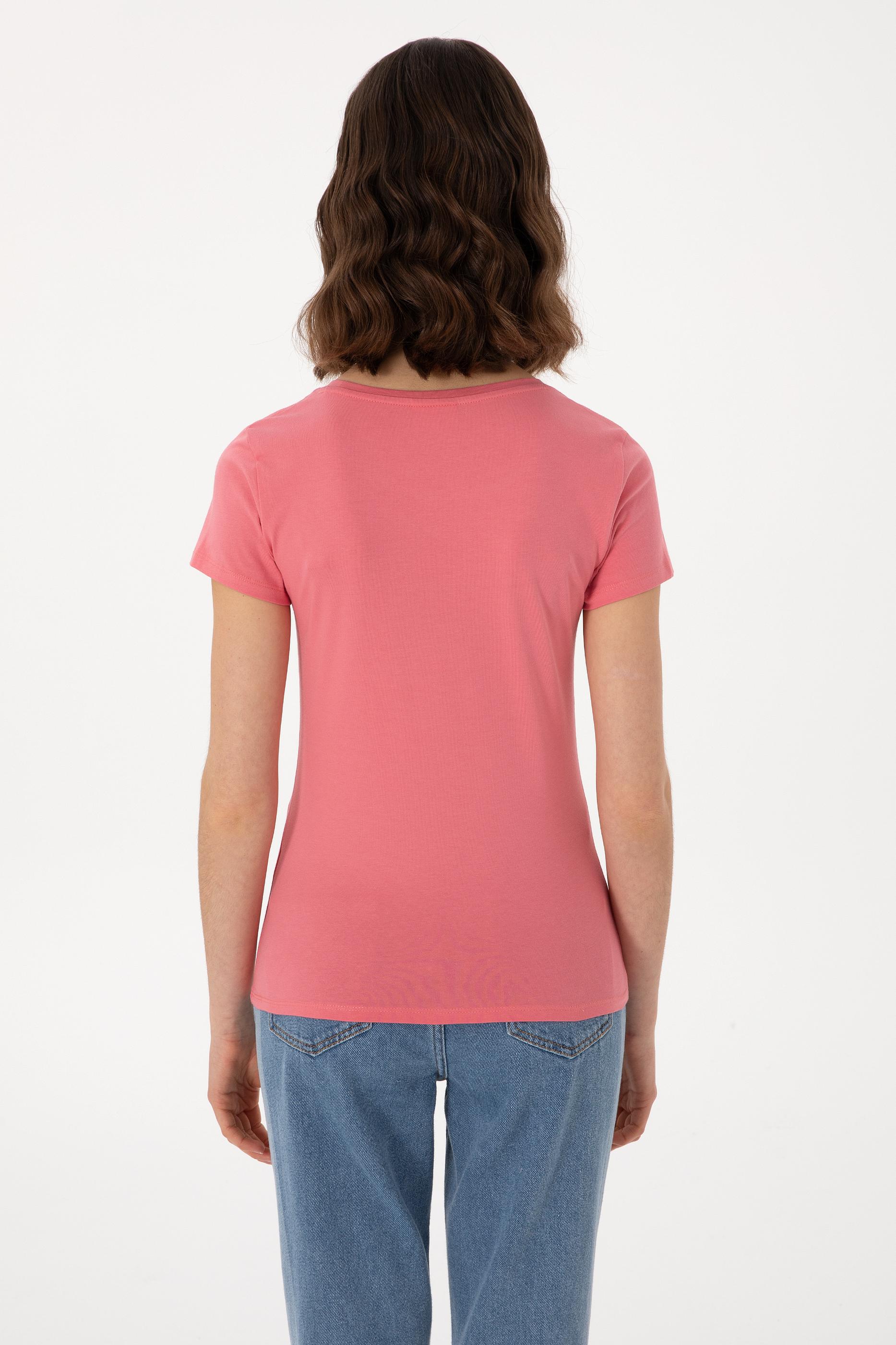 Kadın Koyu Pembe Bisiklet Yaka Tişört - 50300894064
