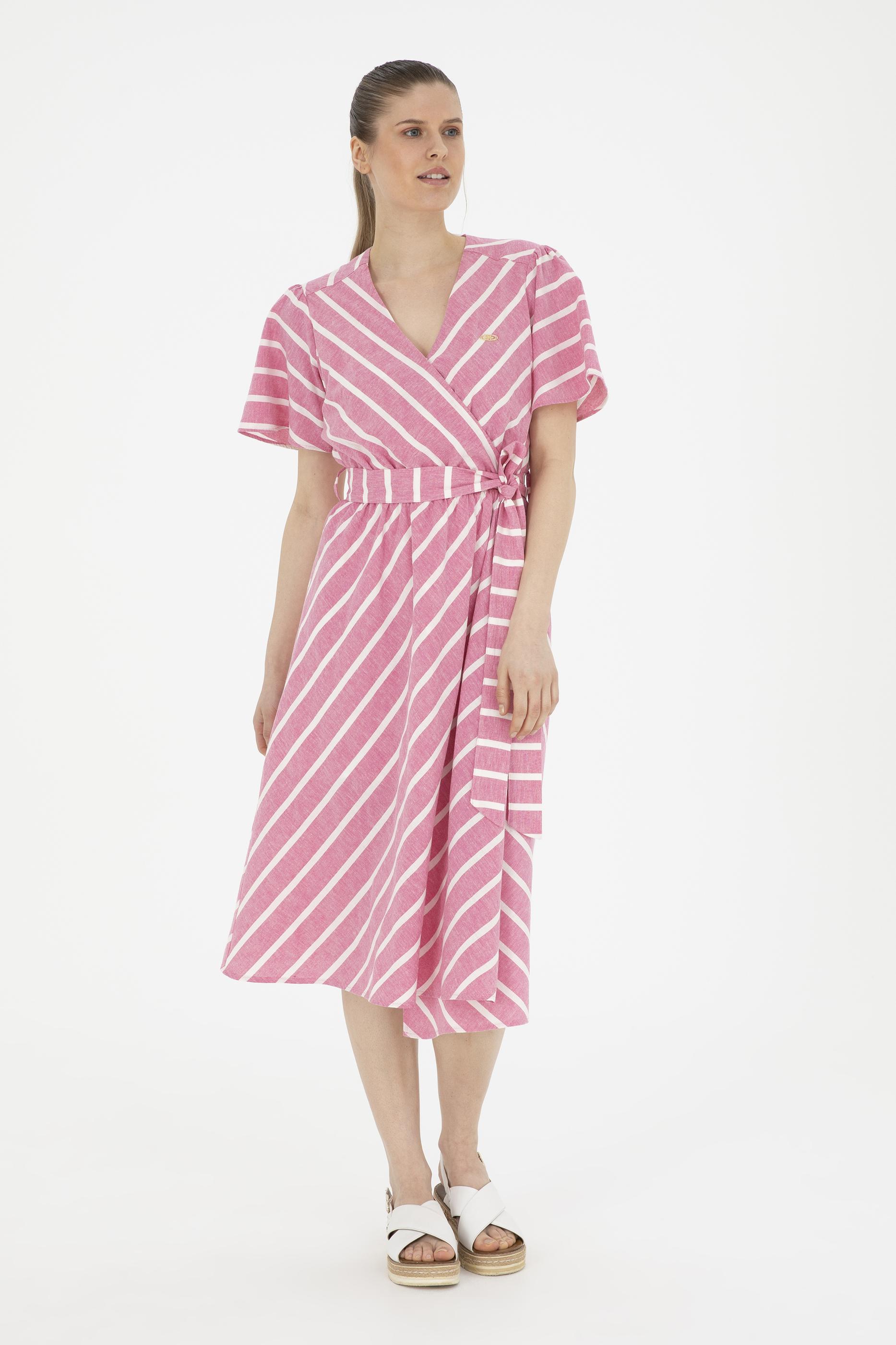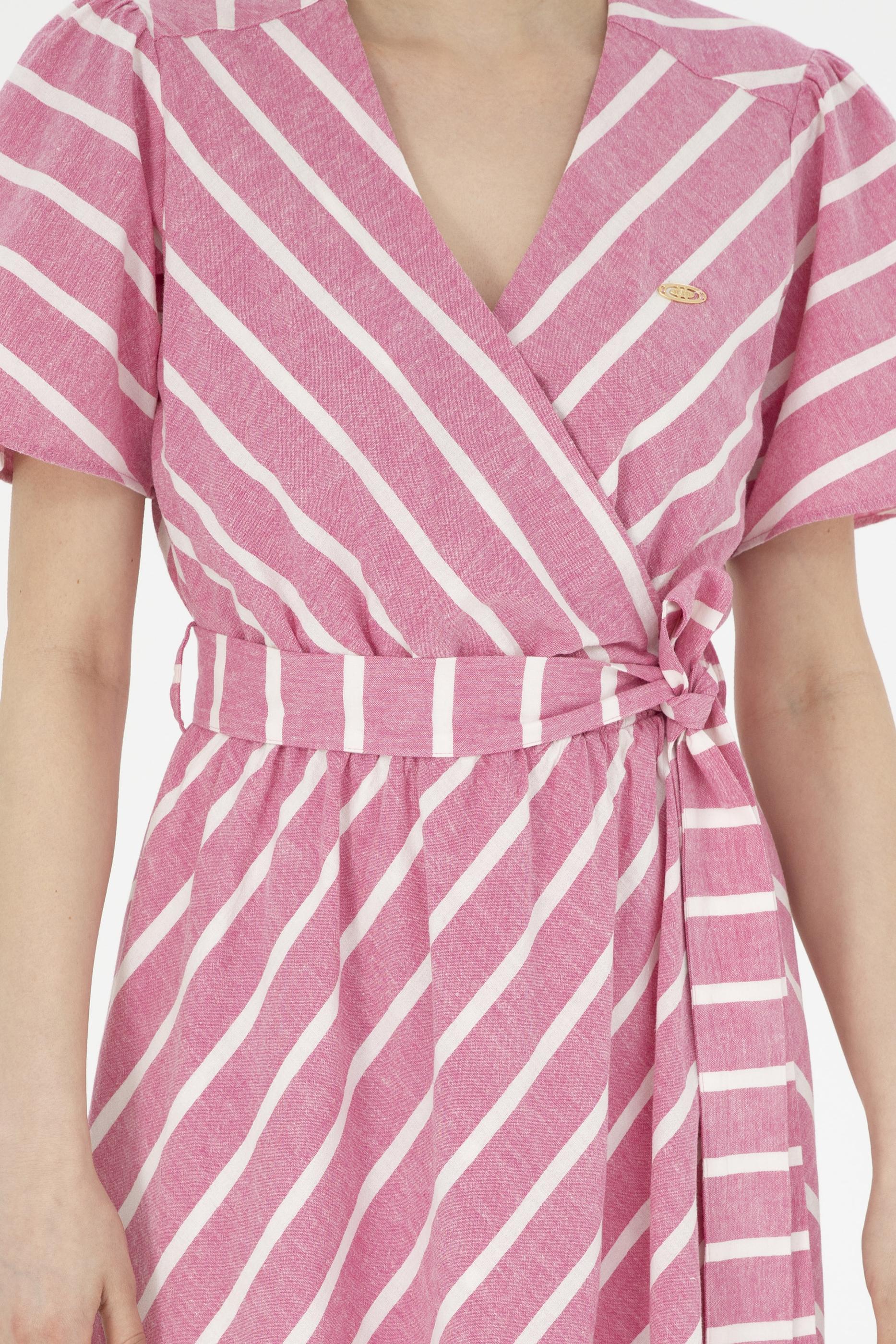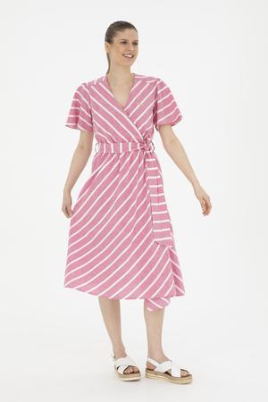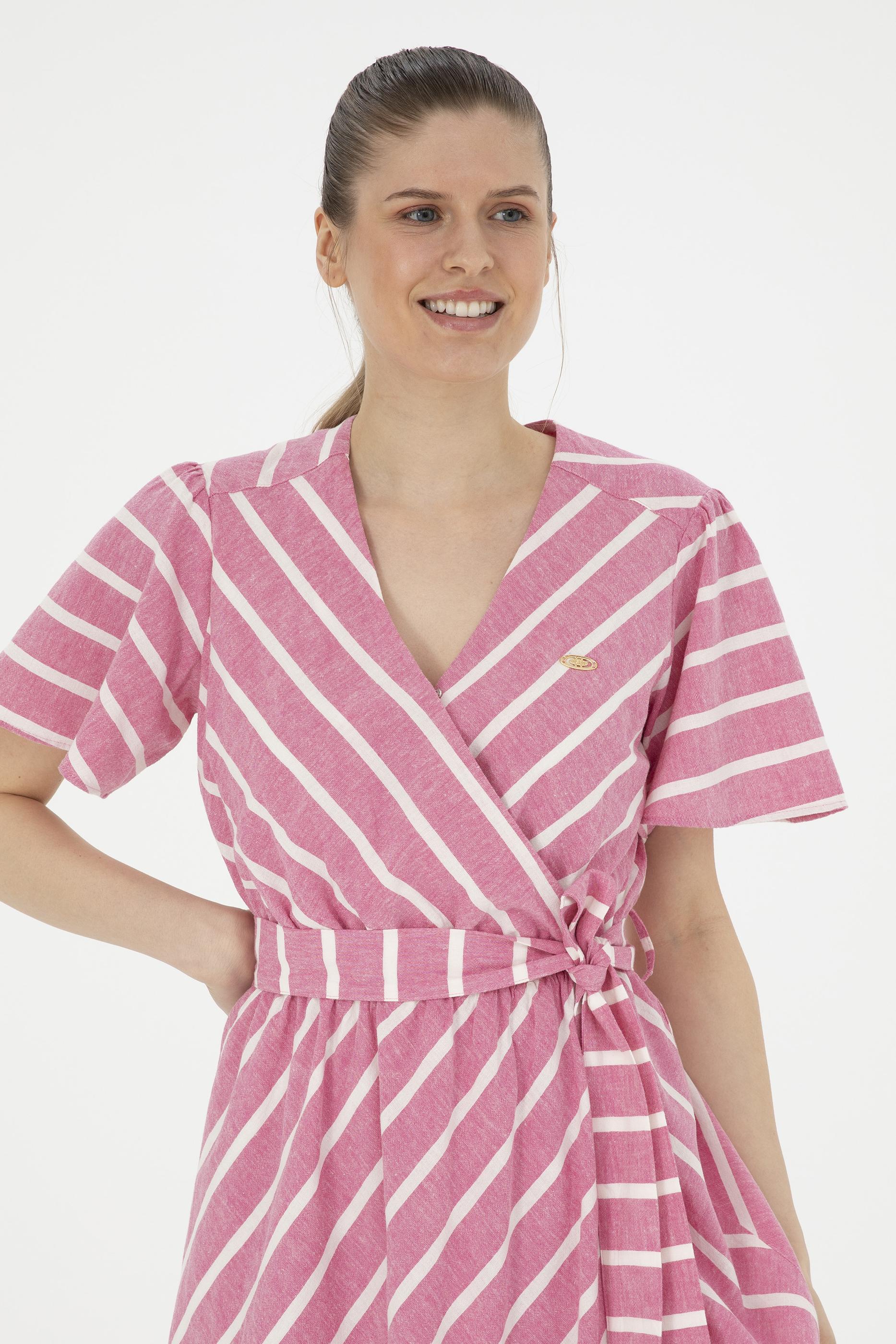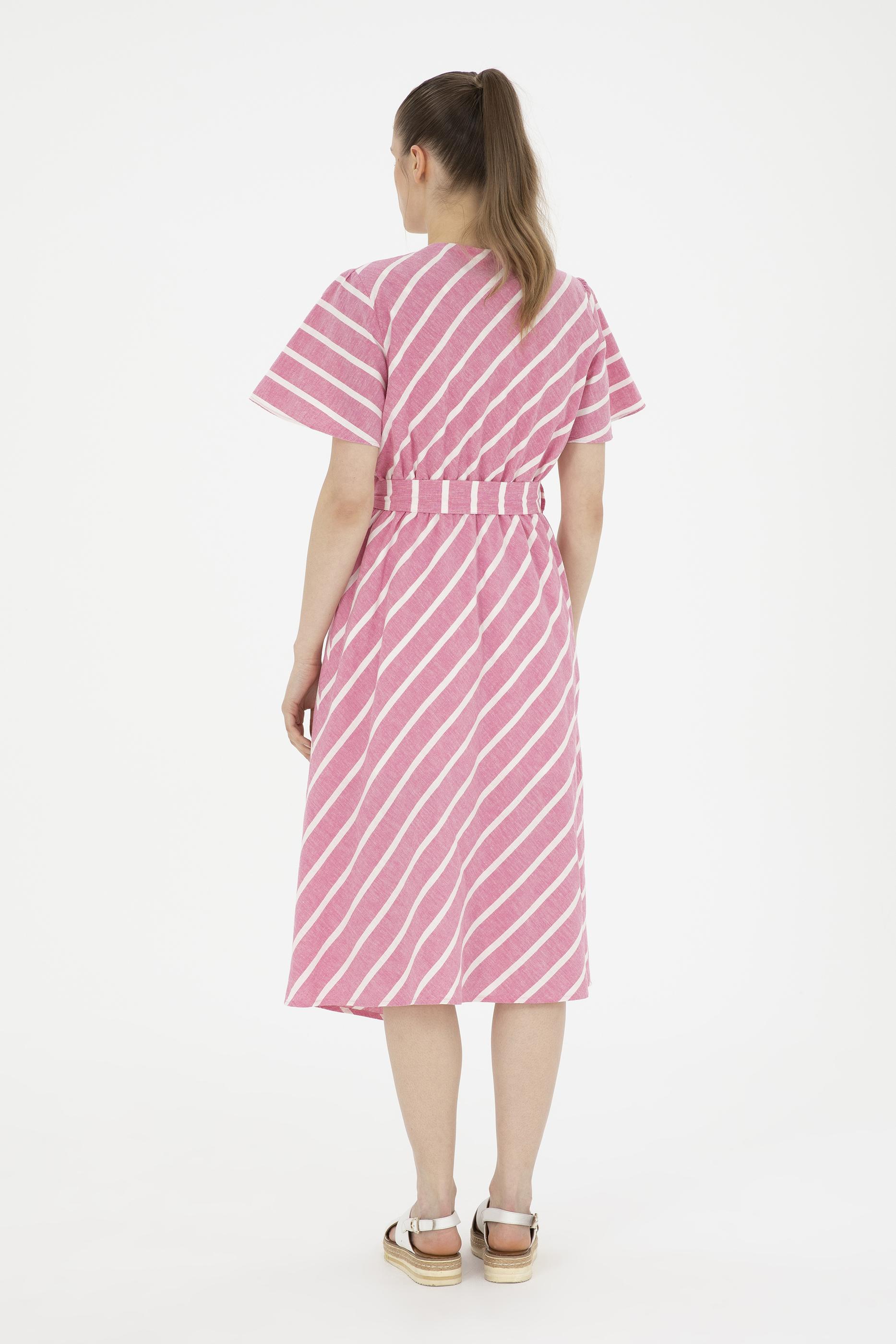 Kadın Pembe Çizgili Midi Boy Dokuma Elbise