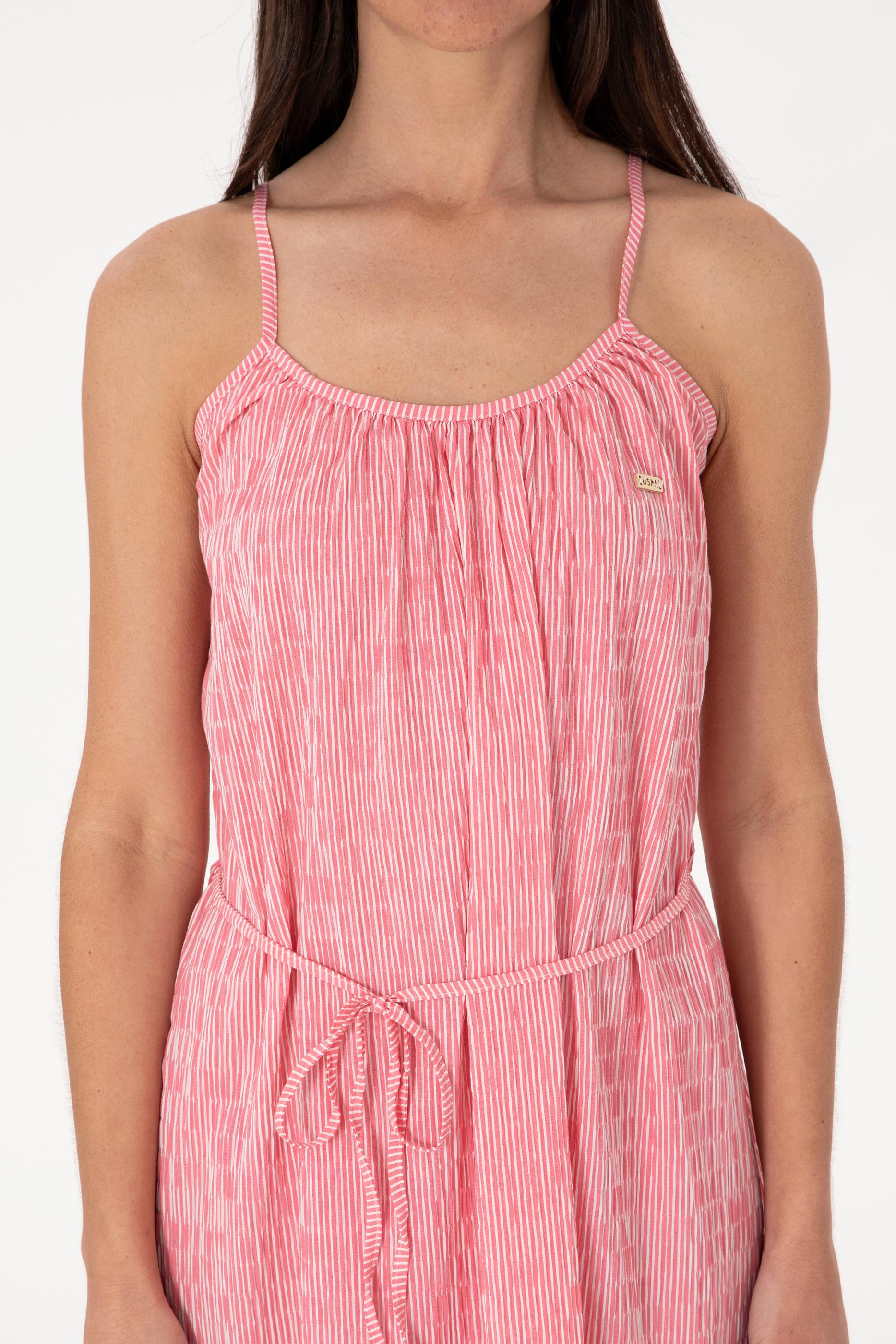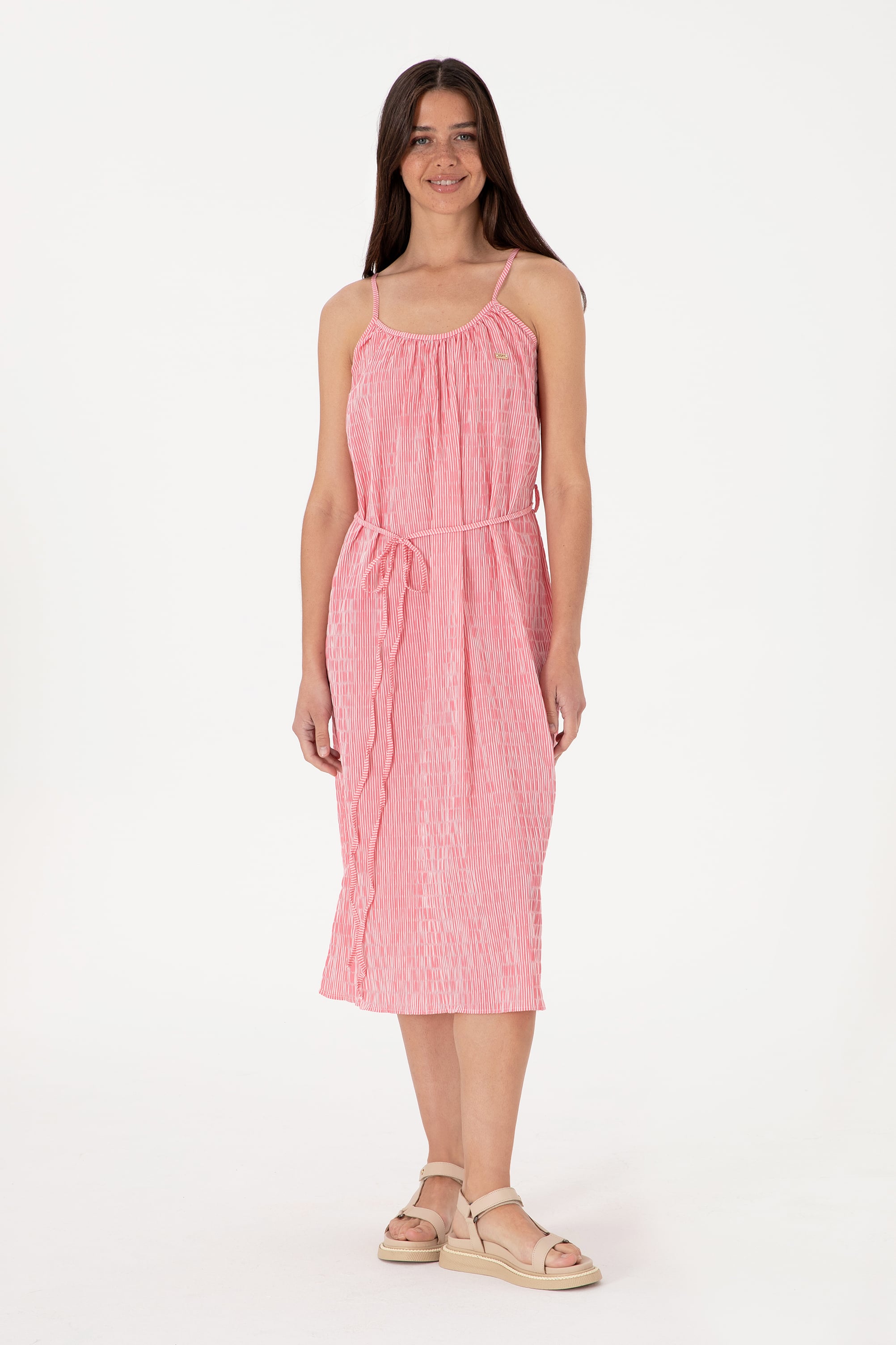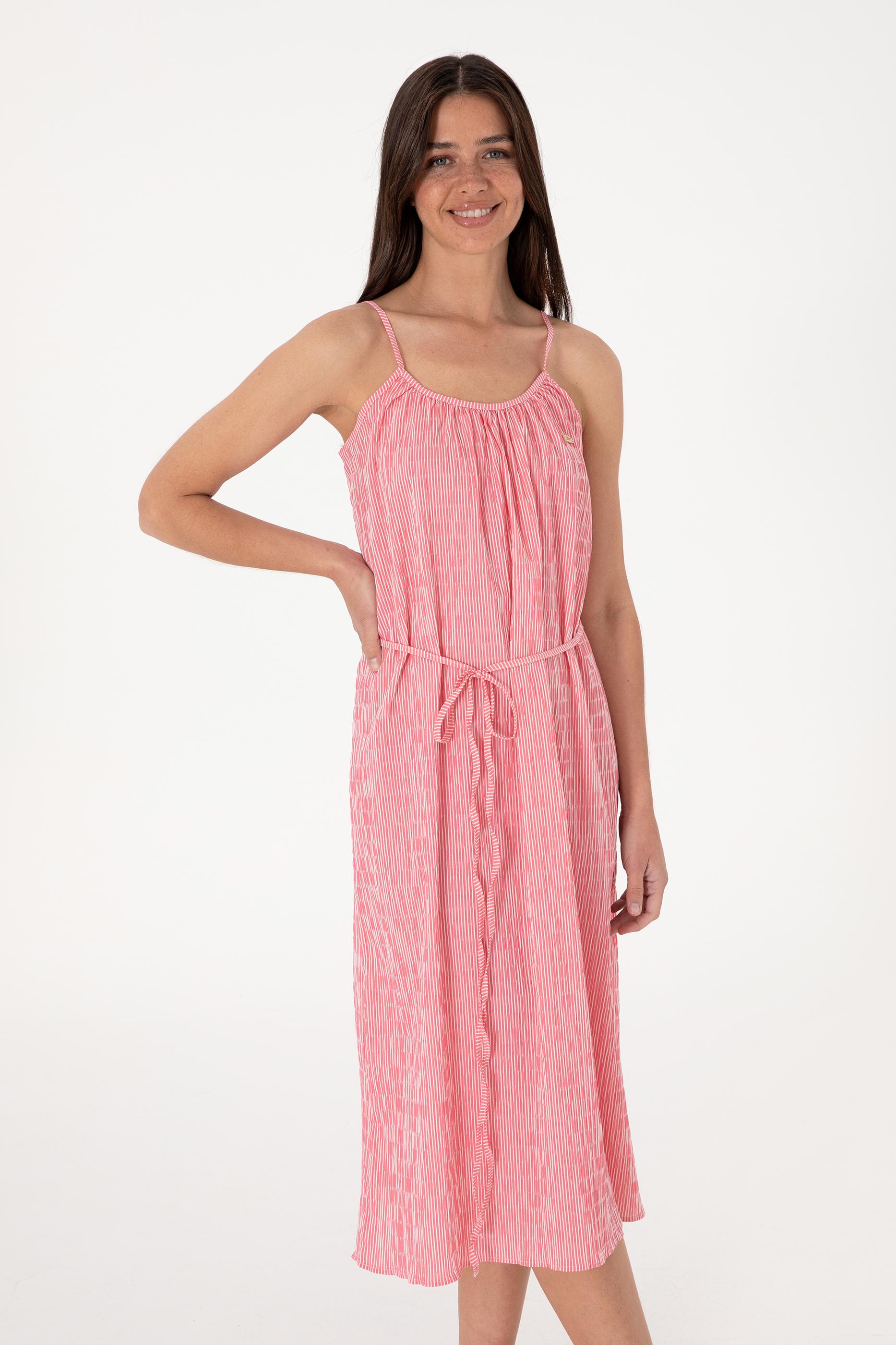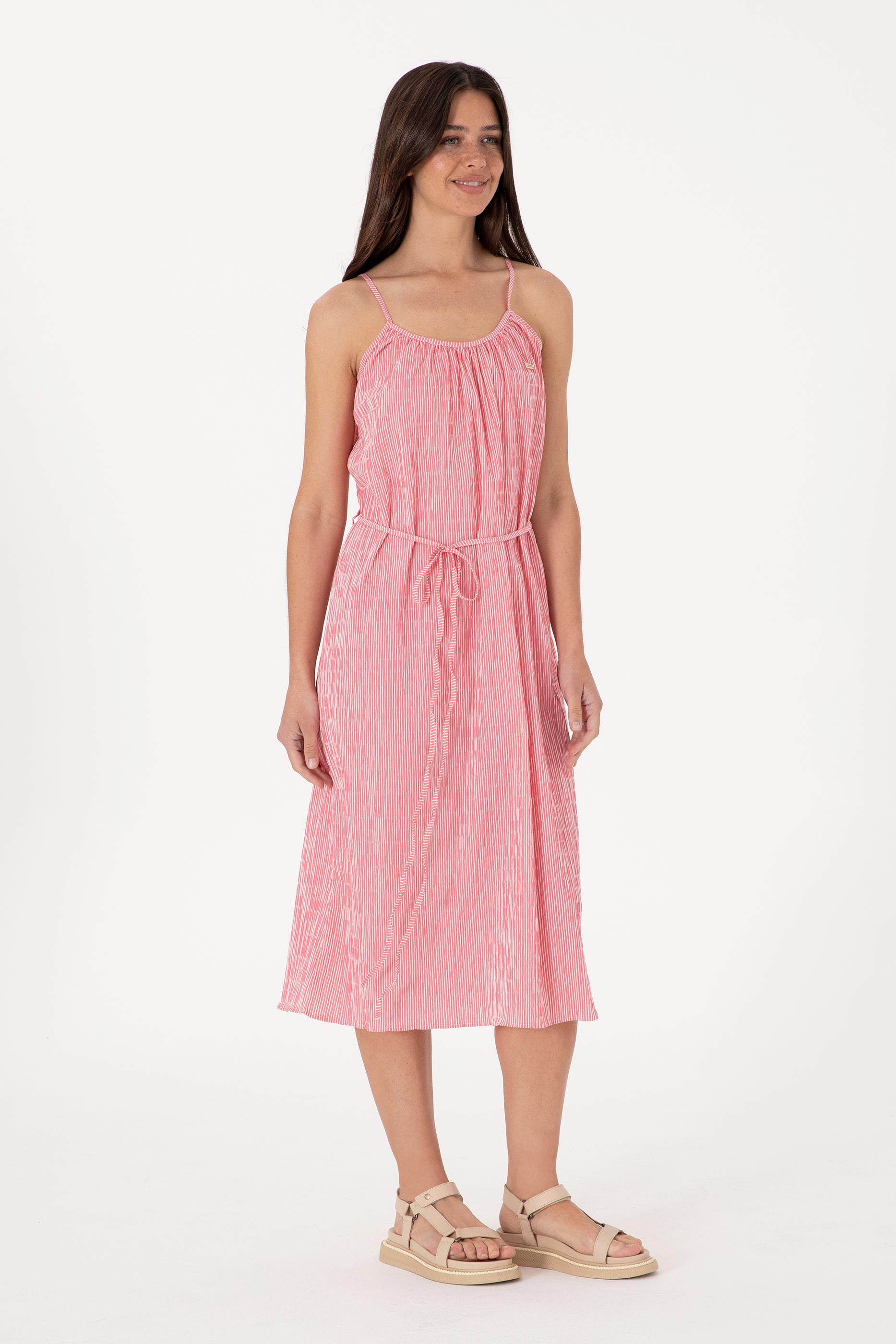 Kadın Pembe Çizgili Midi Boy Dokuma Elbise