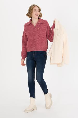 Kadın Pembe V Yaka Kazak