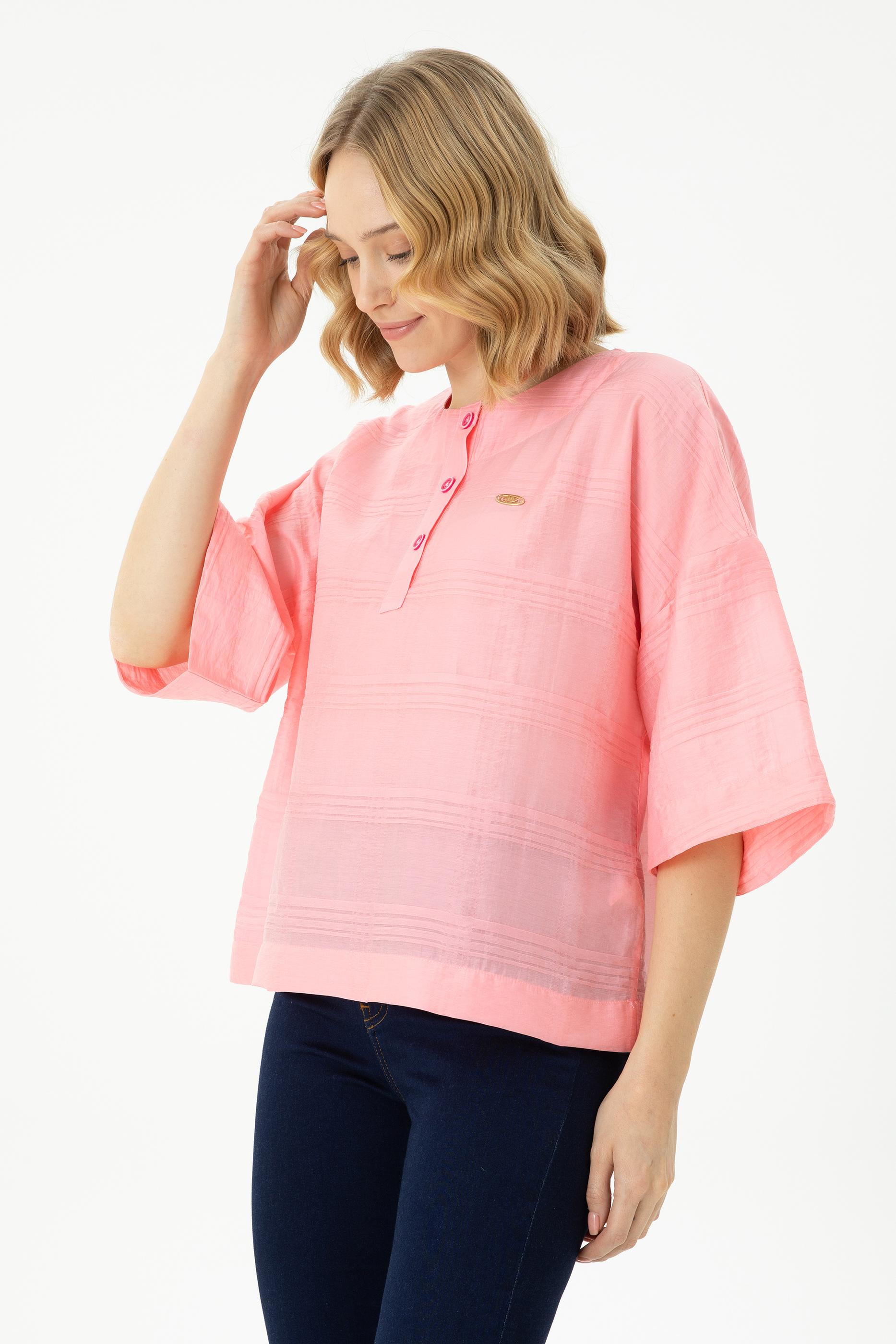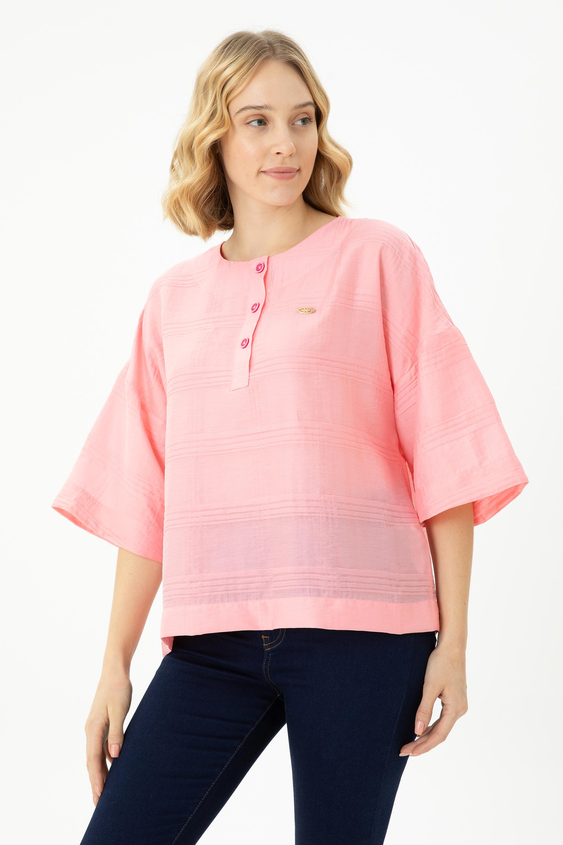 Kadın Pembe Kısa Kollu Gömlek