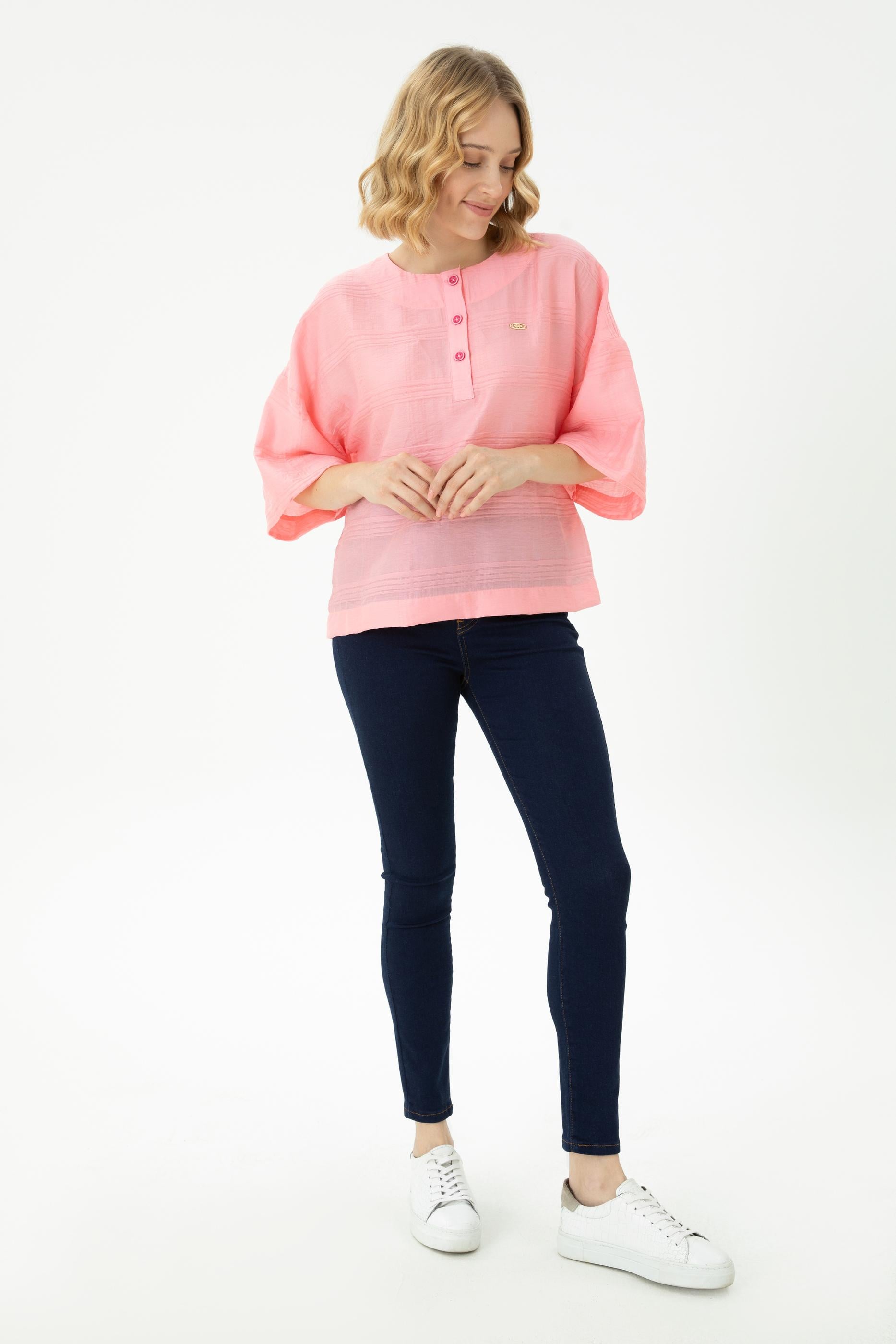 - Kadın Pembe Kısa Kollu Gömlek