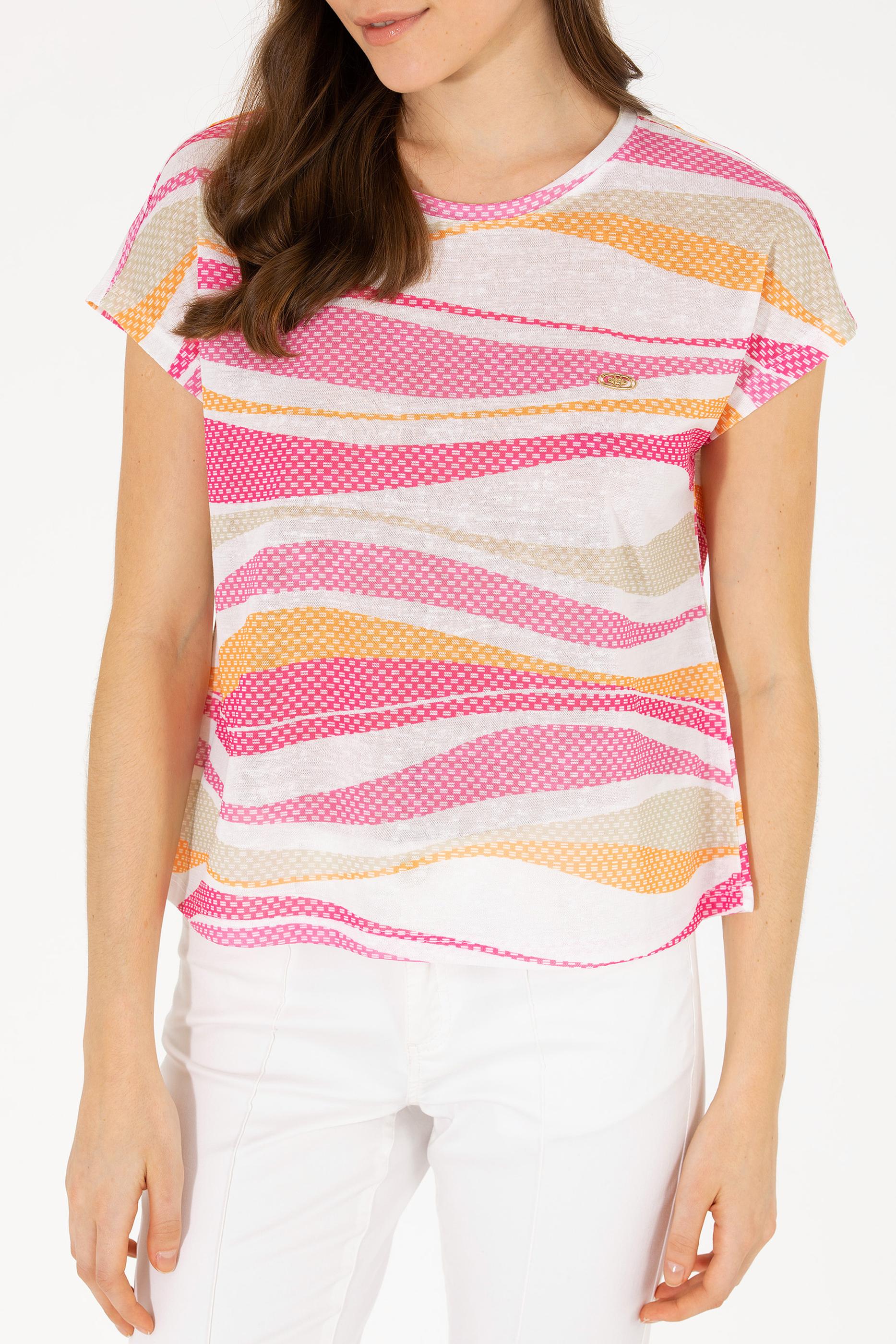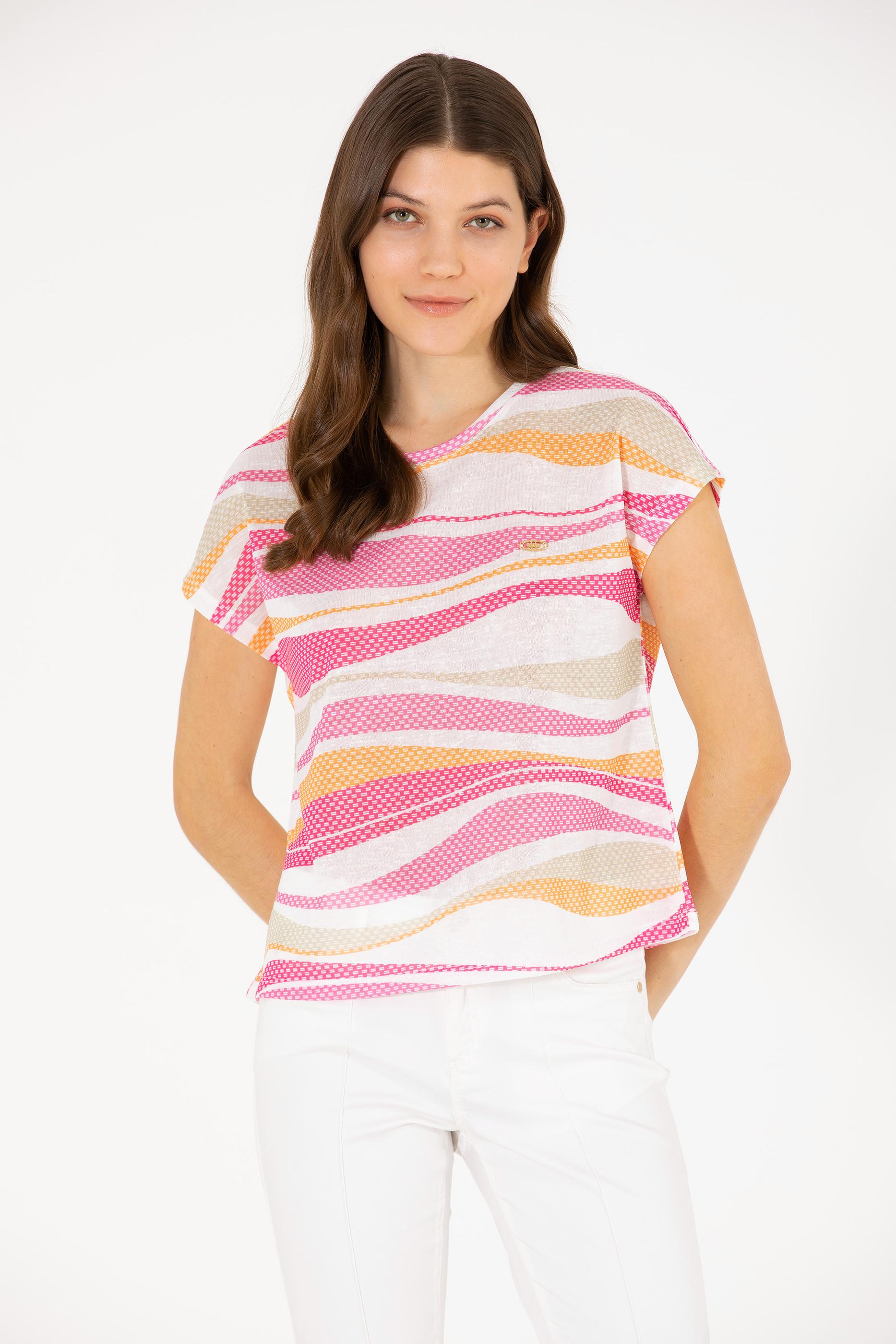 Kadın Pembe Bisiklet Yaka Tişört - 50263601028