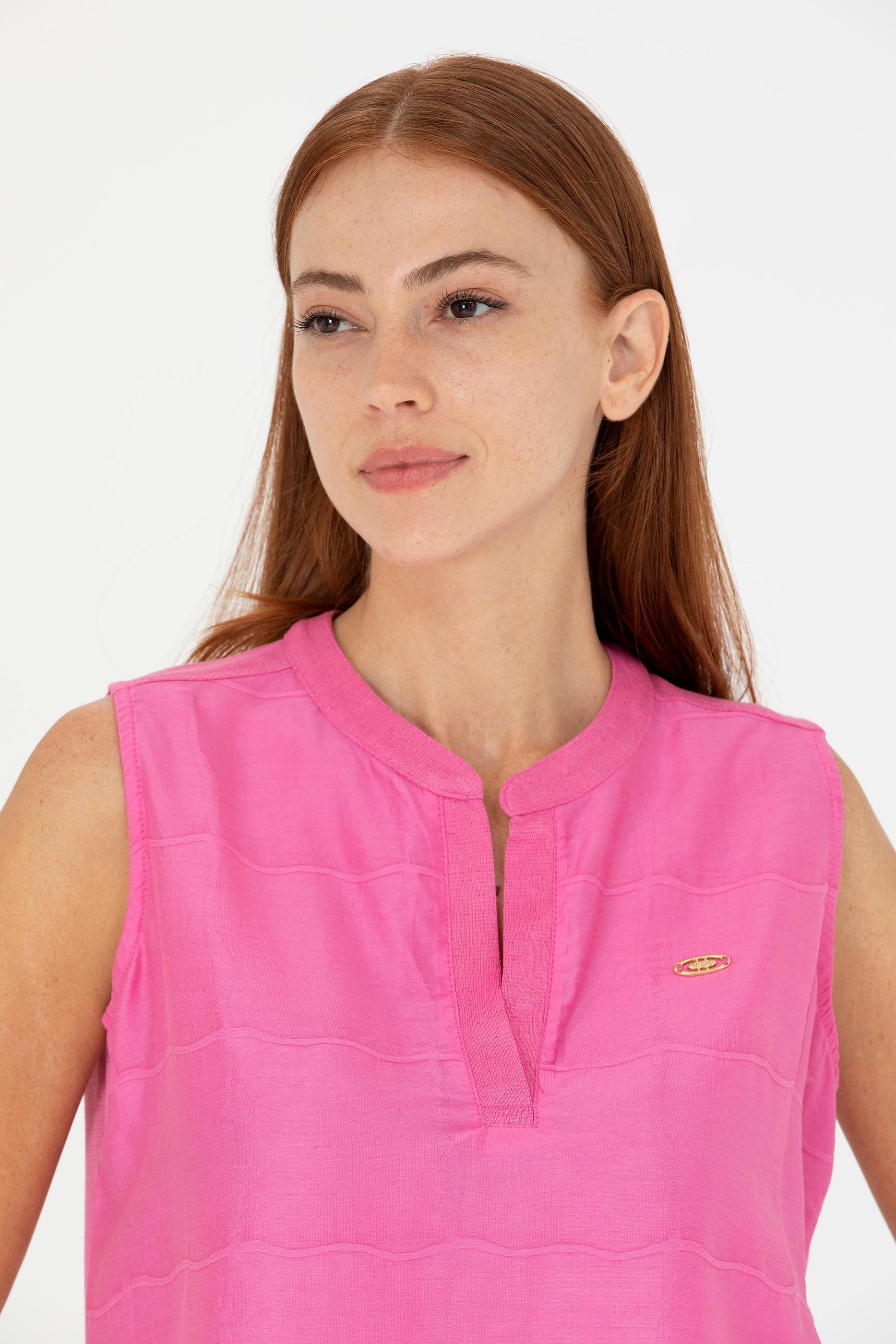 Kadın Pembe V Yaka Tişört