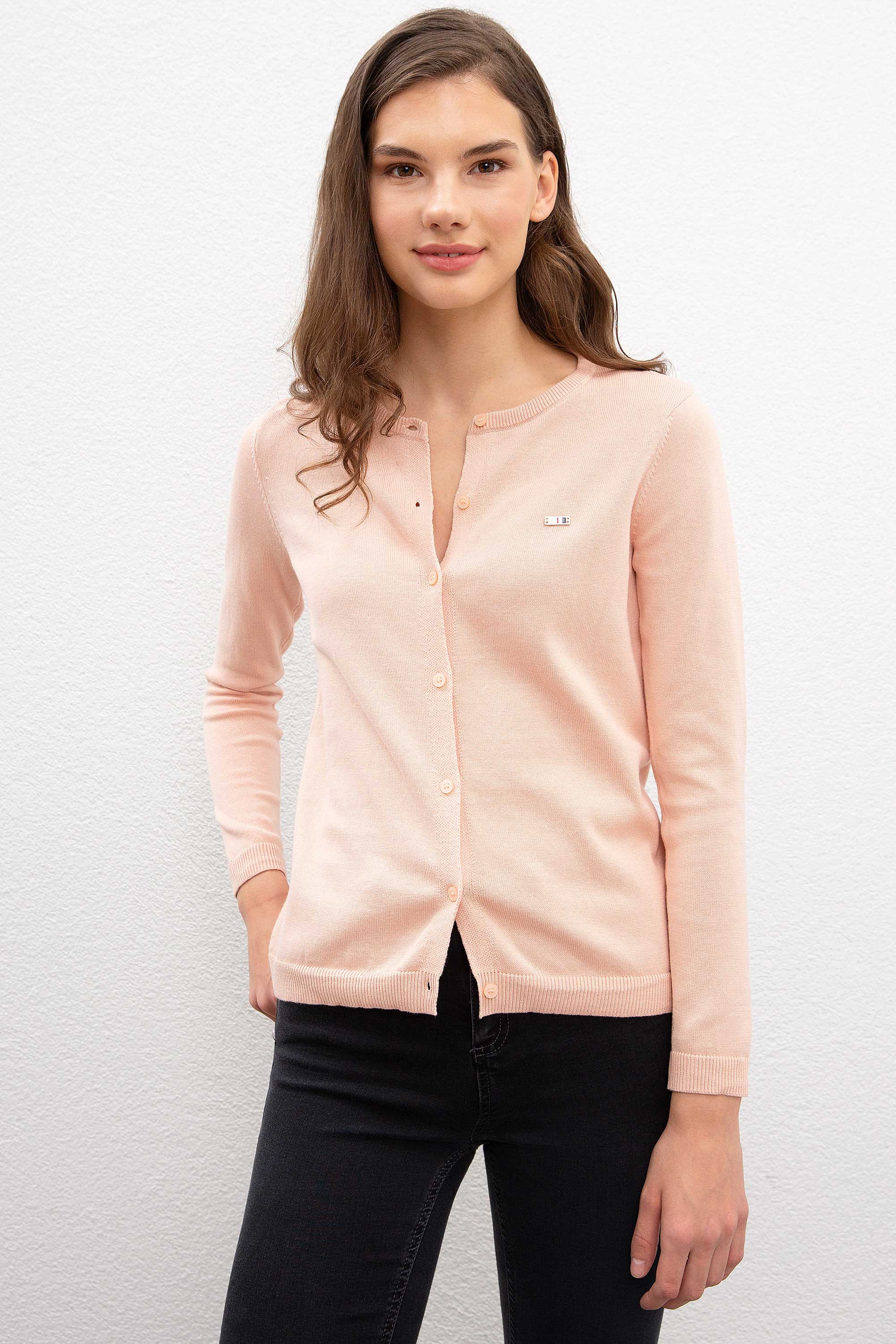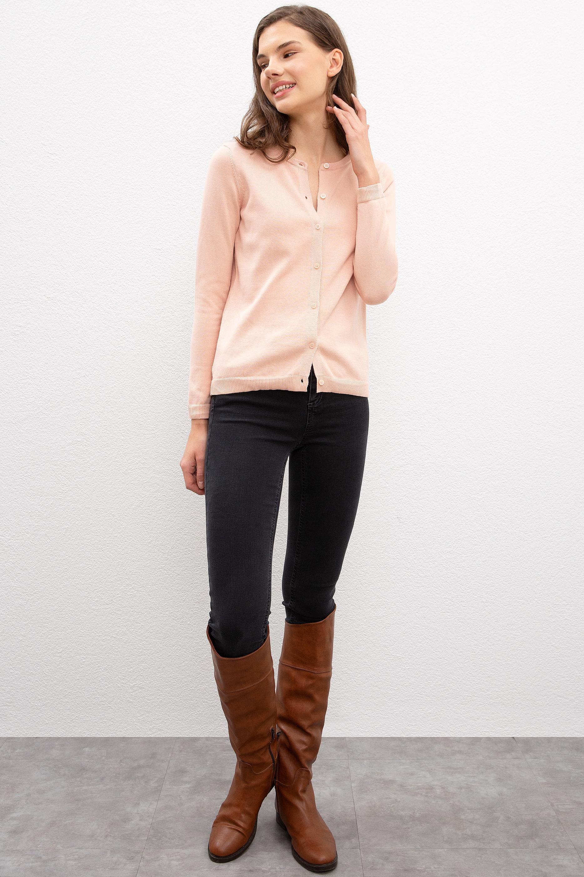 Kadın Pembe Triko Hırka Basic