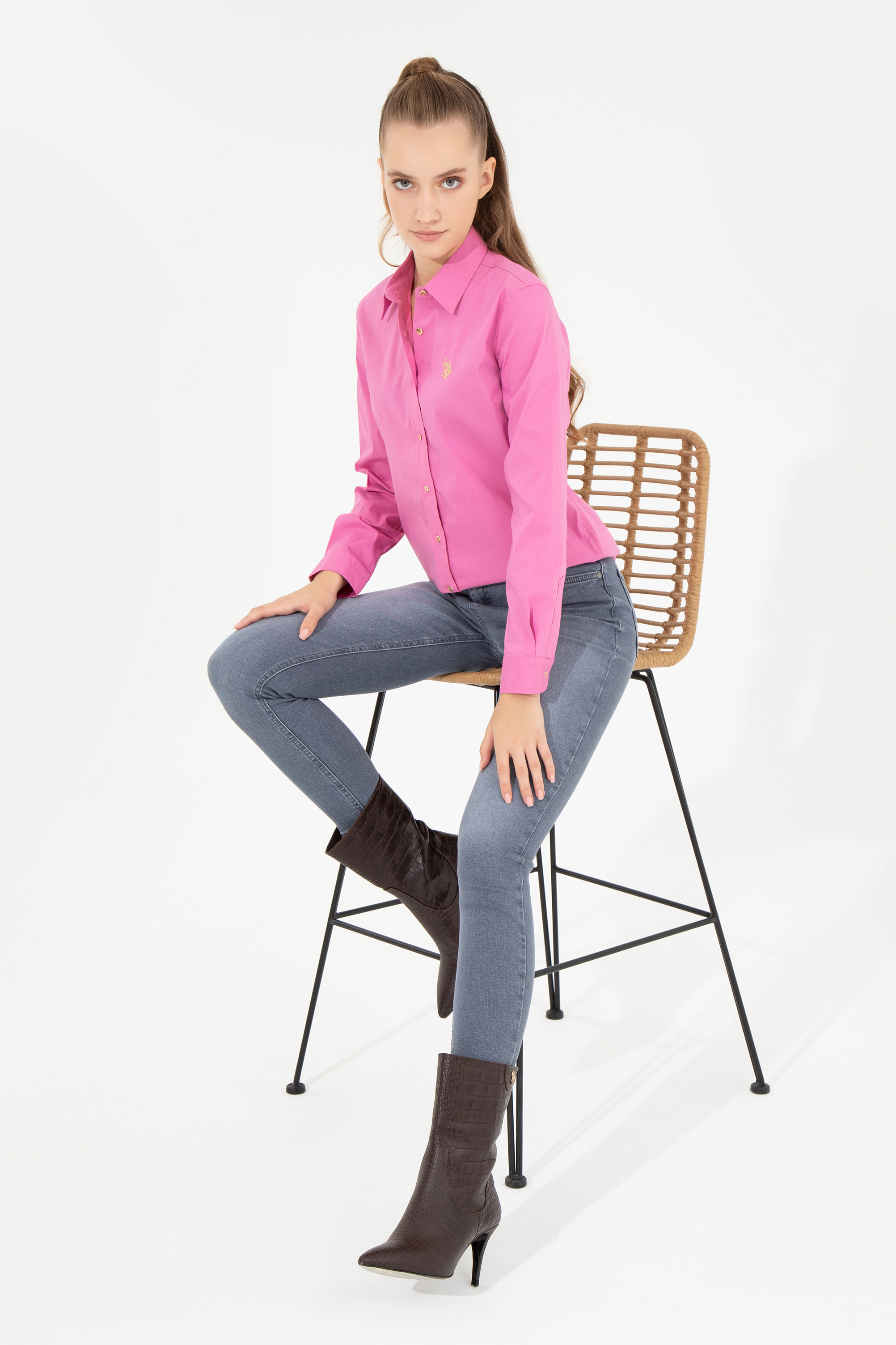 Kadın Pembe Uzun Kollu Basic Gömlek