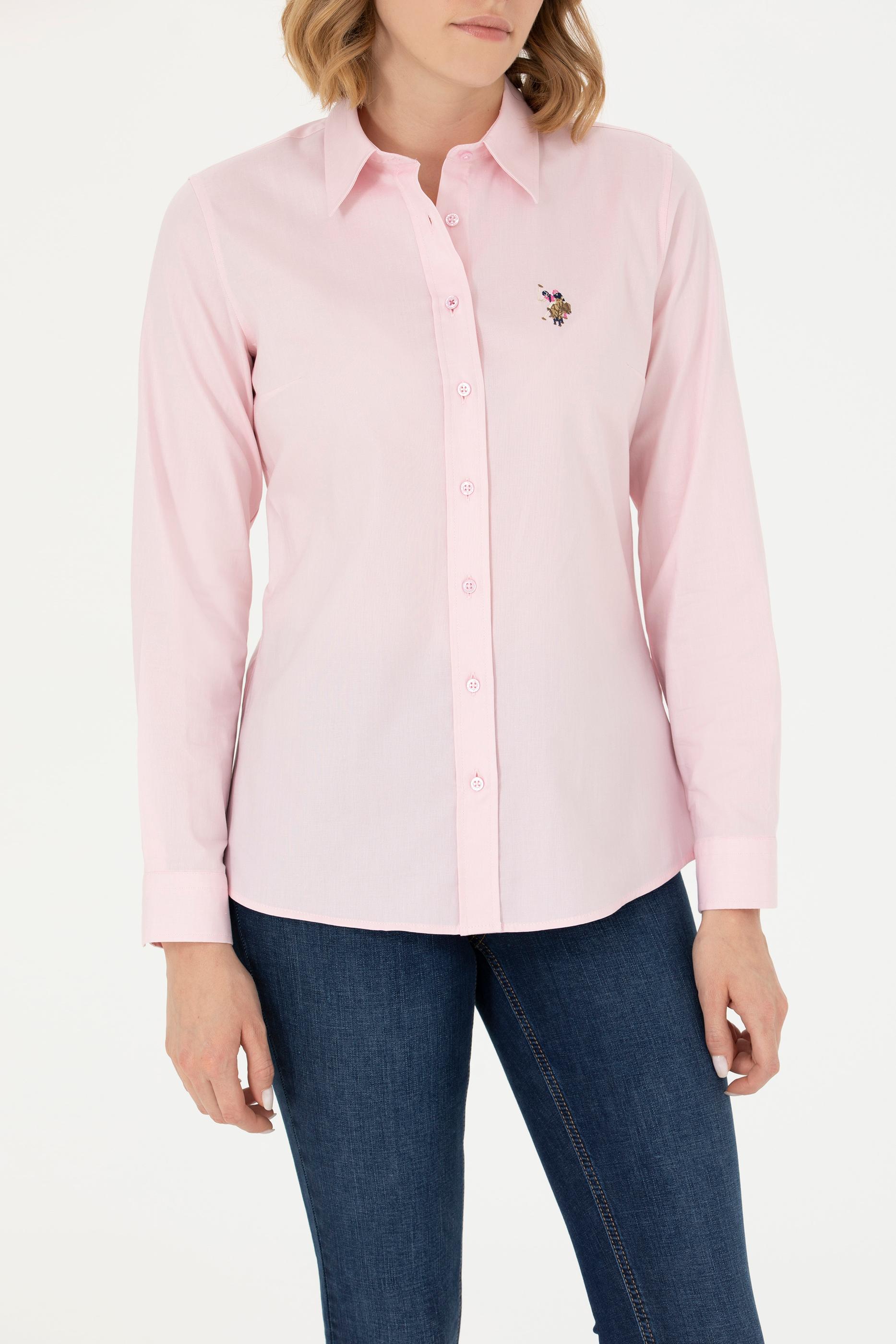 Kadın Pembe Uzun Kollu Basic Gömlek