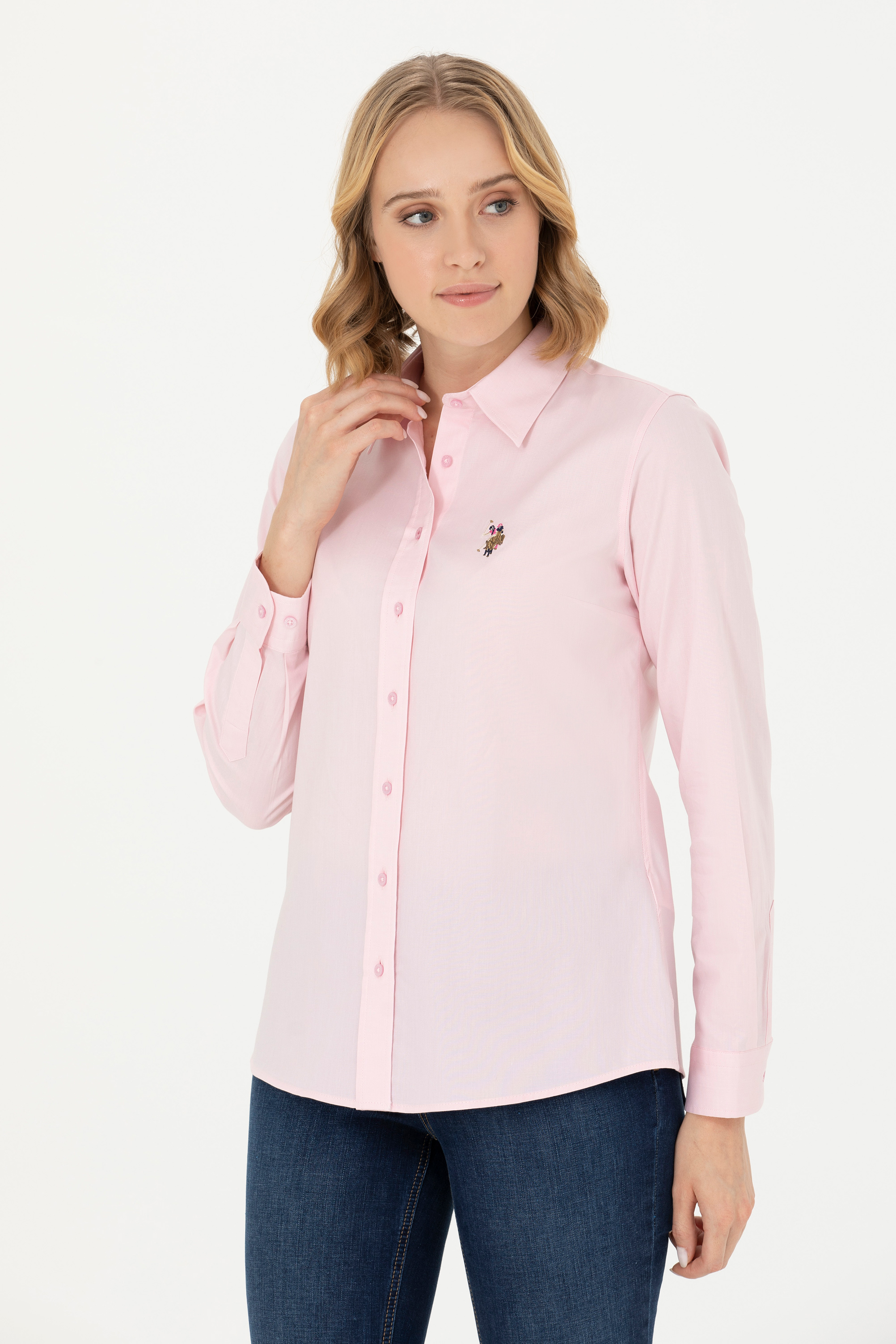 - Kadın Pembe Uzun Kollu Basic Gömlek