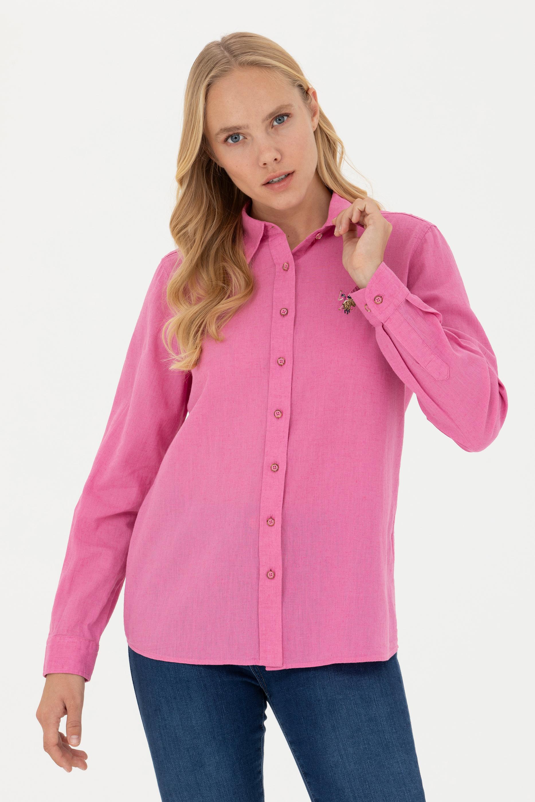 - Kadın Pembe Uzun Kollu Basic Gömlek
