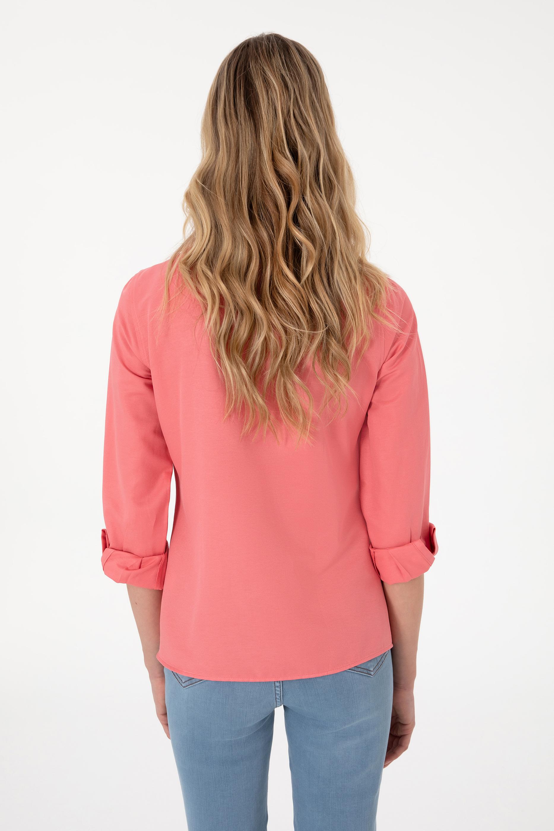 Kadın Pembe Uzun Kollu Basic Gömlek