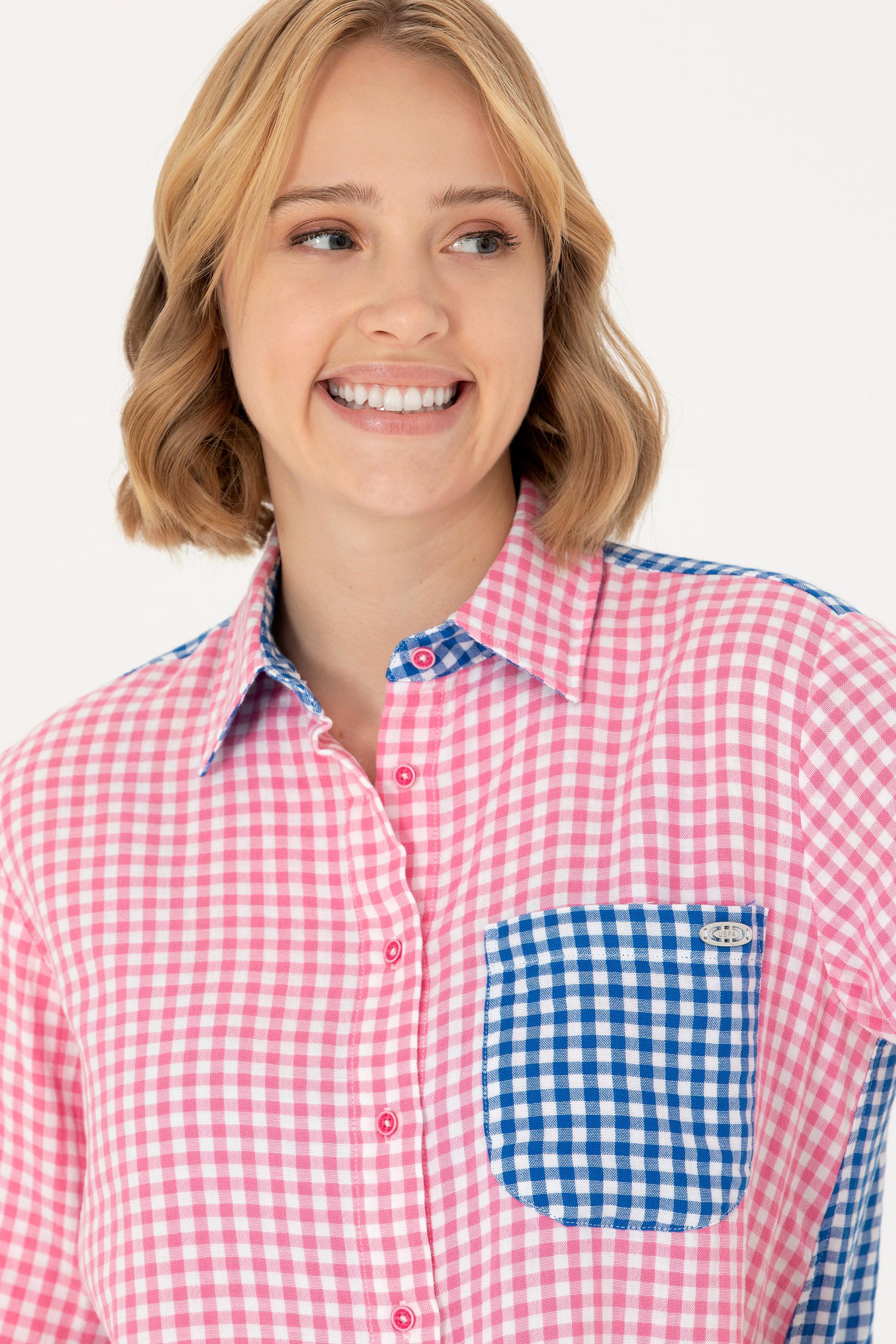 - Kadın Pembe Uzun Kollu Tunik Gömlek
