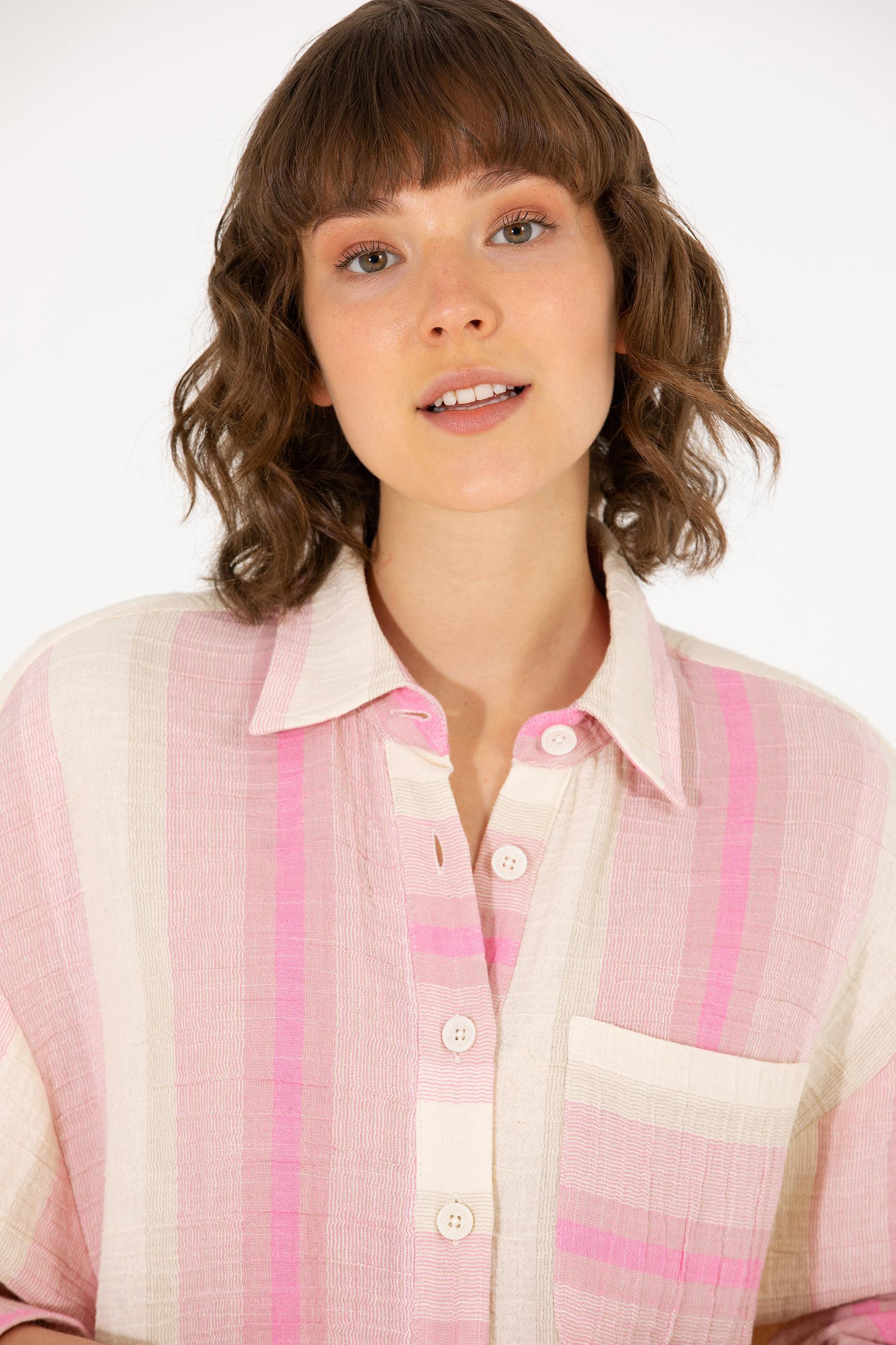 Kadın Pembe Uzun Kollu Gömlek