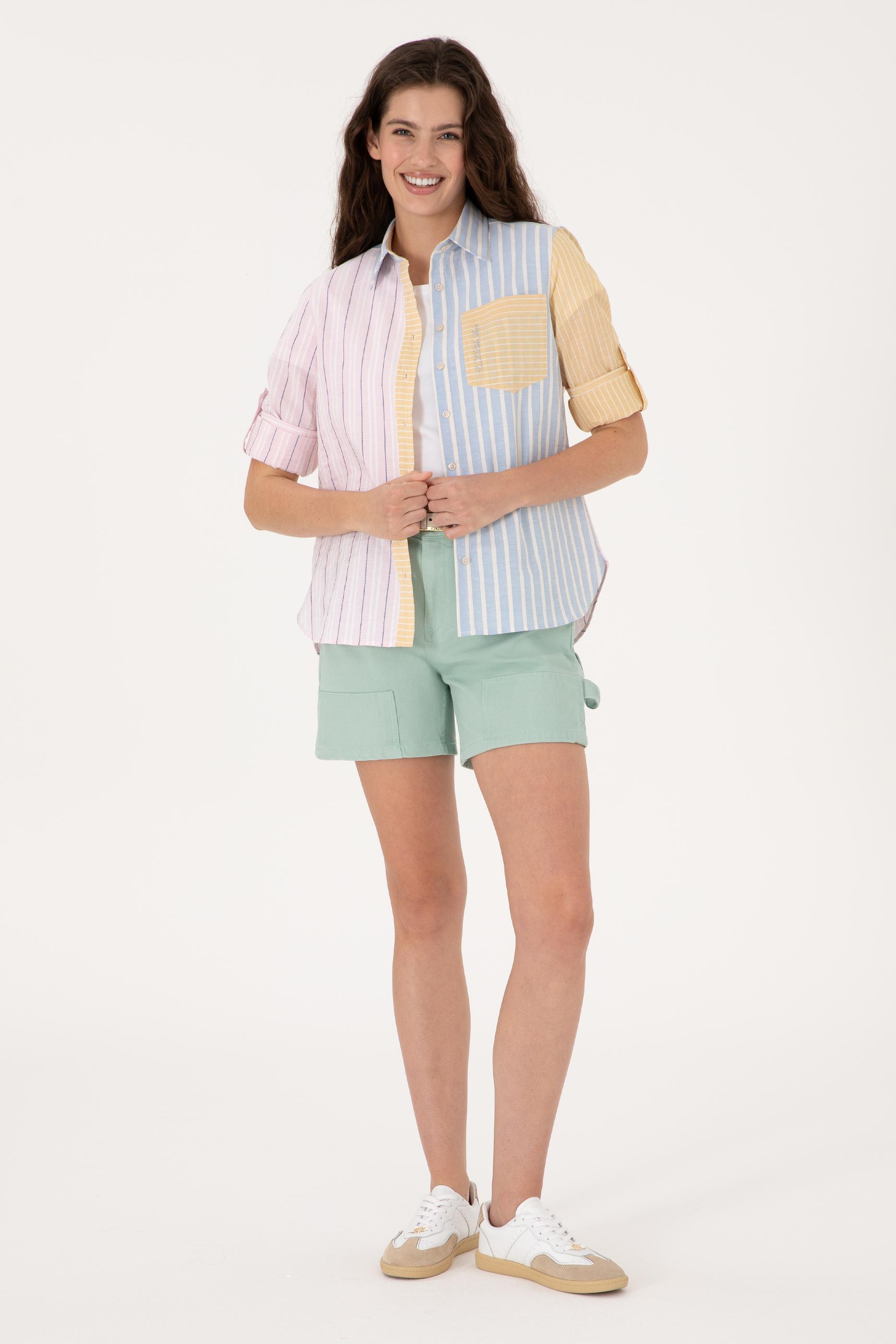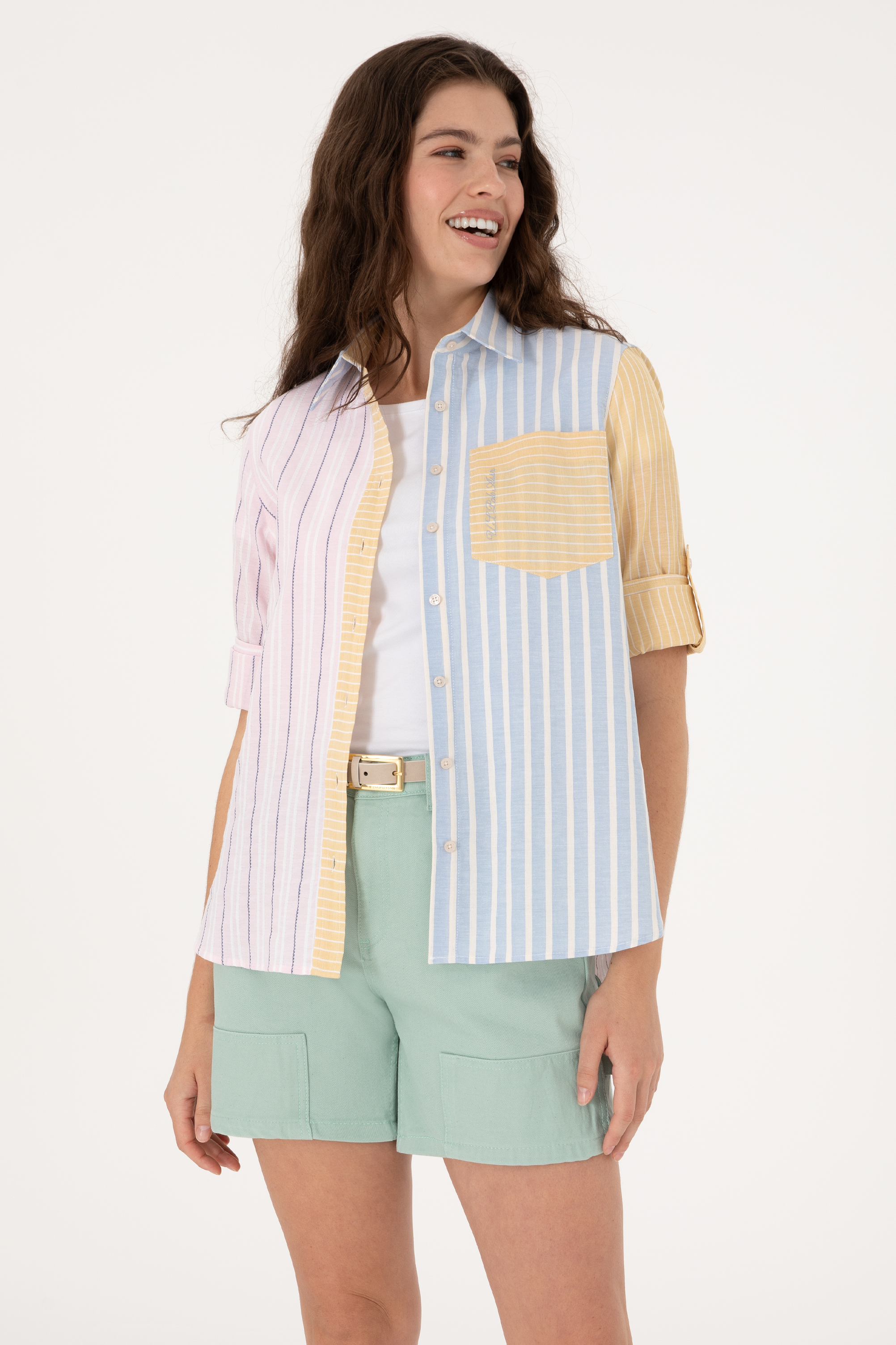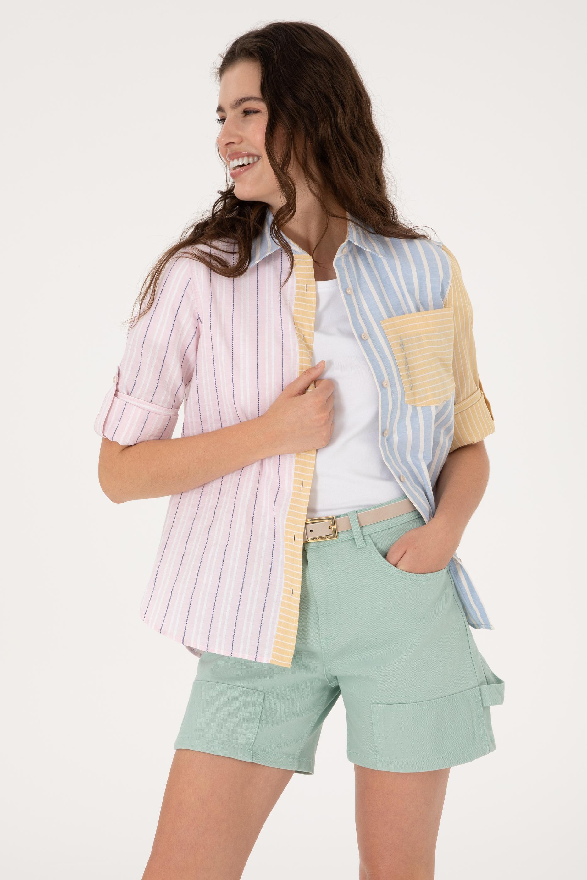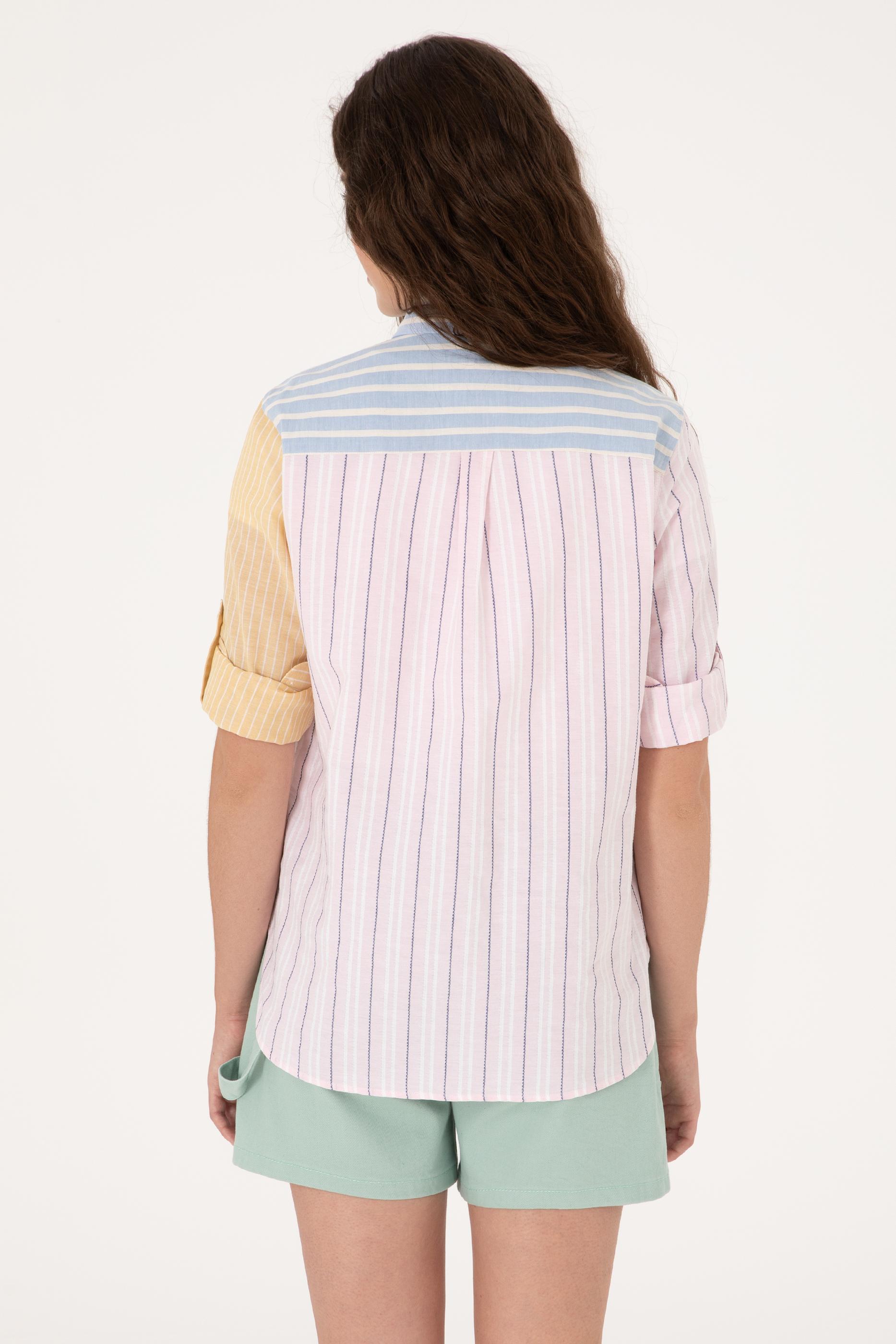 Kadın Pembe Çizgili Uzun Kollu Gömlek