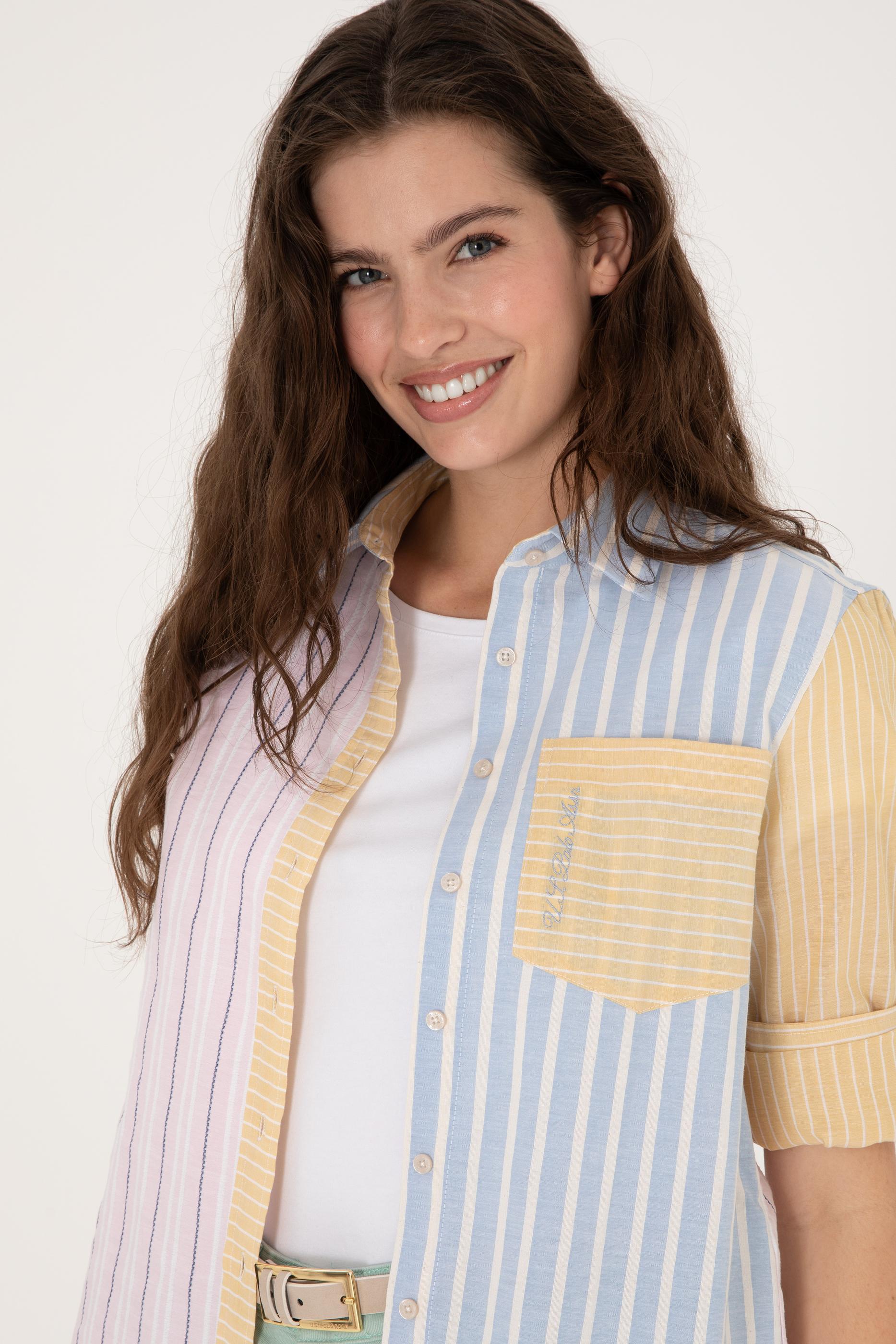 - Kadın Pembe Çizgili Uzun Kollu Gömlek