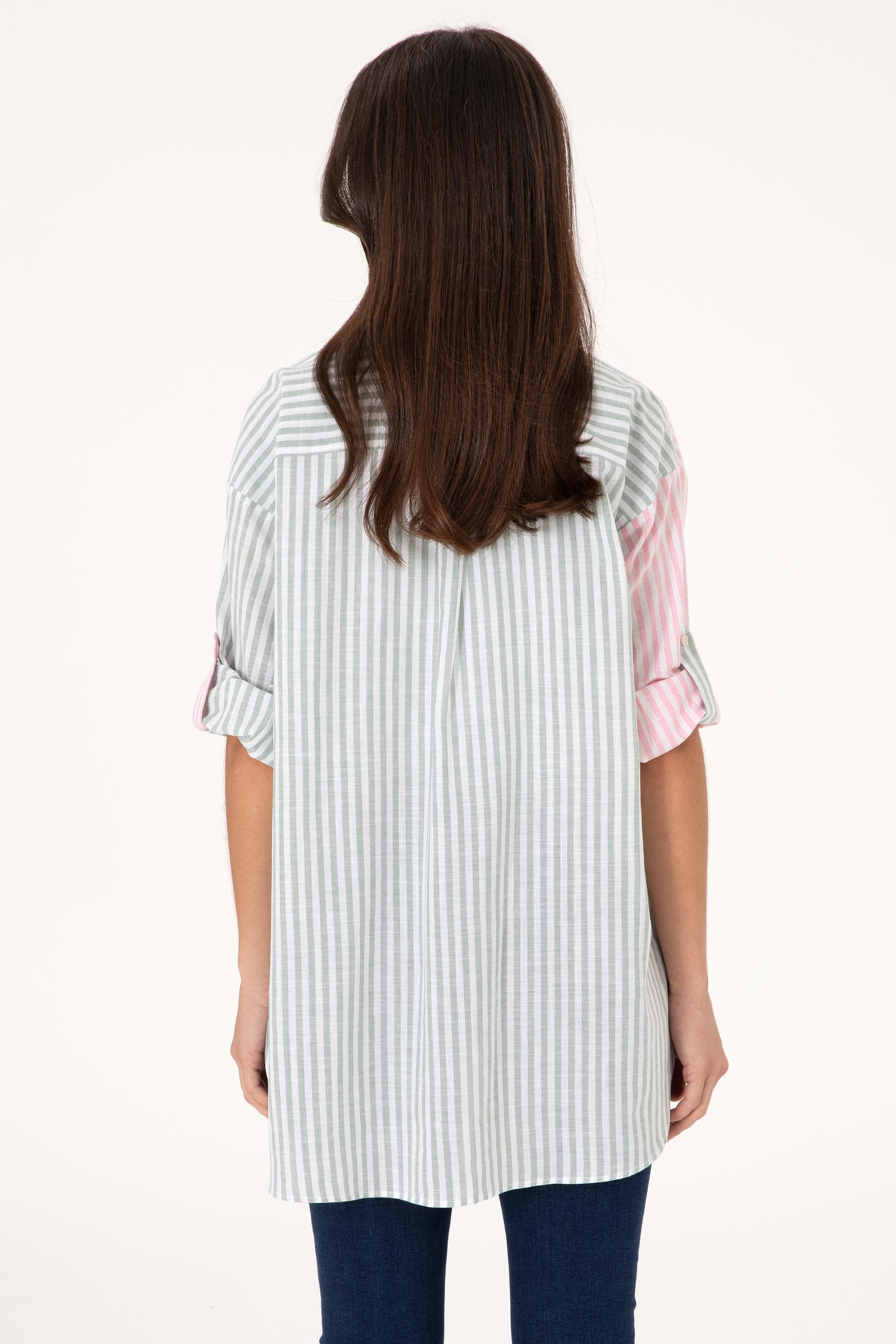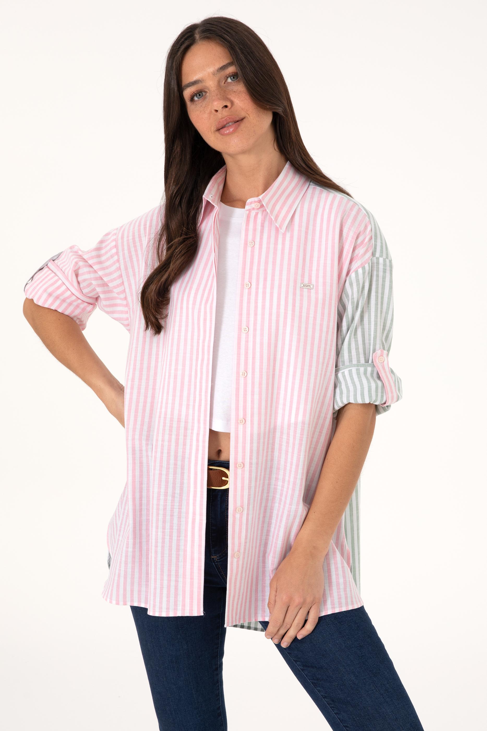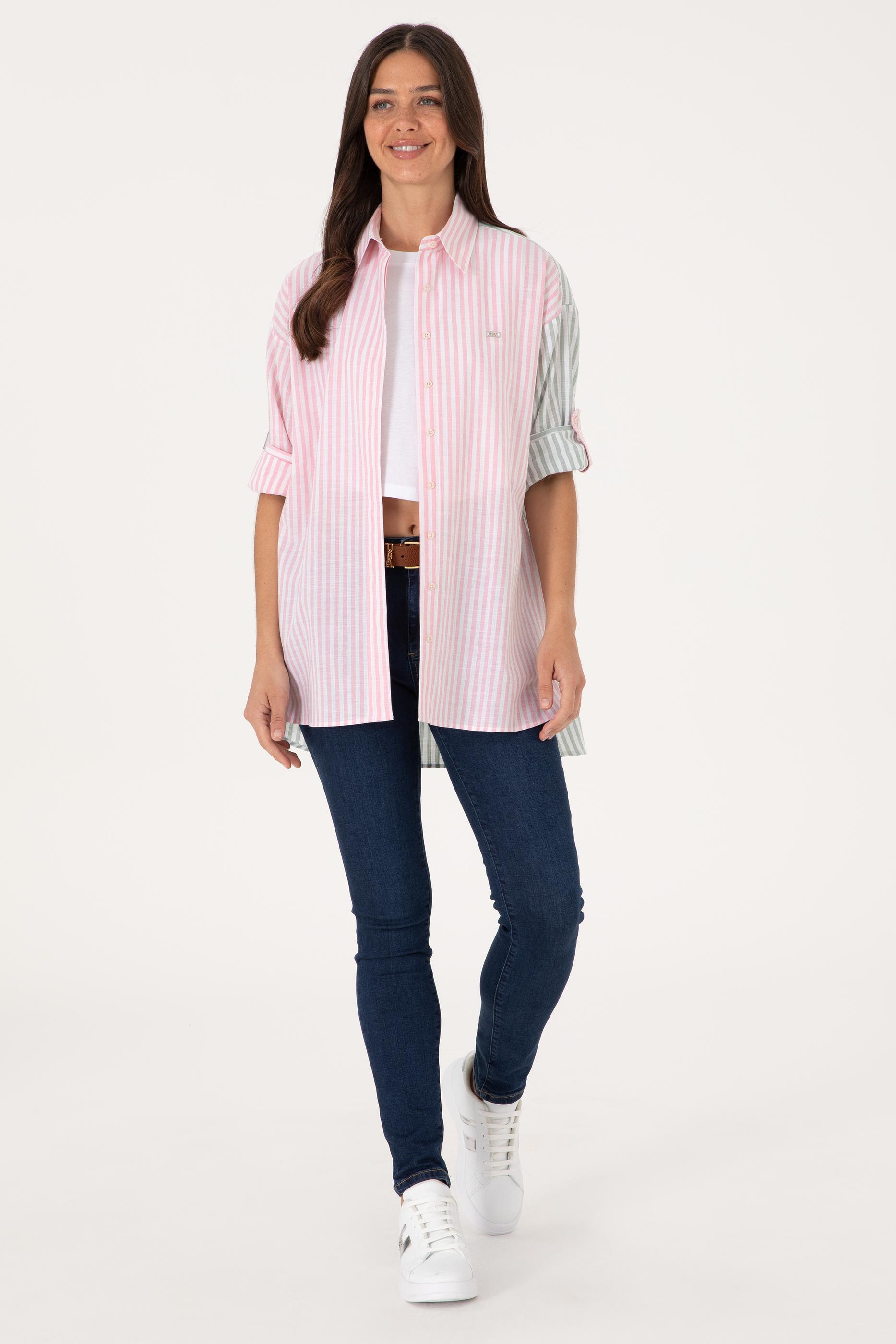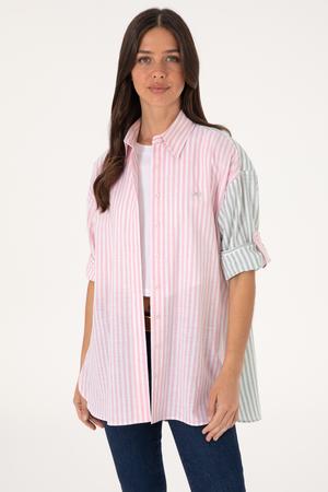 - Kadın Pembe Çizgili Uzun Kollu Tunik Gömlek