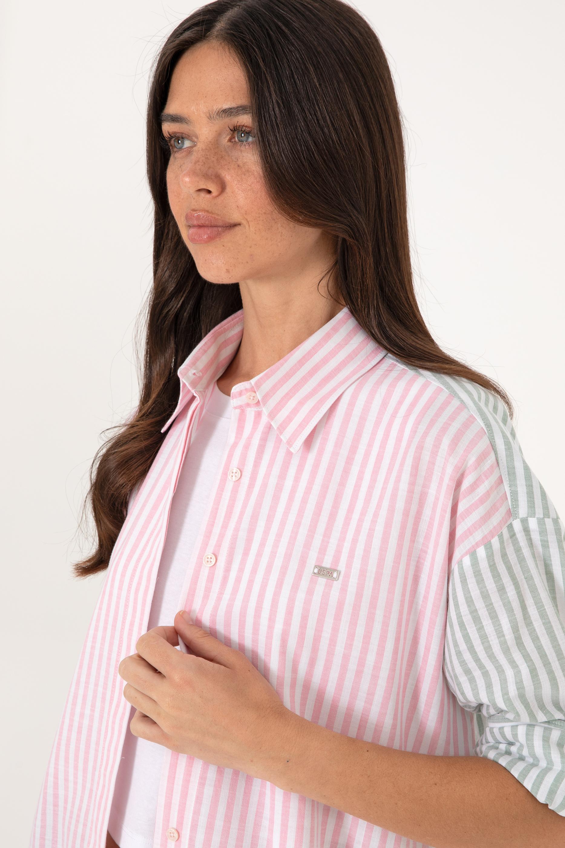 Kadın Pembe Çizgili Uzun Kollu Tunik Gömlek