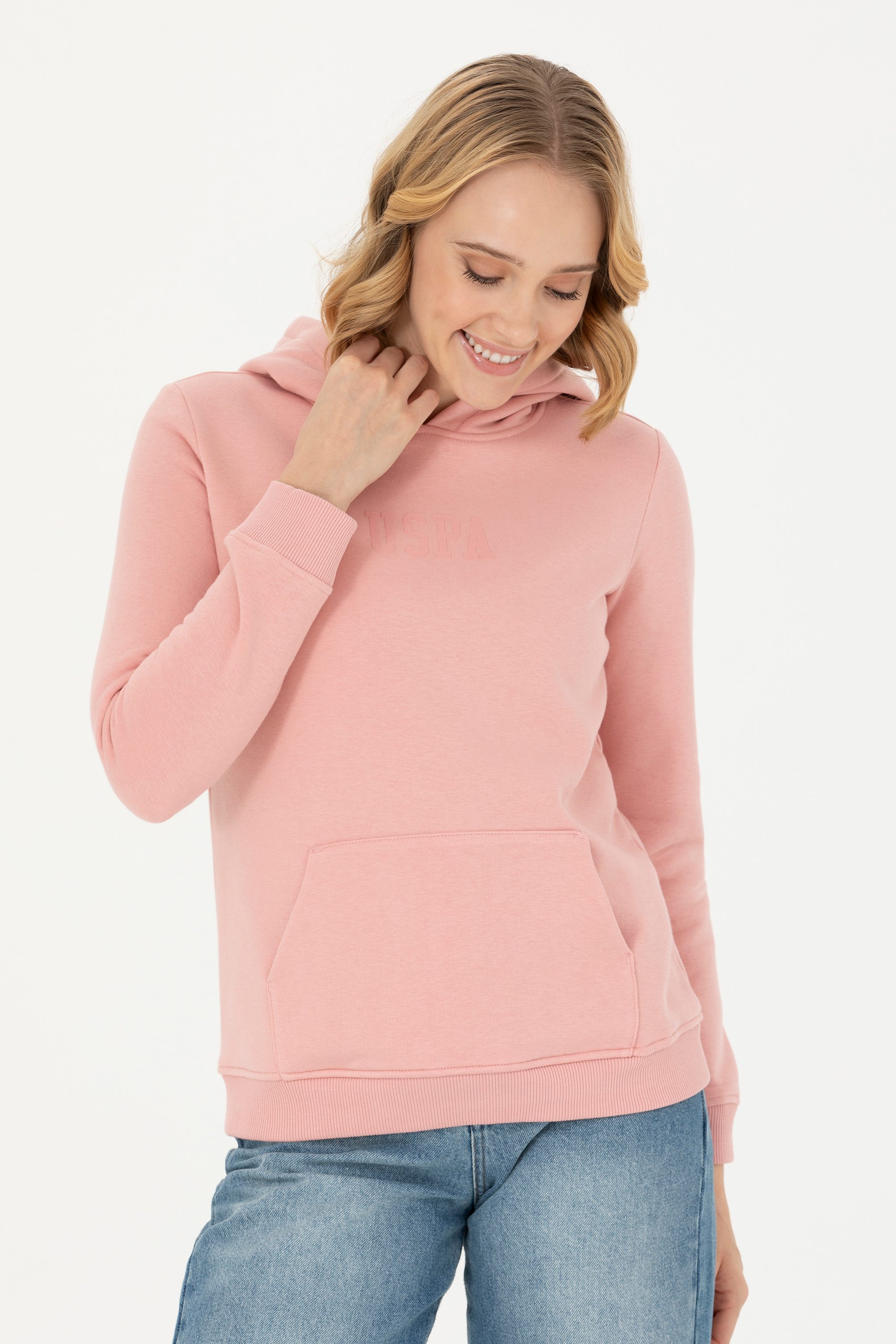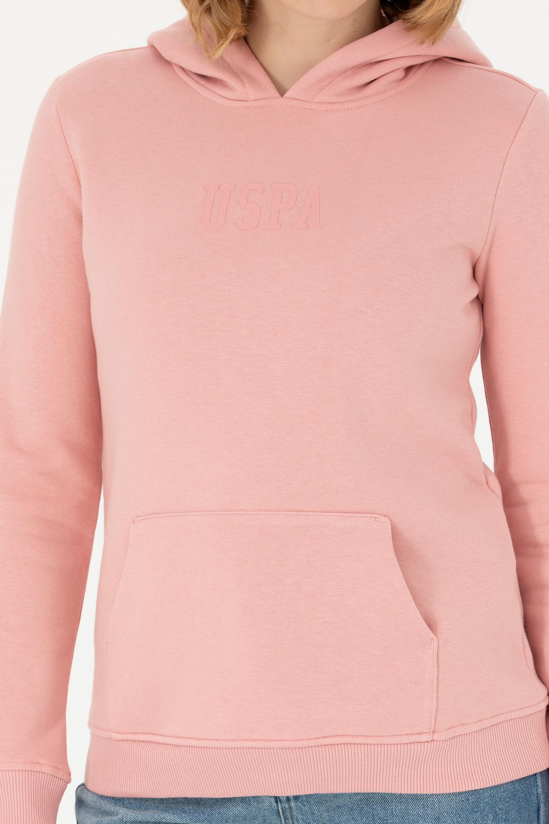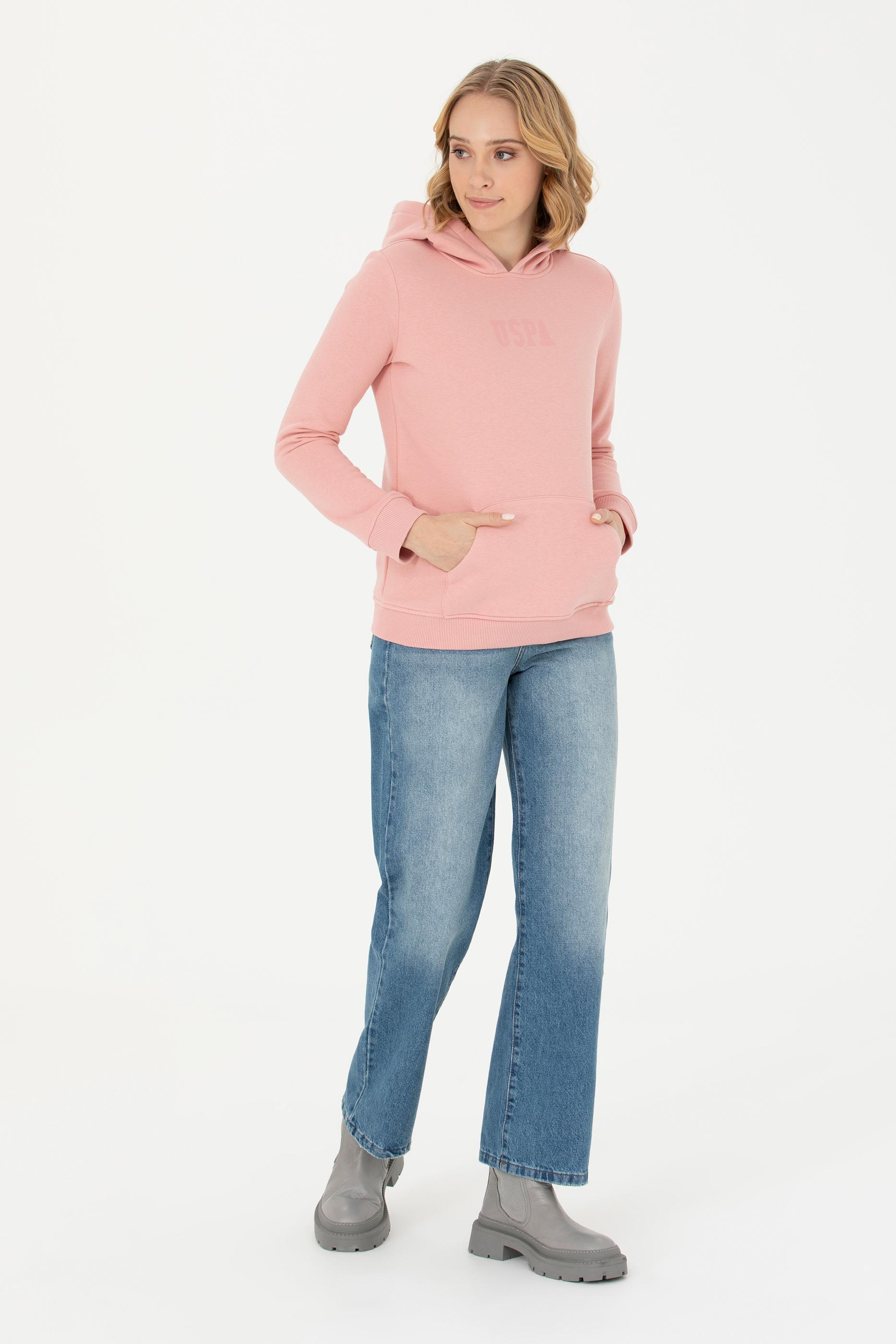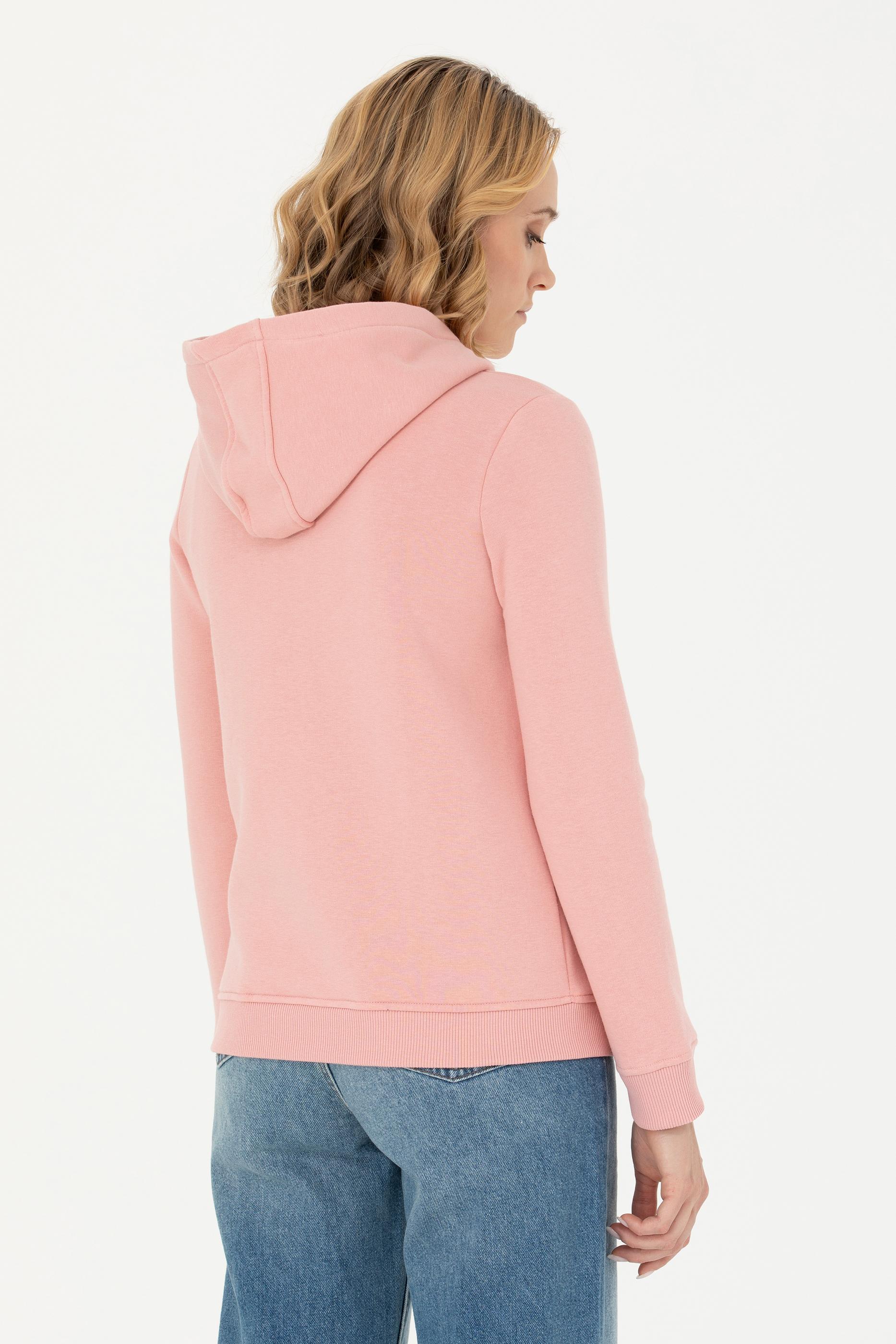 Kadın Pudra Kapüşonlu Basic Sweatshirt
