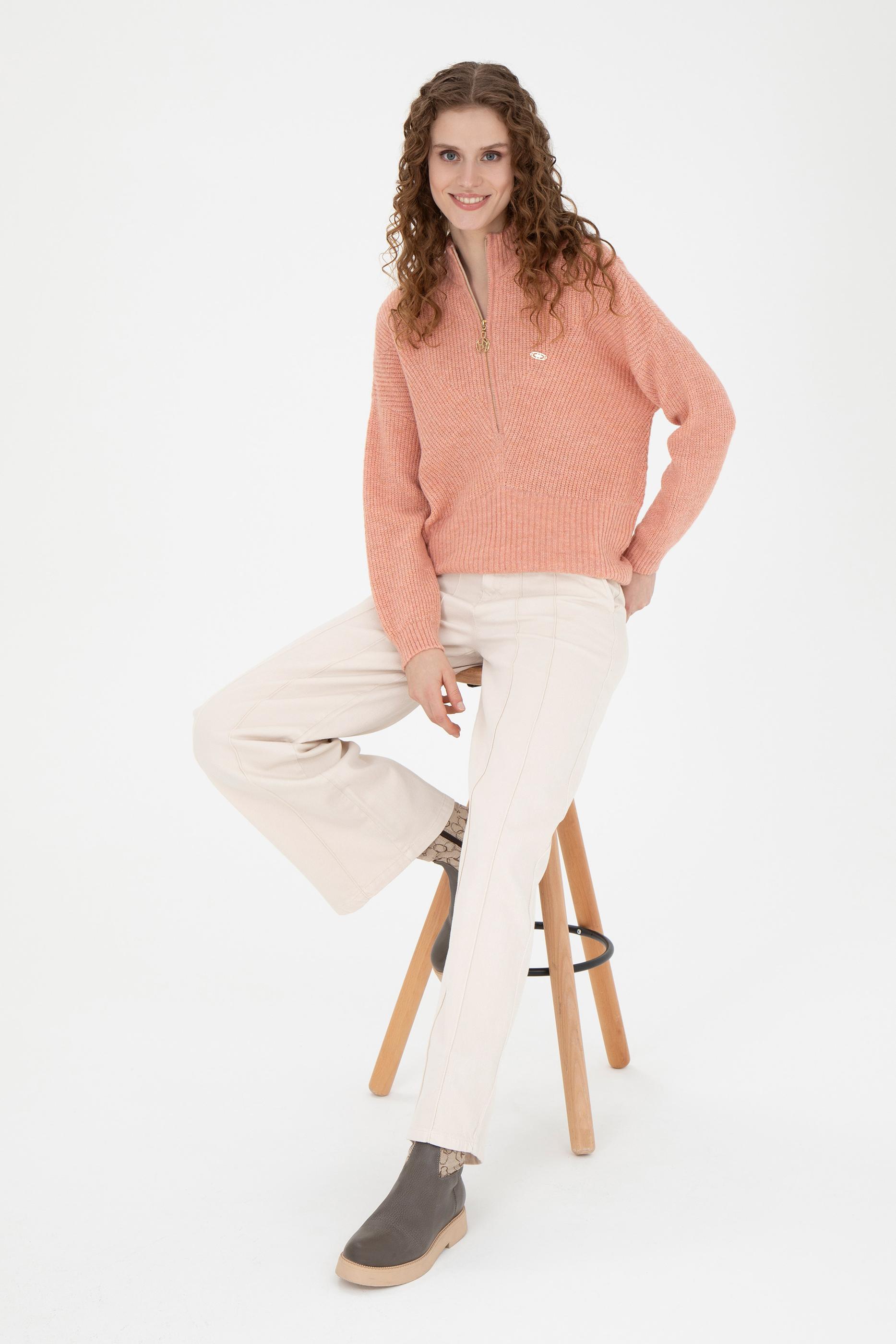 Kadın Pudra V Yaka Kazak