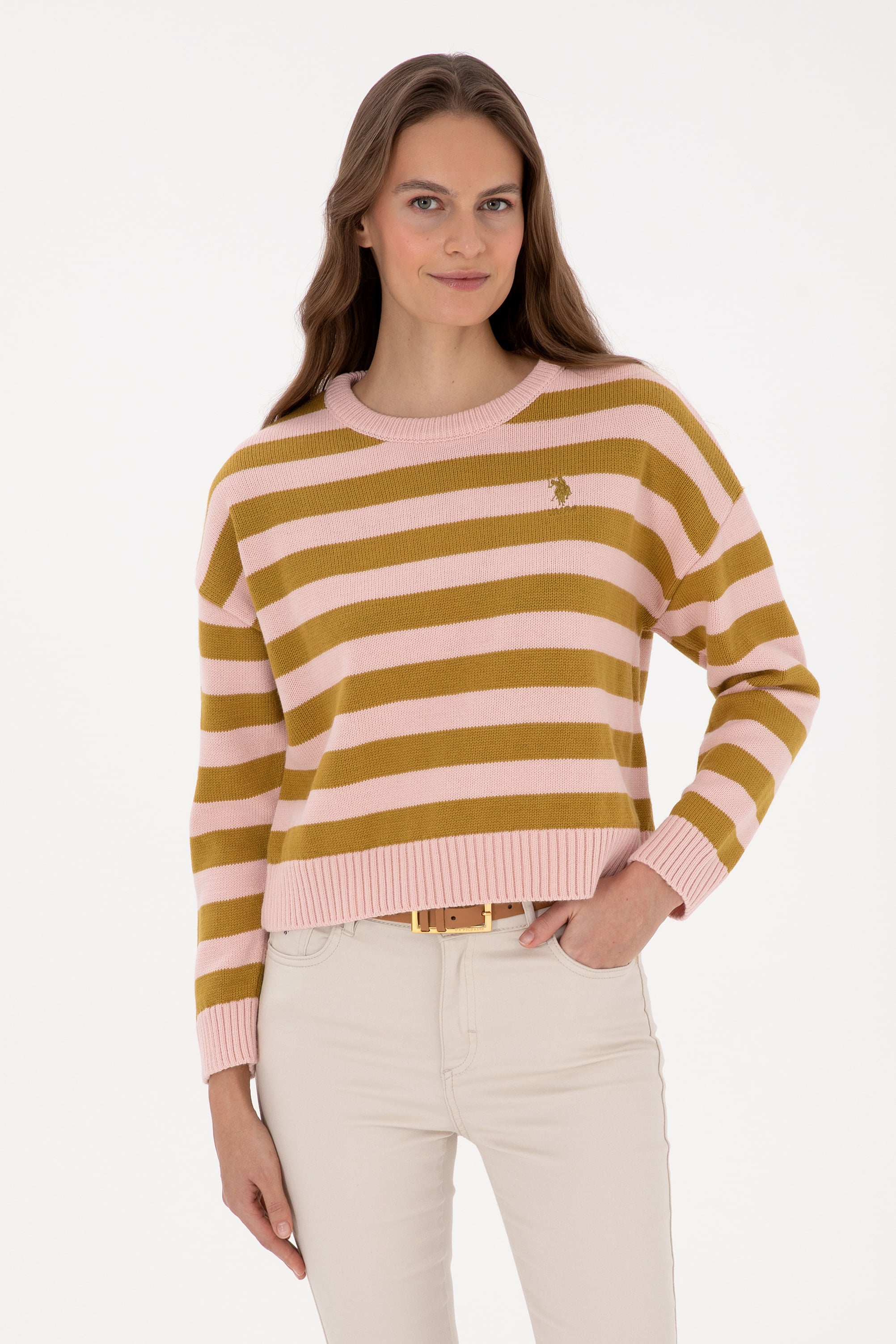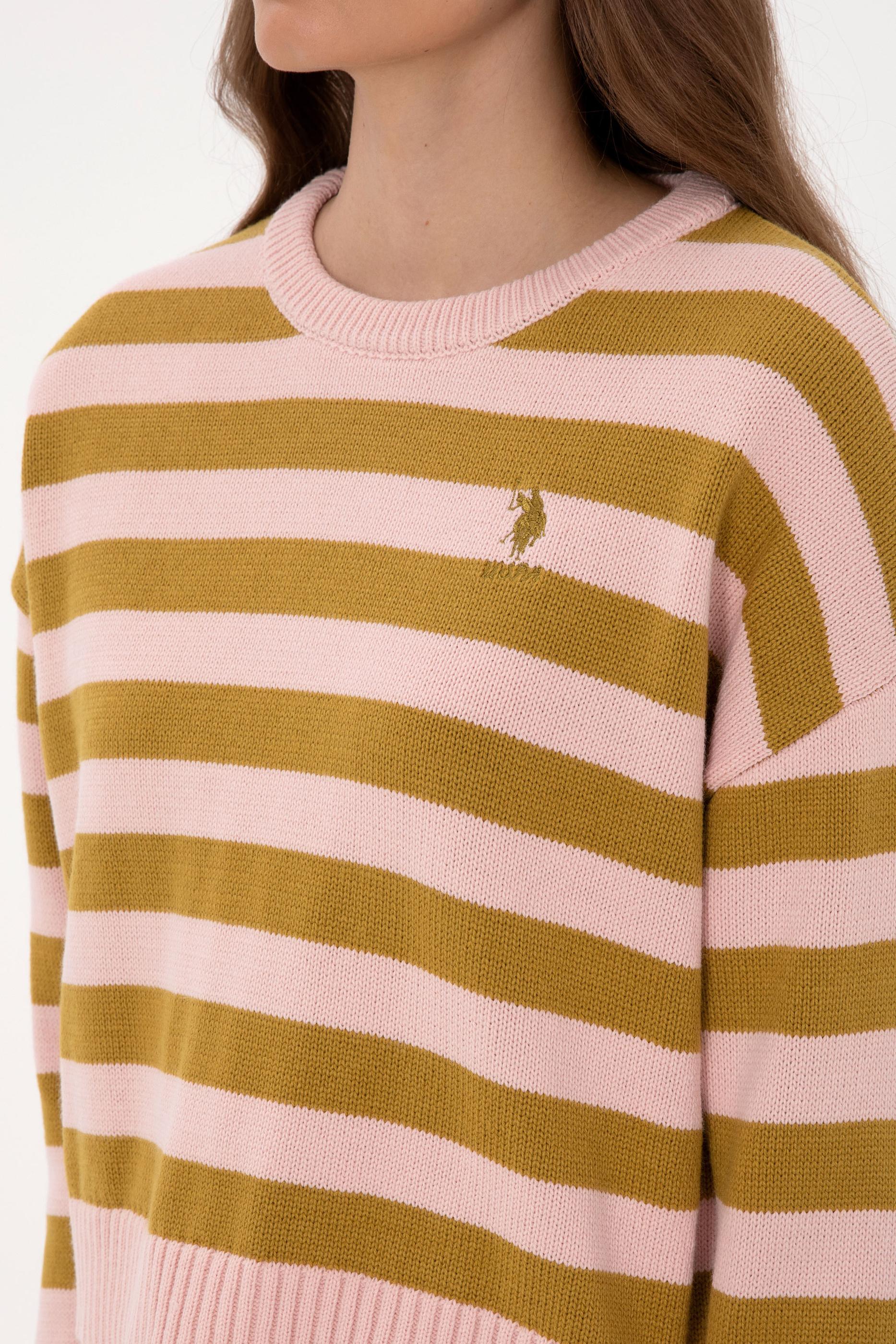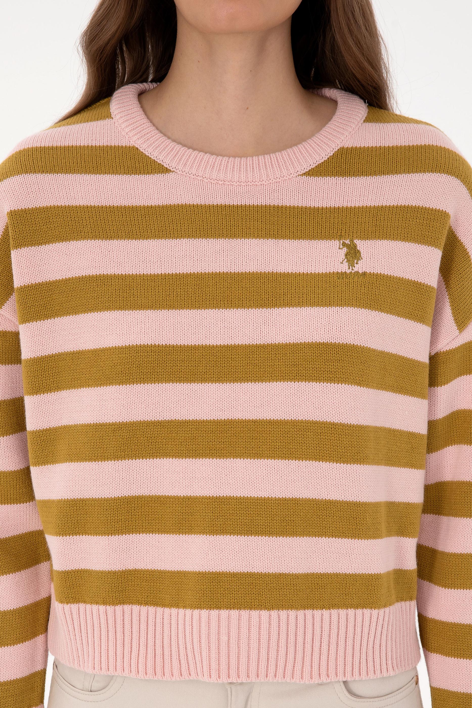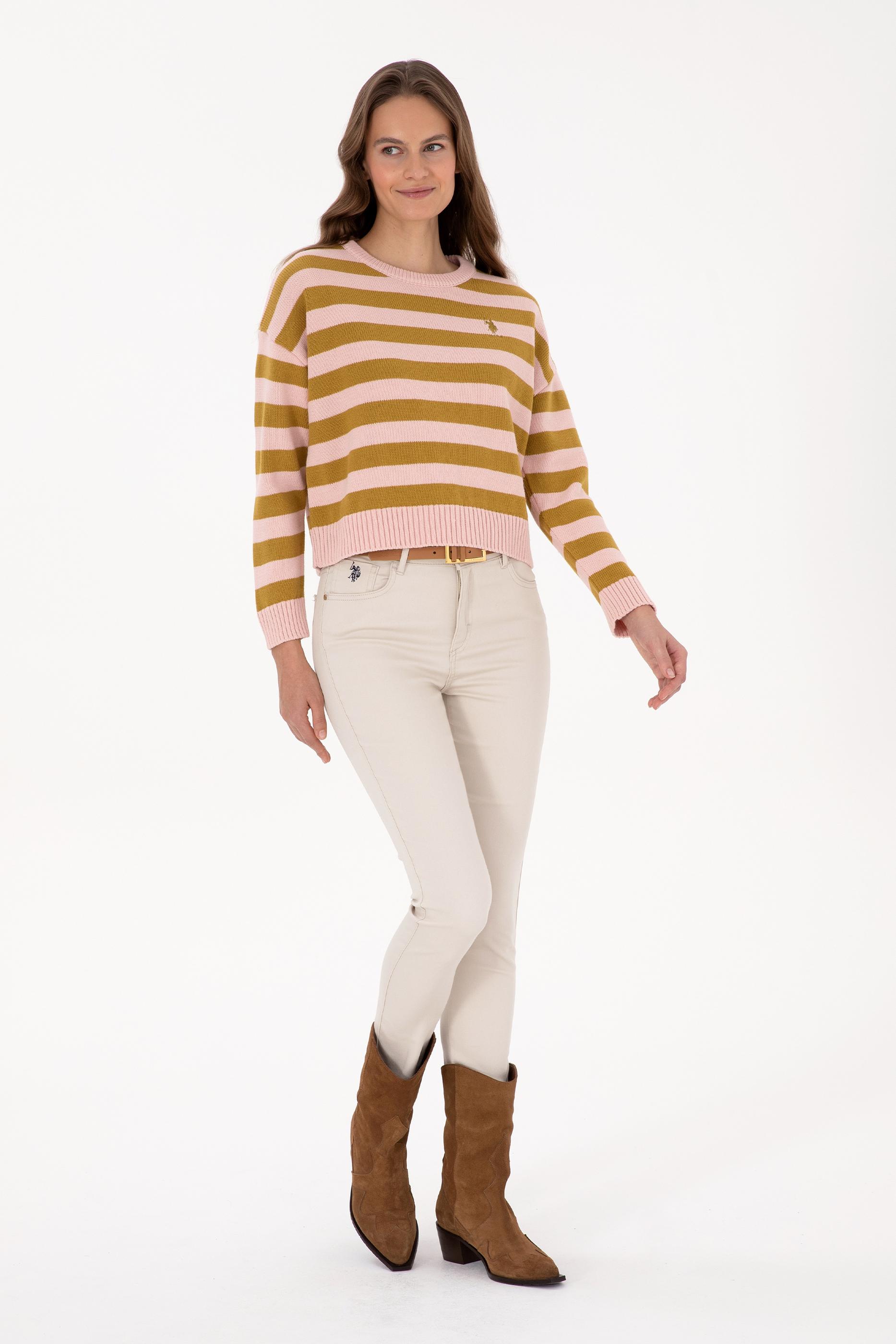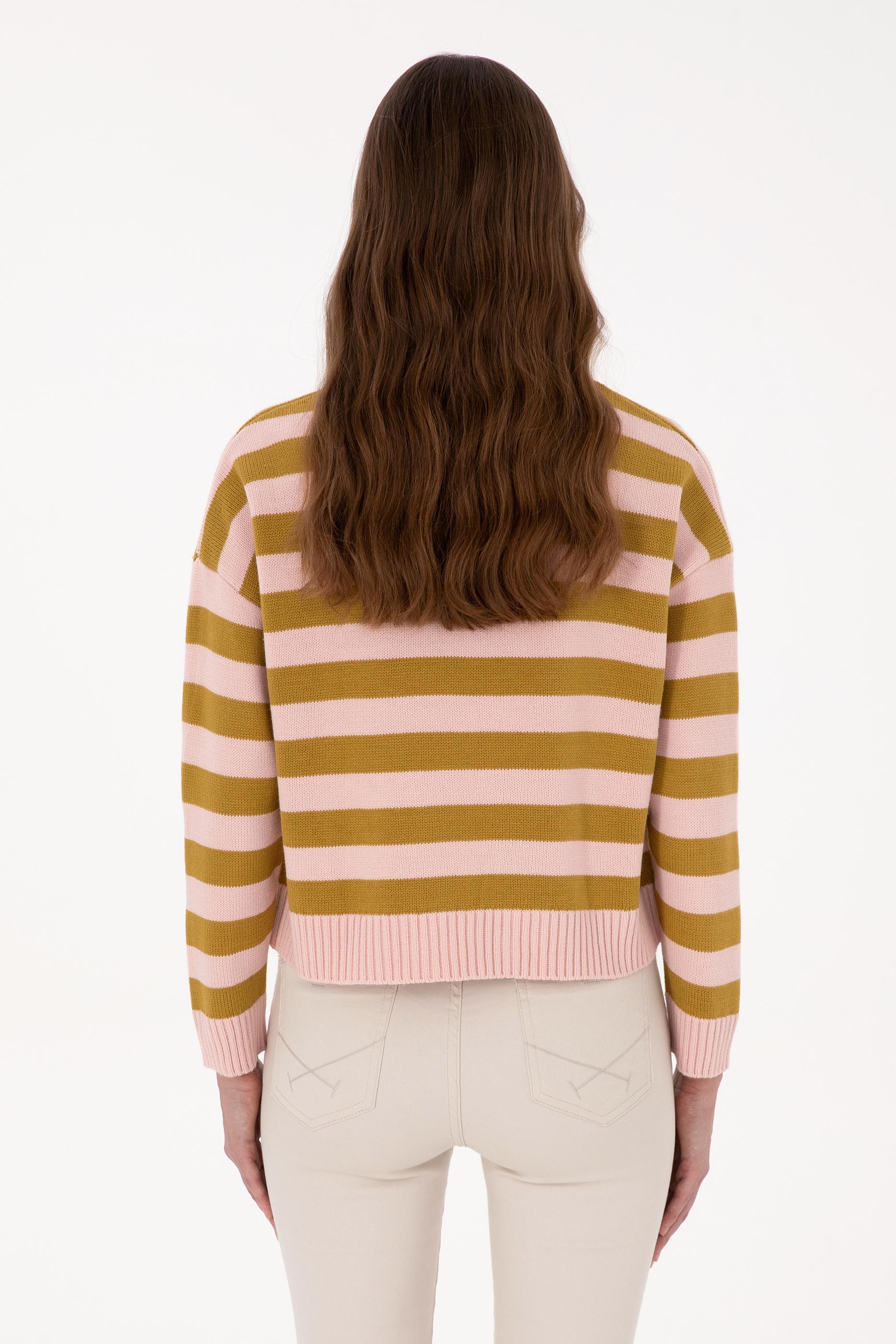 Kadın Pudra Çizgili Bisiklet Yaka Kazak