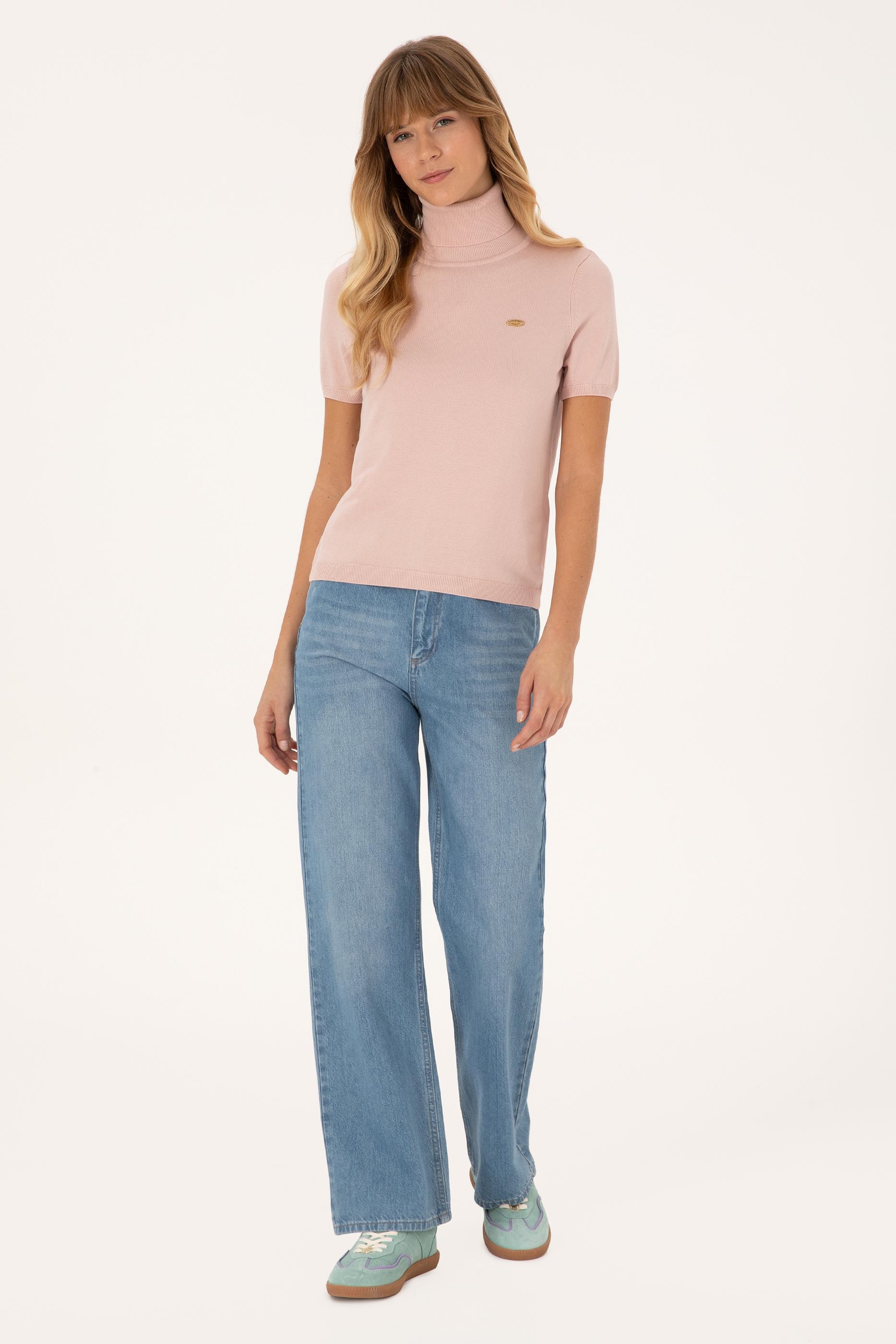 Bu pudra renkli triko kazak, yumuşak dokulu ve ince örgü yapısıyla hem şık hem de konforlu bir kullanım sunuyor. Slim fit kalıbı sayesinde vücudu nazikçe sararak silueti ön plana çıkarıyor, modern ve zarif bir görünüm sağlıyor. Kısa kollu tasarımı, özellikle mevsim geçişlerinde tek başına veya ceket, hırka gibi parçalarla katmanlı şekilde kullanım imkânı tanıyor. Balıkçı yaka detayı boyun bölgesine sofistike bir hava katarken aynı zamanda sıcak tutma işlevi görüyor. Hafif ve esnek yapısı gün boyu rahat hareket etmeye olanak tanırken, trikonun pürüzsüz yüzeyi görsel olarak da kaliteli bir duruş sergiliyor. Pudranın soft tonu, hem nötr hem de canlı renklerle kolayca uyum sağlayarak gardıropta çok yönlü bir kullanım alanı yaratıyor; böylece ister ofis ortamında, ister günlük şehir stilinde rahatlıkla tercih edilebiliyor.