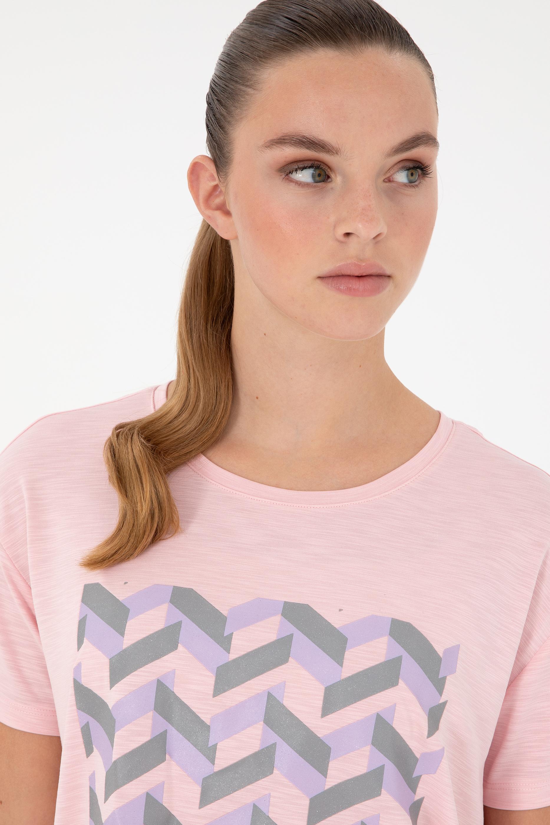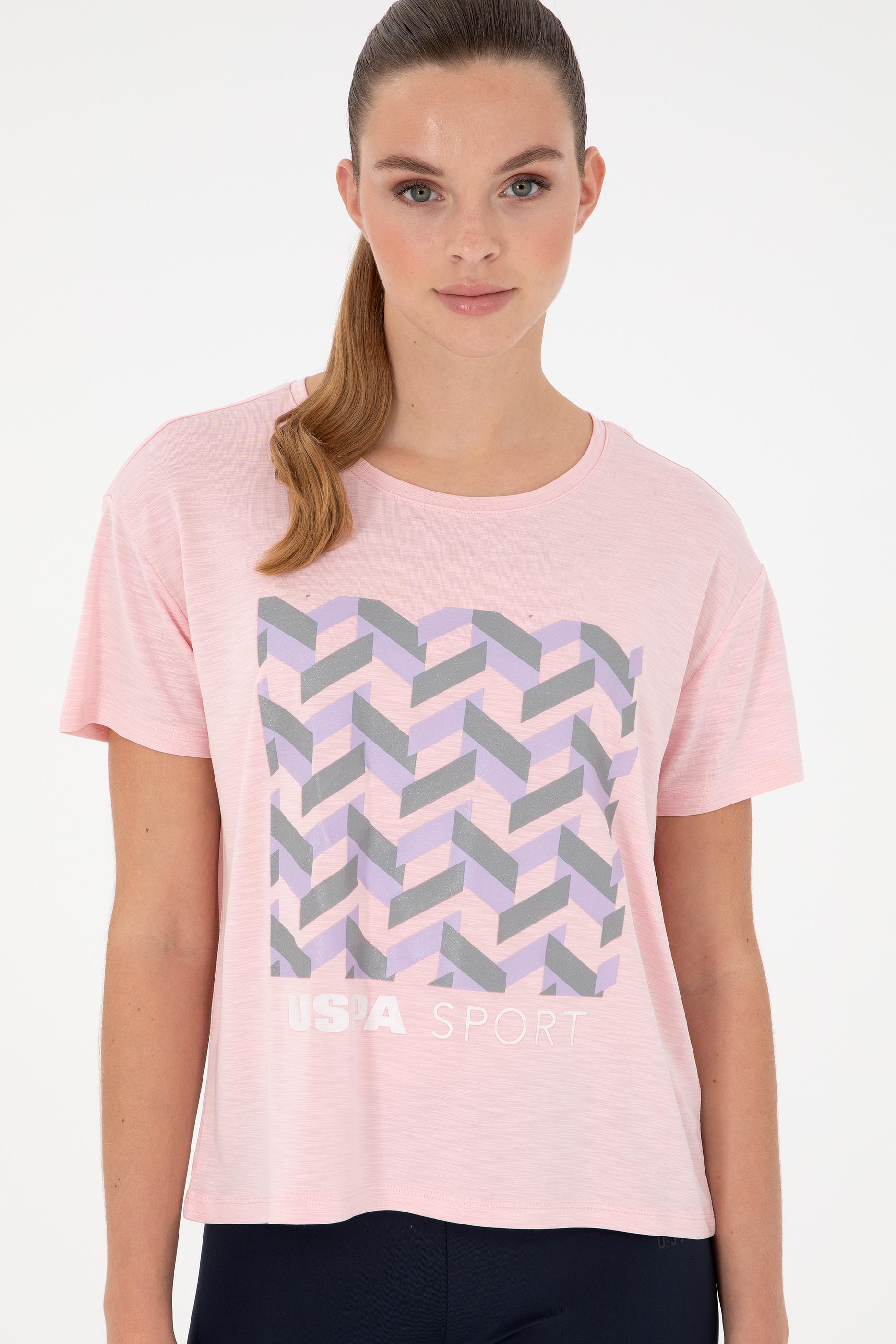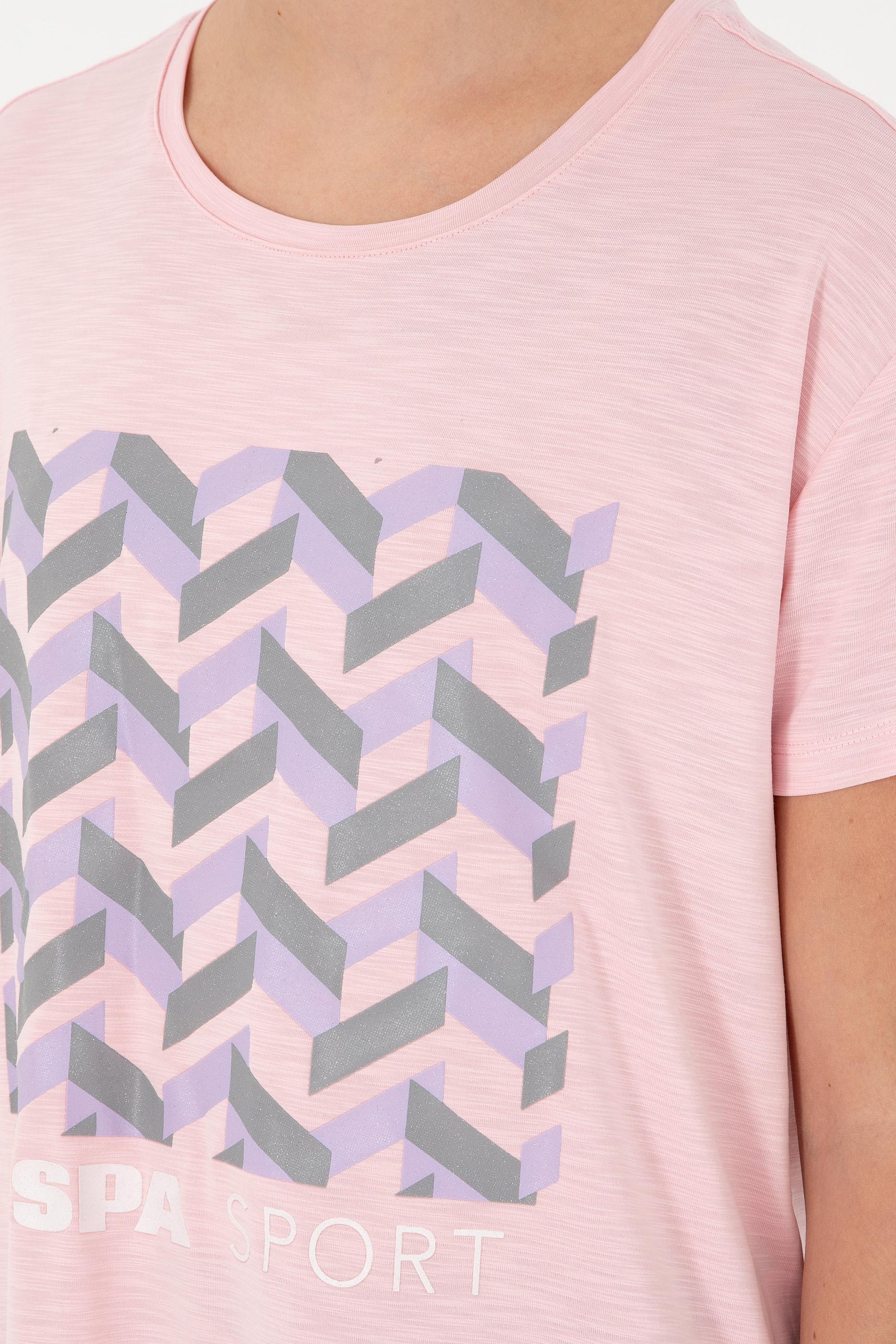 - Kadın Pudra Desenli Bisiklet Yaka Tişört