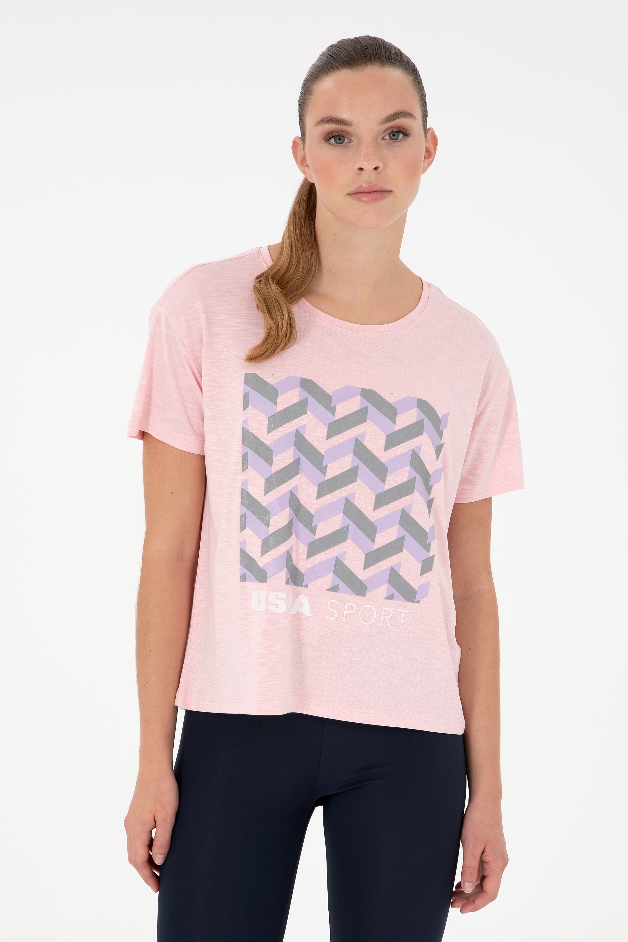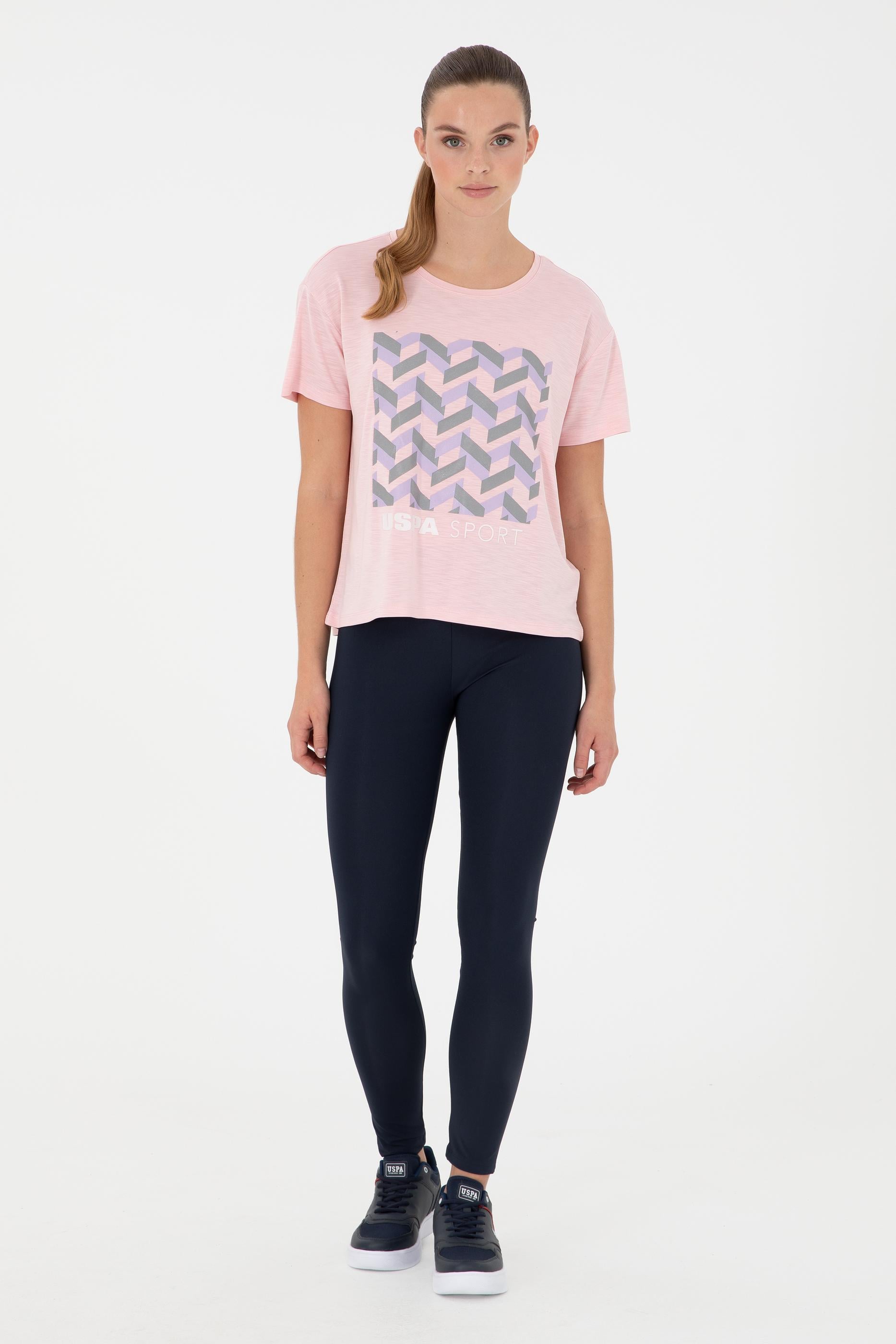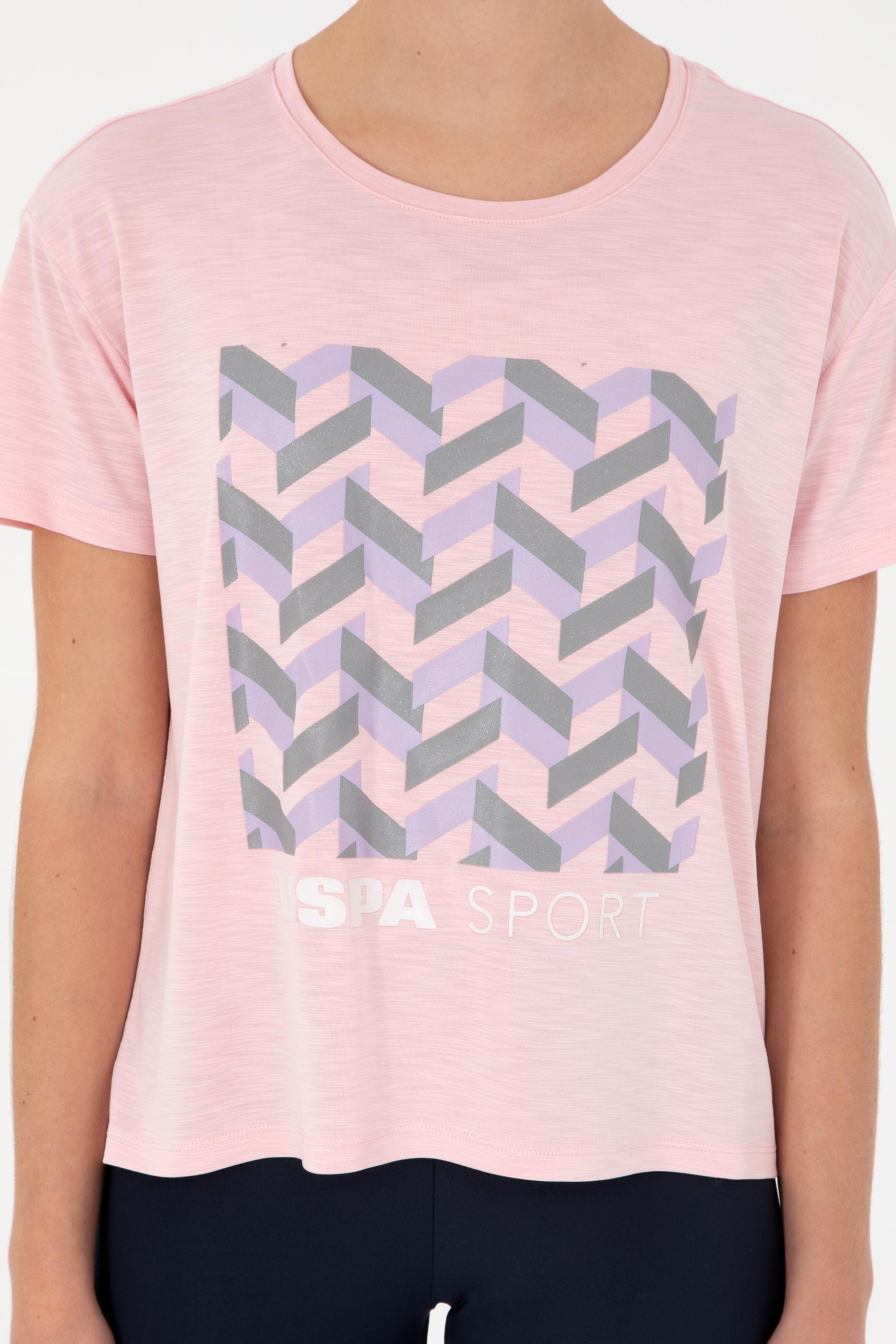 - Kadın Pudra Desenli Bisiklet Yaka Tişört