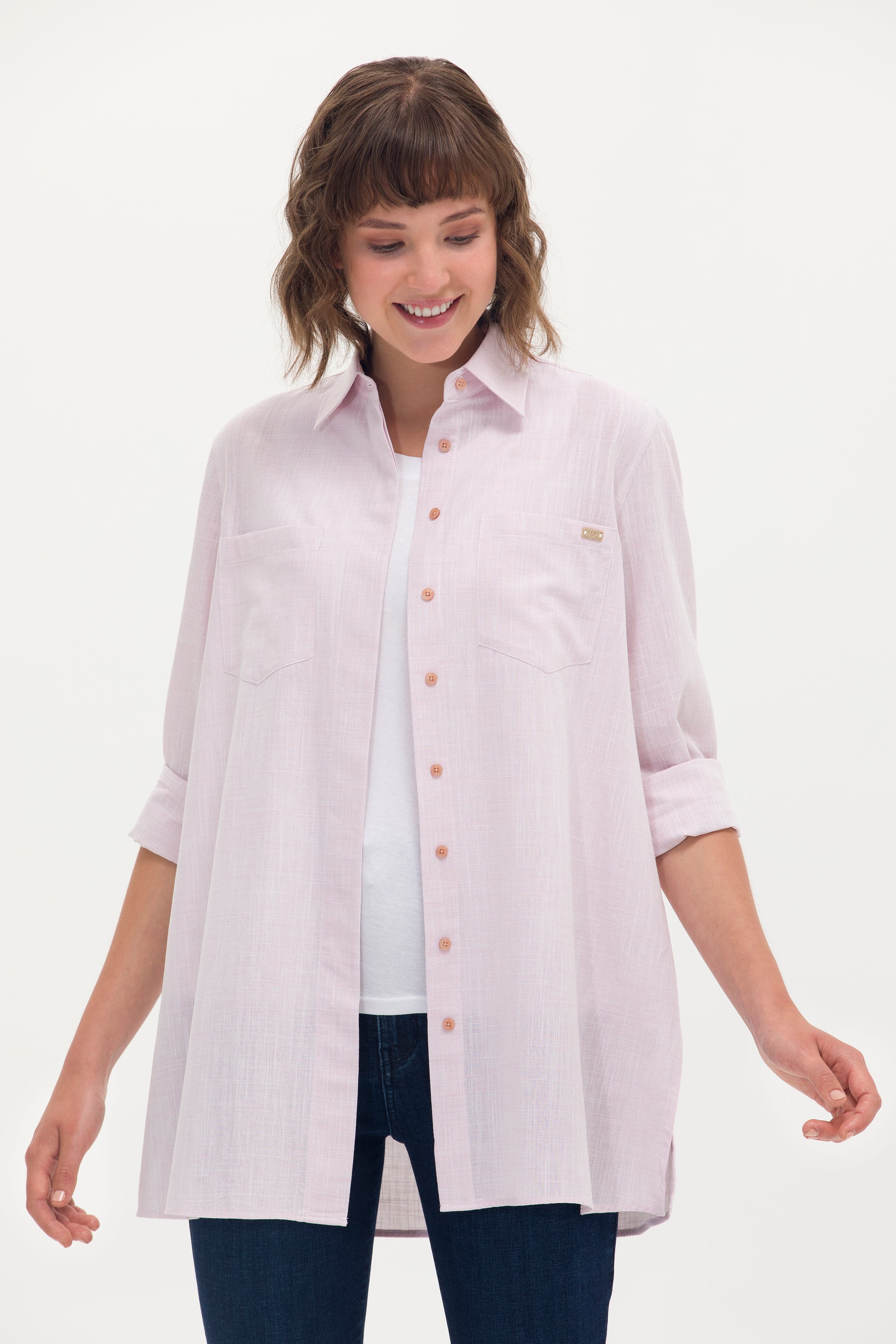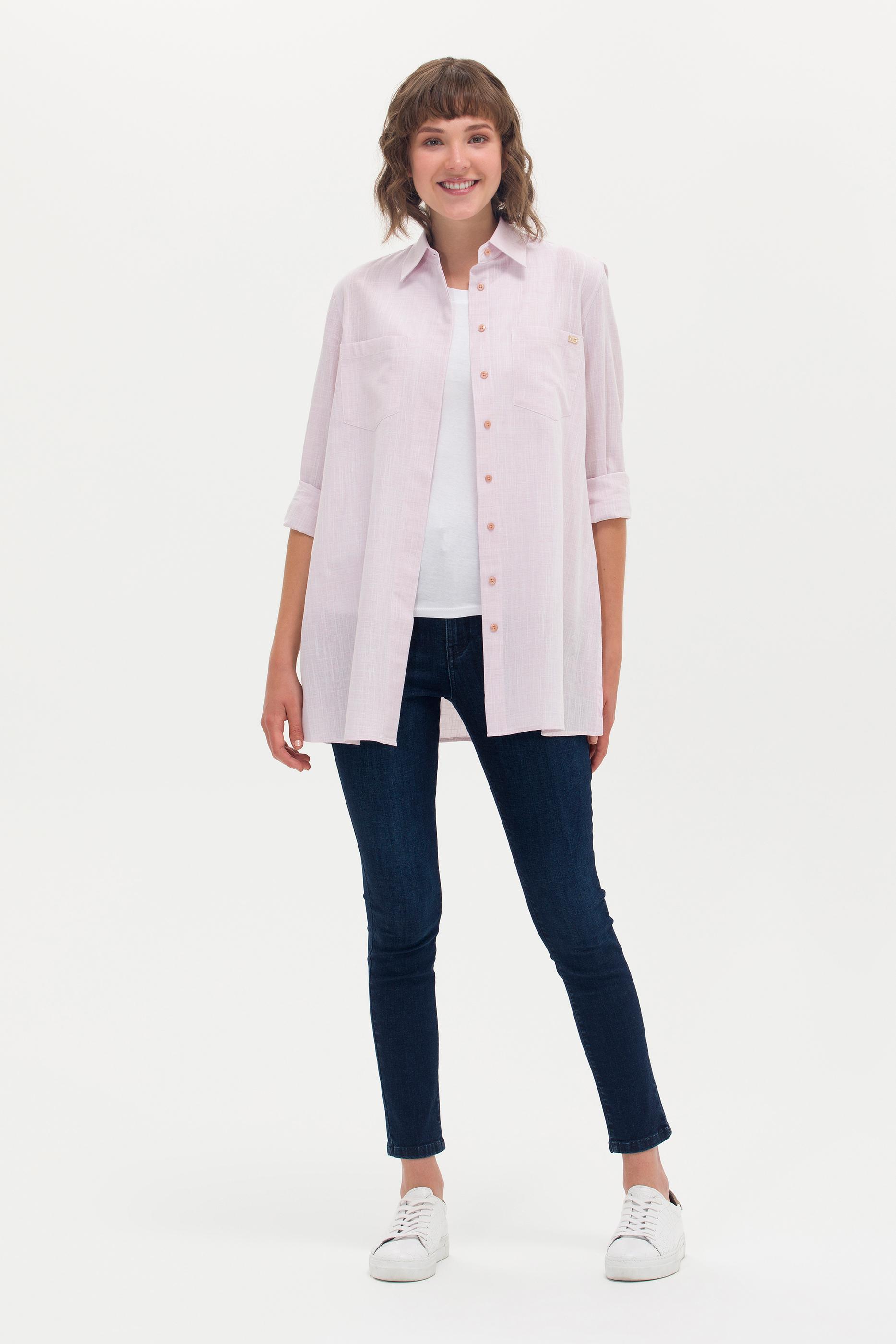 Cep detaylı ve Comfort kalıpta tasarlanan kadın uzun gömlek vücudu sıkıştırmaz. Uzun kollu gömlek olmasıyla her mevsim giyebilir ve kolaylıkla kombinleyebilirsiniz. Uzun gömlekleri aynı zamanda gömlek elbise olarak da kullanabilir ister günlük kullanımda isterseniz de özel davetlerde tercih edebilirsiniz. Ayrıca pamuklu kumaşıyla da cildinizi tahriş etmez ve nefes alabilme özelliği sunar. Bayan gömlek modelleri uzun kollu olarak sadece online mağazada sizi bekliyor.