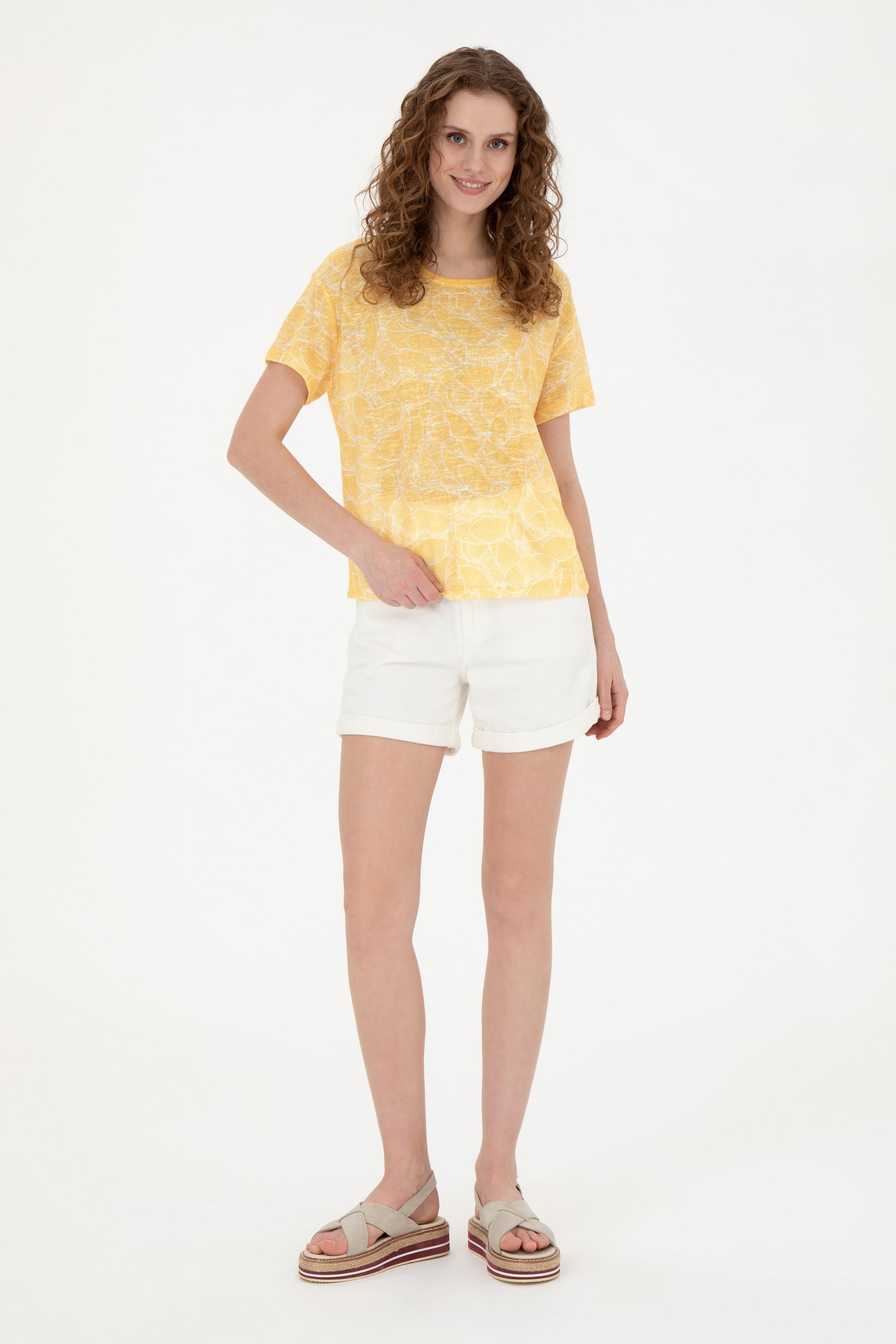Kadın Safran Bisiklet Yaka Tişört