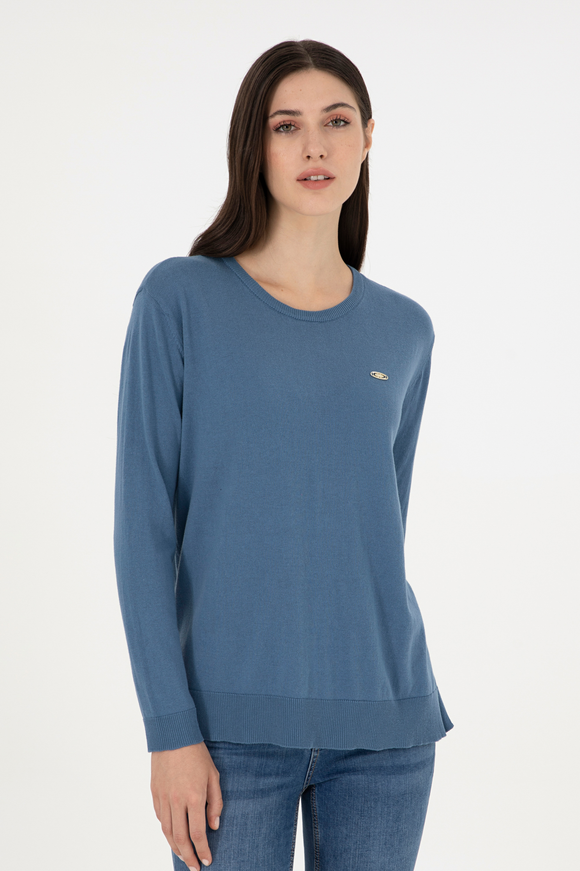 Kadın Koyu Mavi Basic Bisiklet Yaka Kazak