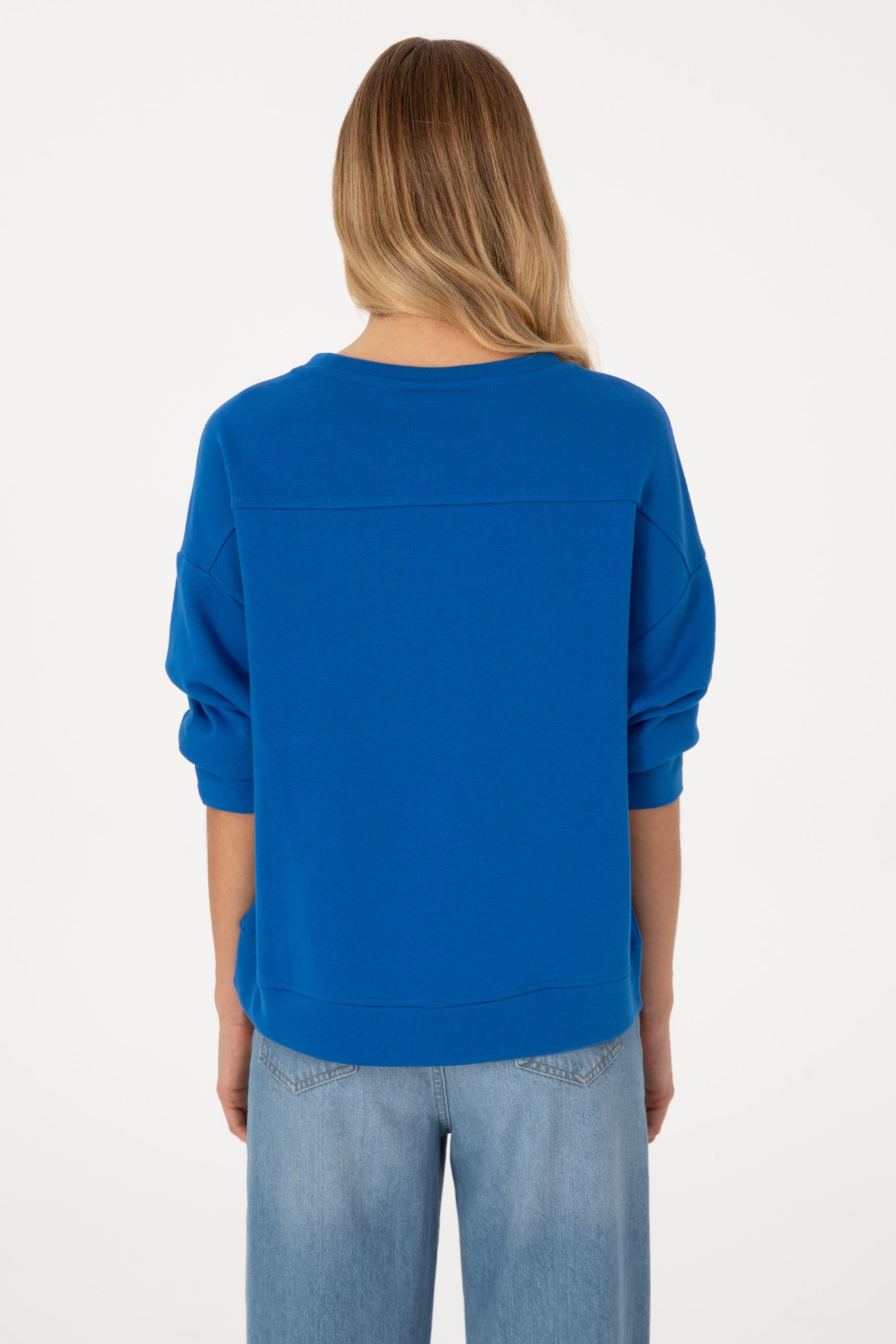 - Kadın Koyu Mavi Bisiklet Yaka Basic Sweatshırt