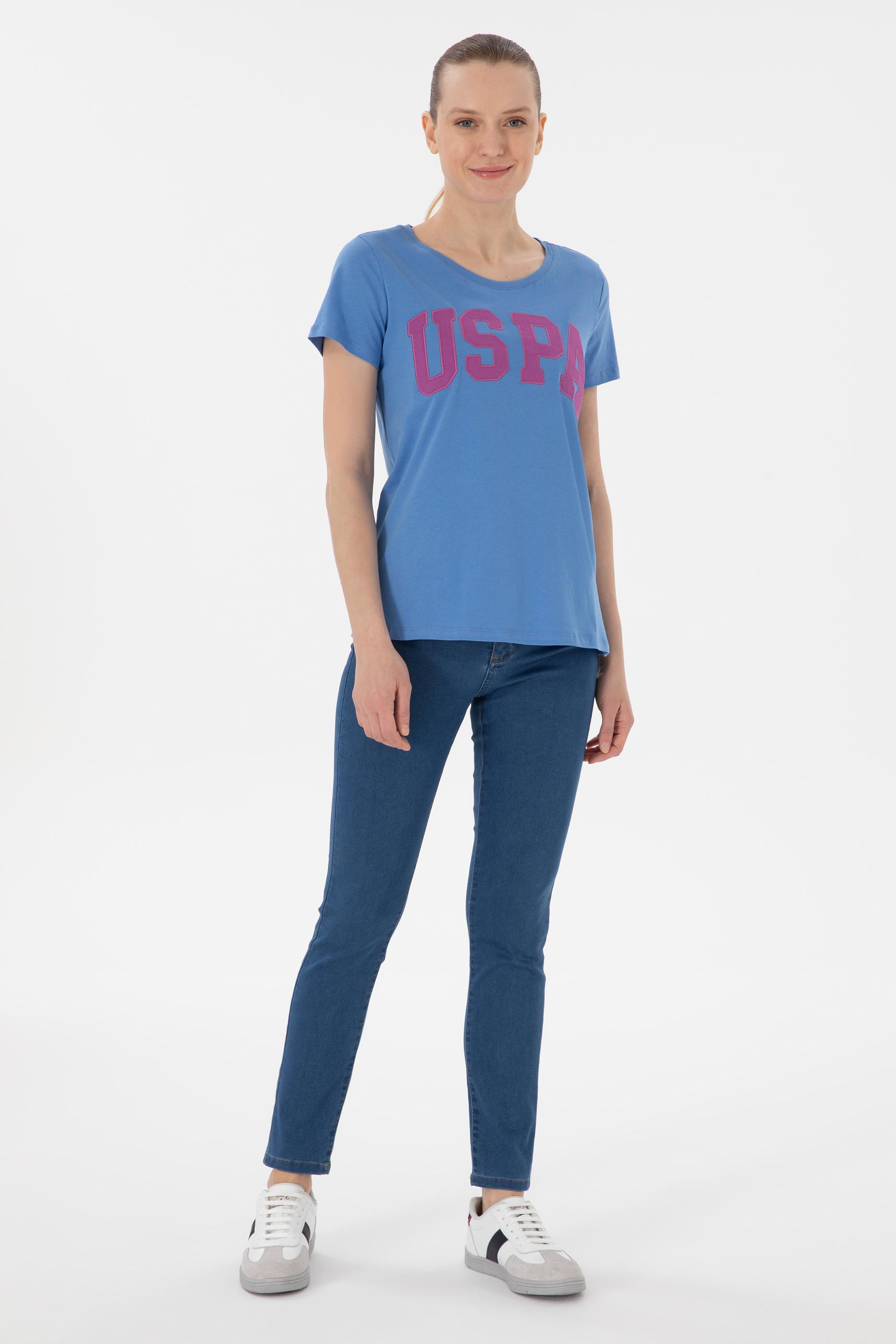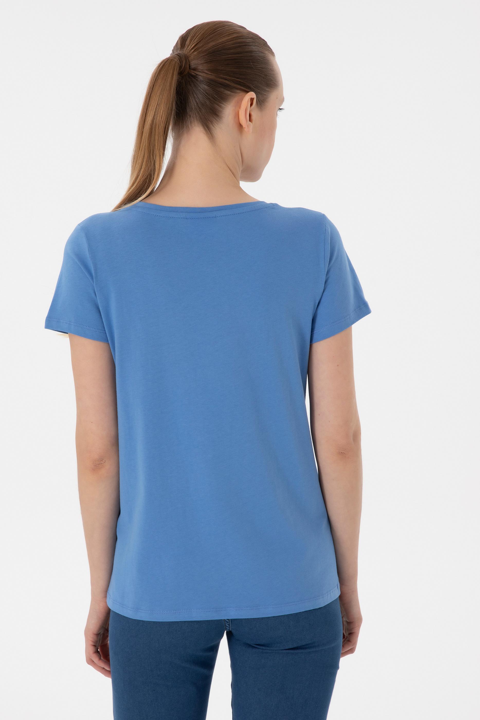 - Kadın Koyu Mavi Bisiklet Yaka Basic Tişört