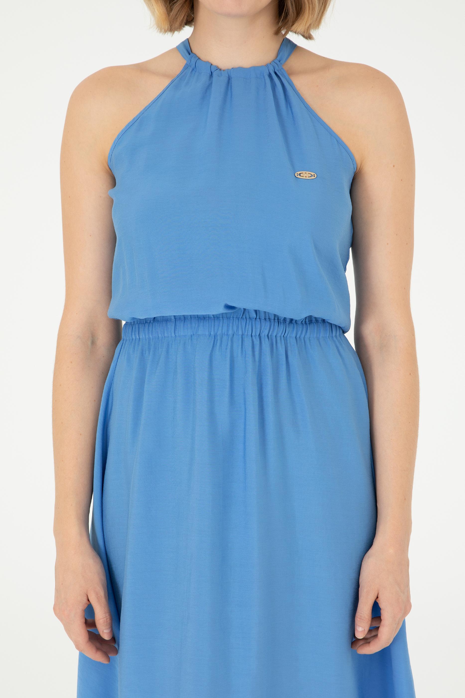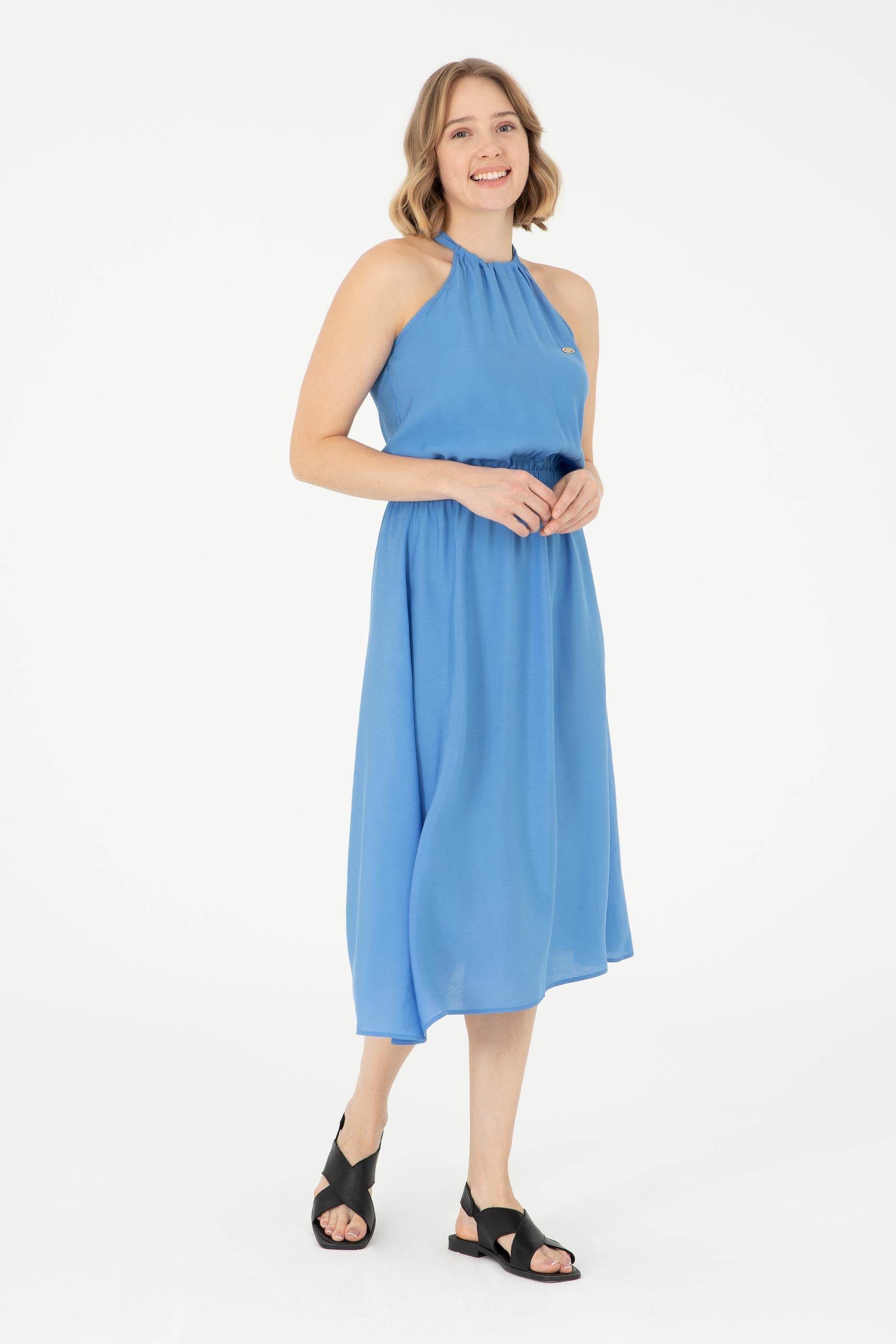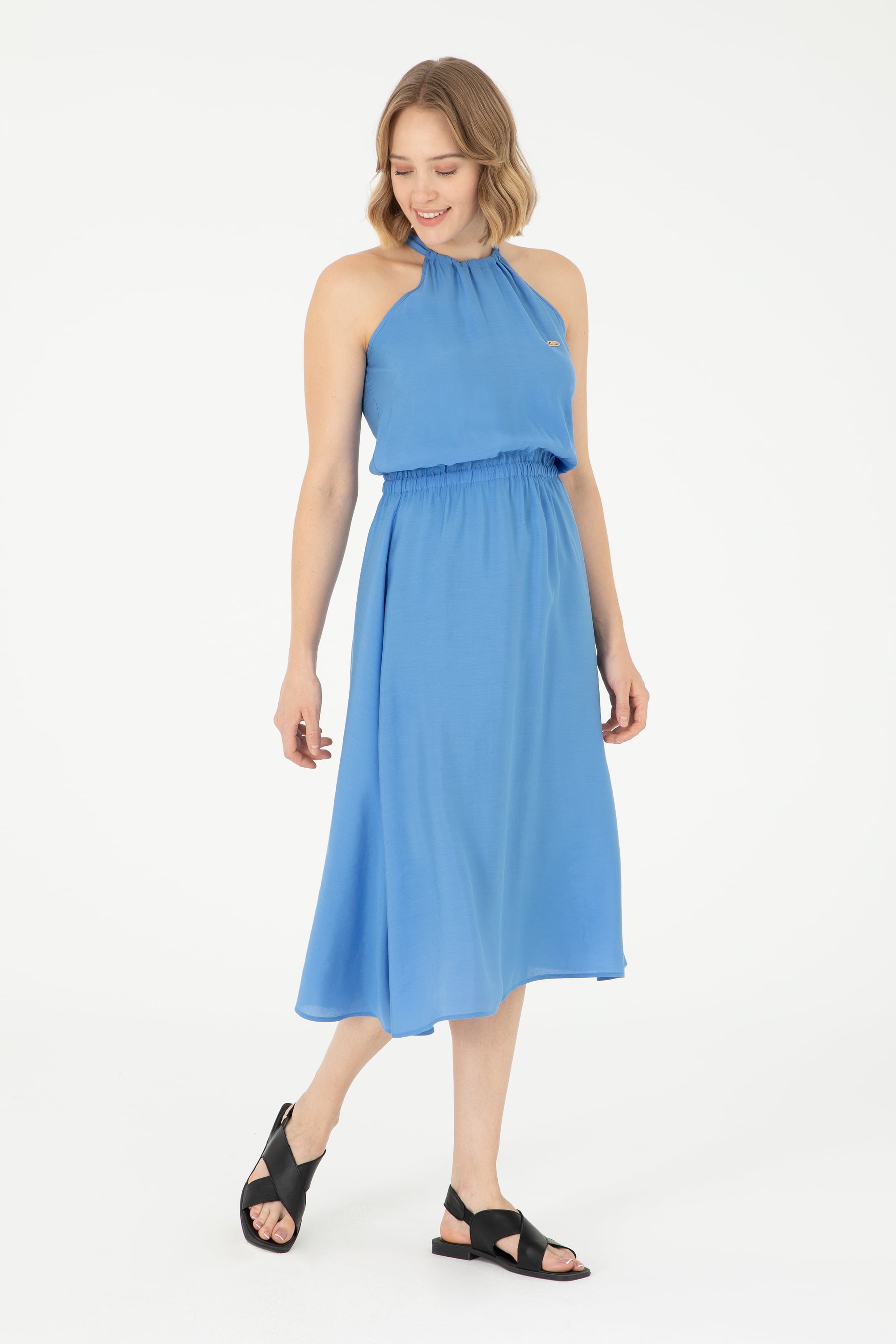 Kadın Koyu Mavi Midi Boy Dokuma Elbise