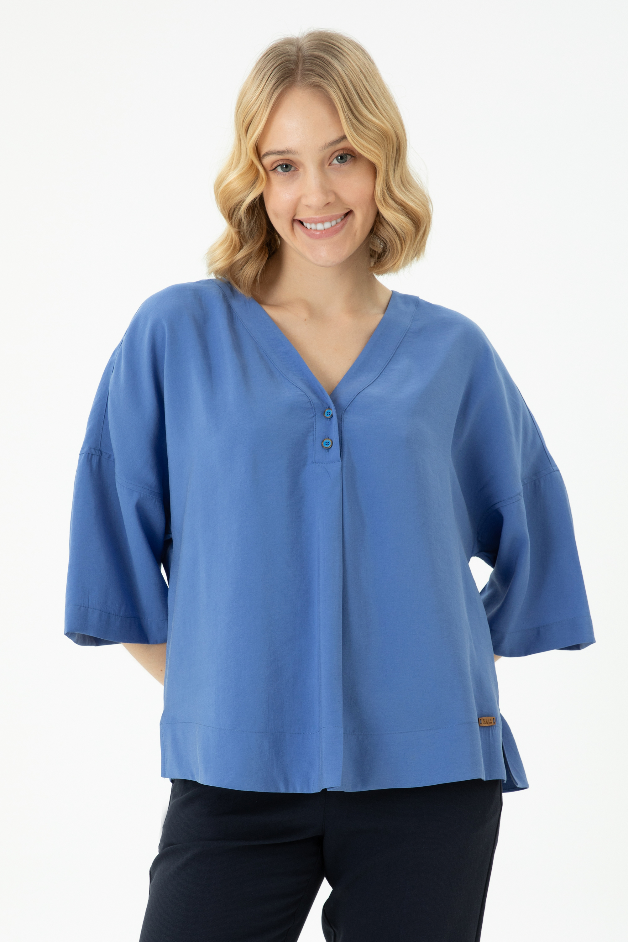 Kadın Saks Kısa Kollu Gömlek - 50263178010