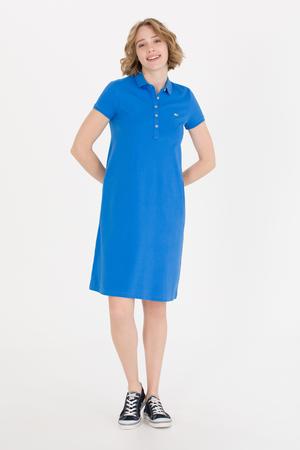 - Kadın Saks Polo Yaka Örme Elbise