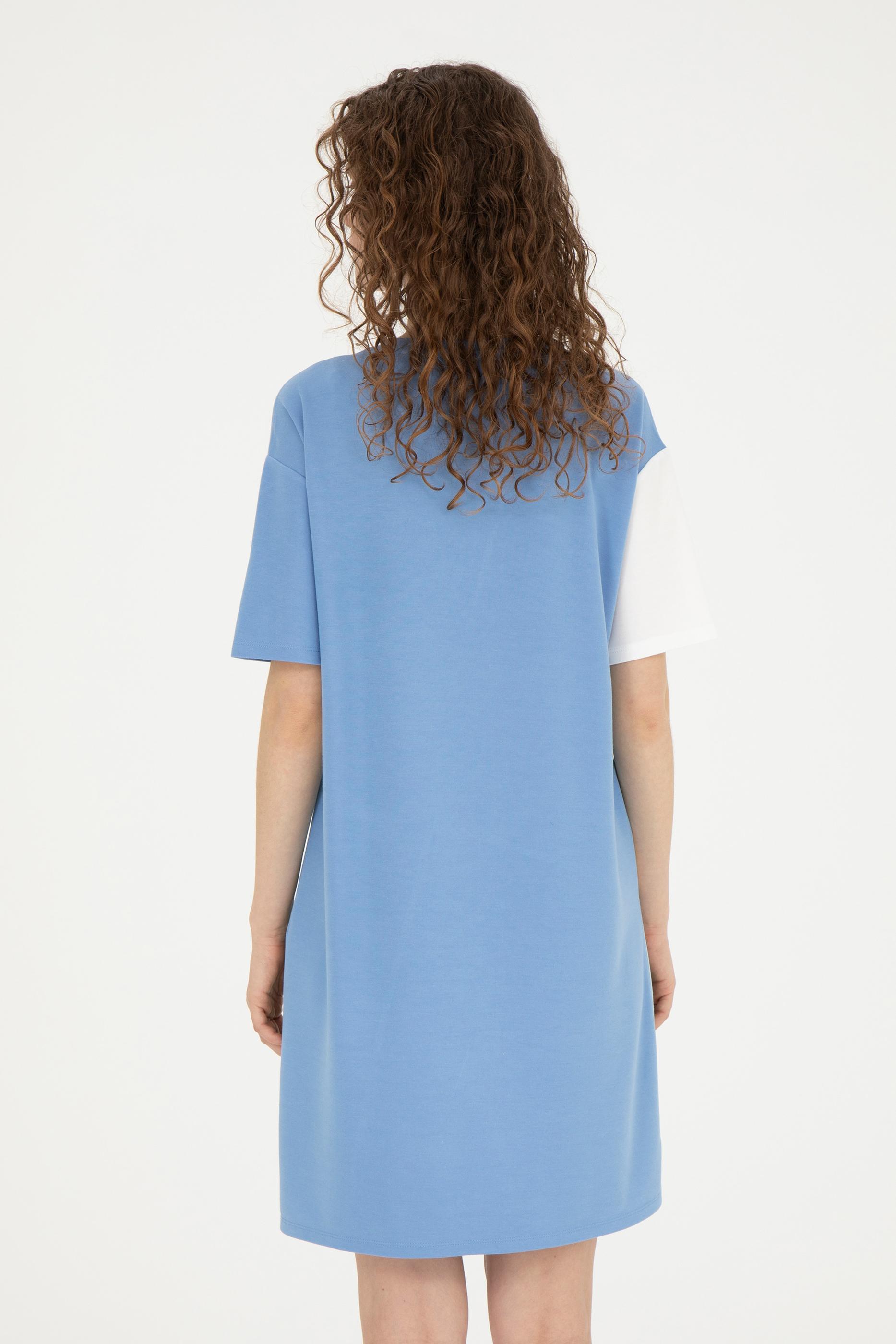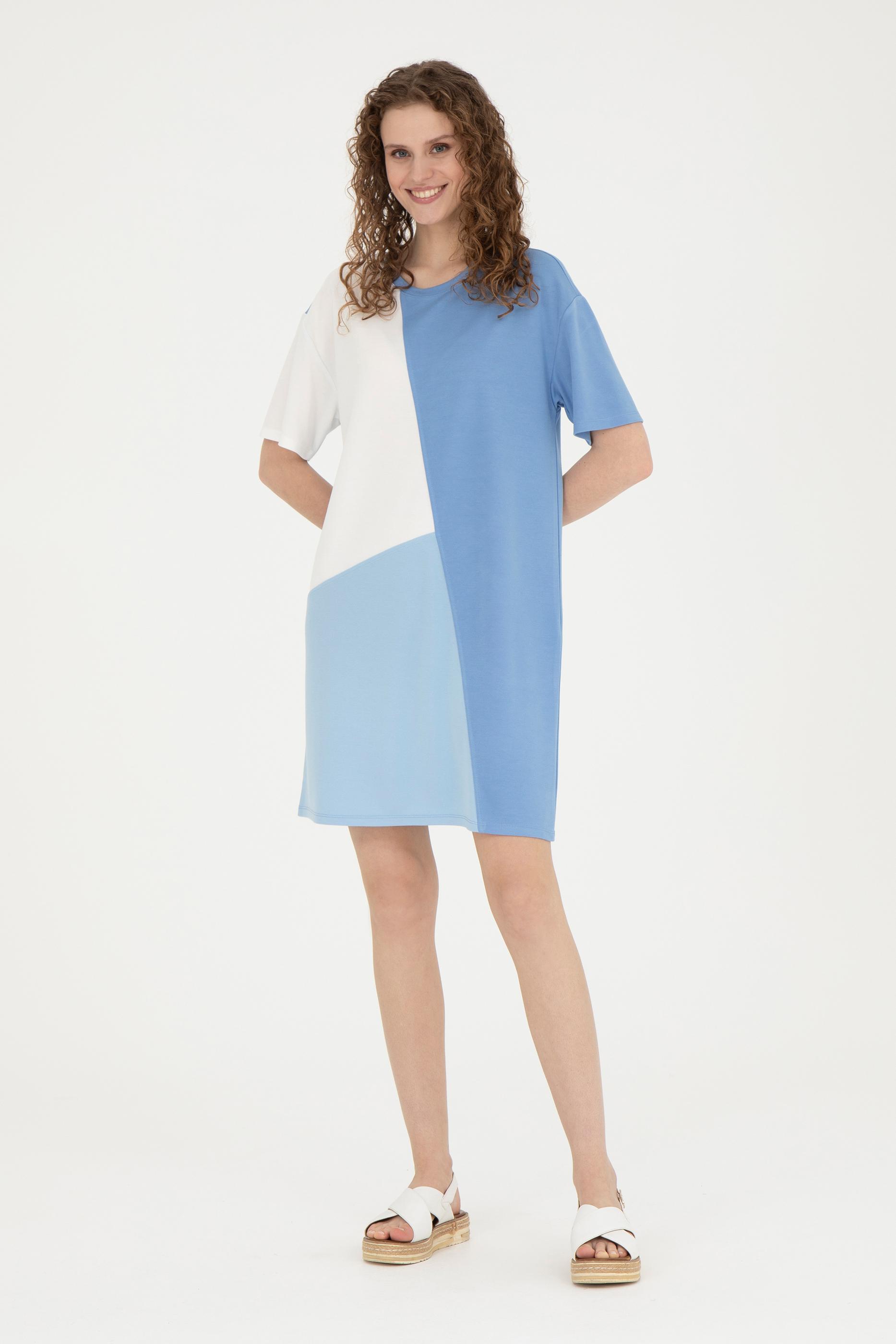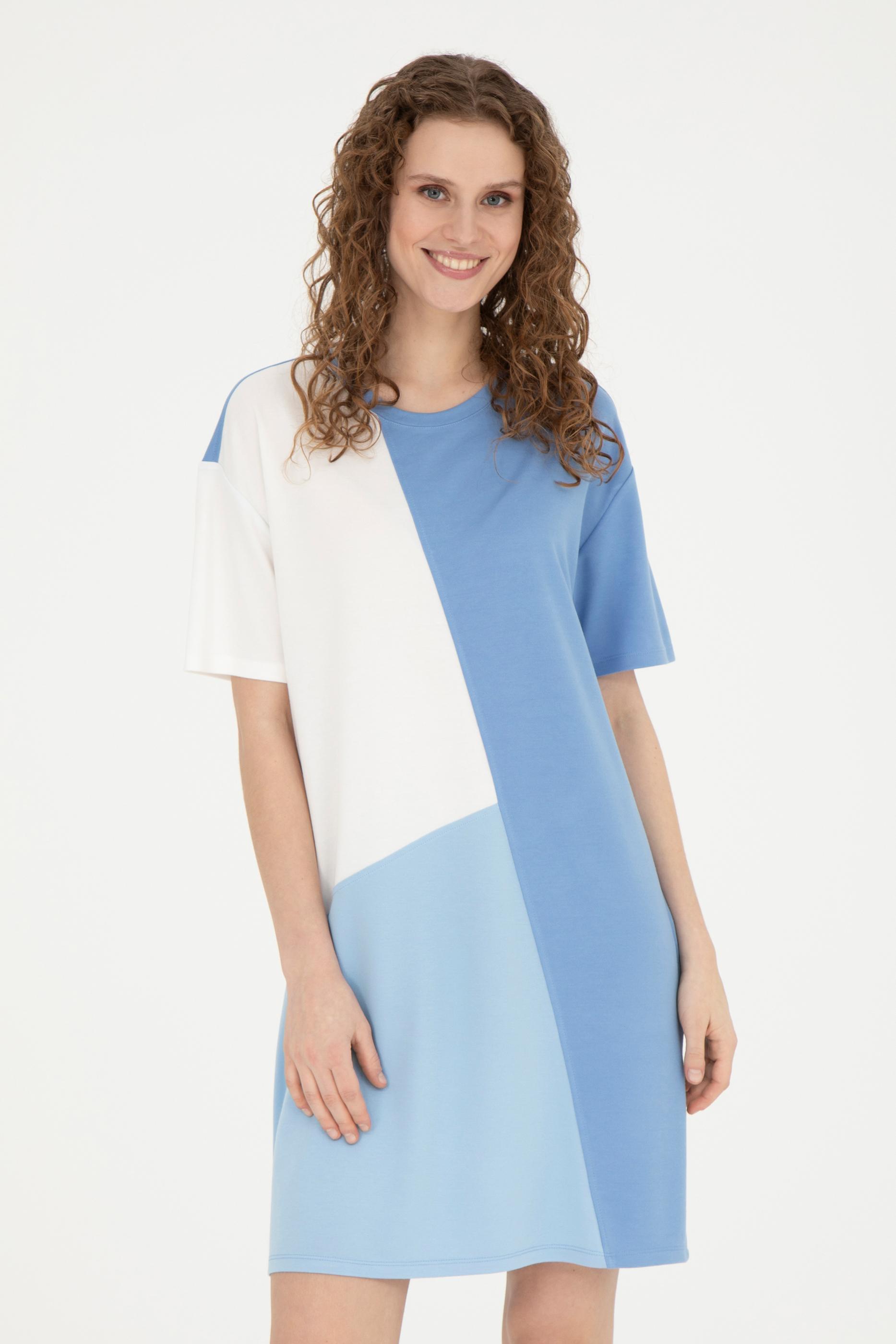 Kadın Koyu Mavi Bisiklet Yaka Örme Elbise
